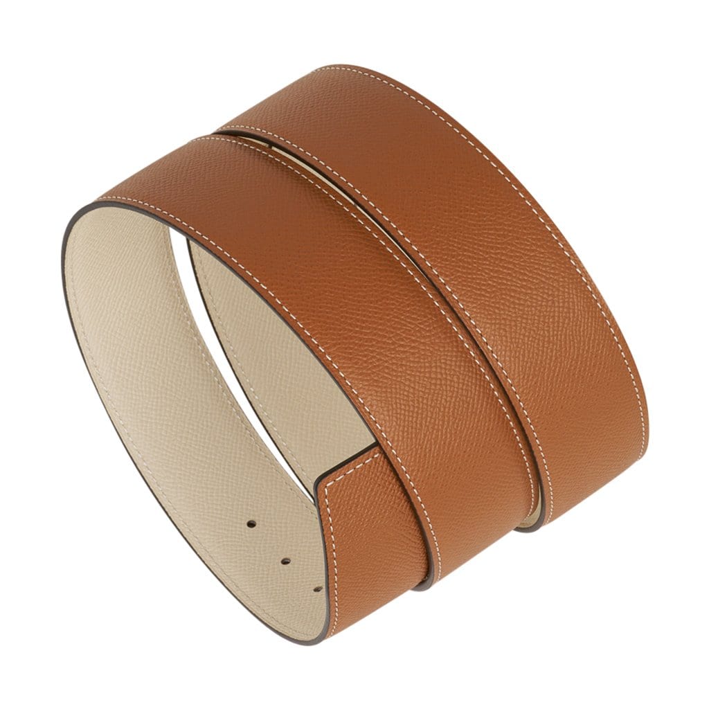 Guaranteed authentic Hermes Constance 42 mm belt features reversible Gold to Craie Epsom Leather.