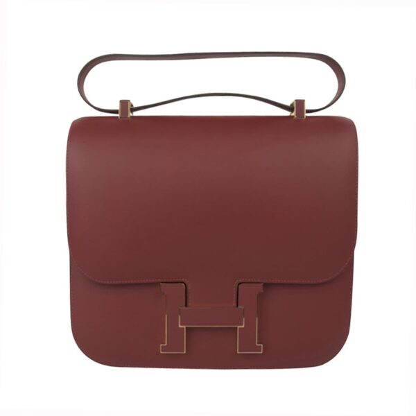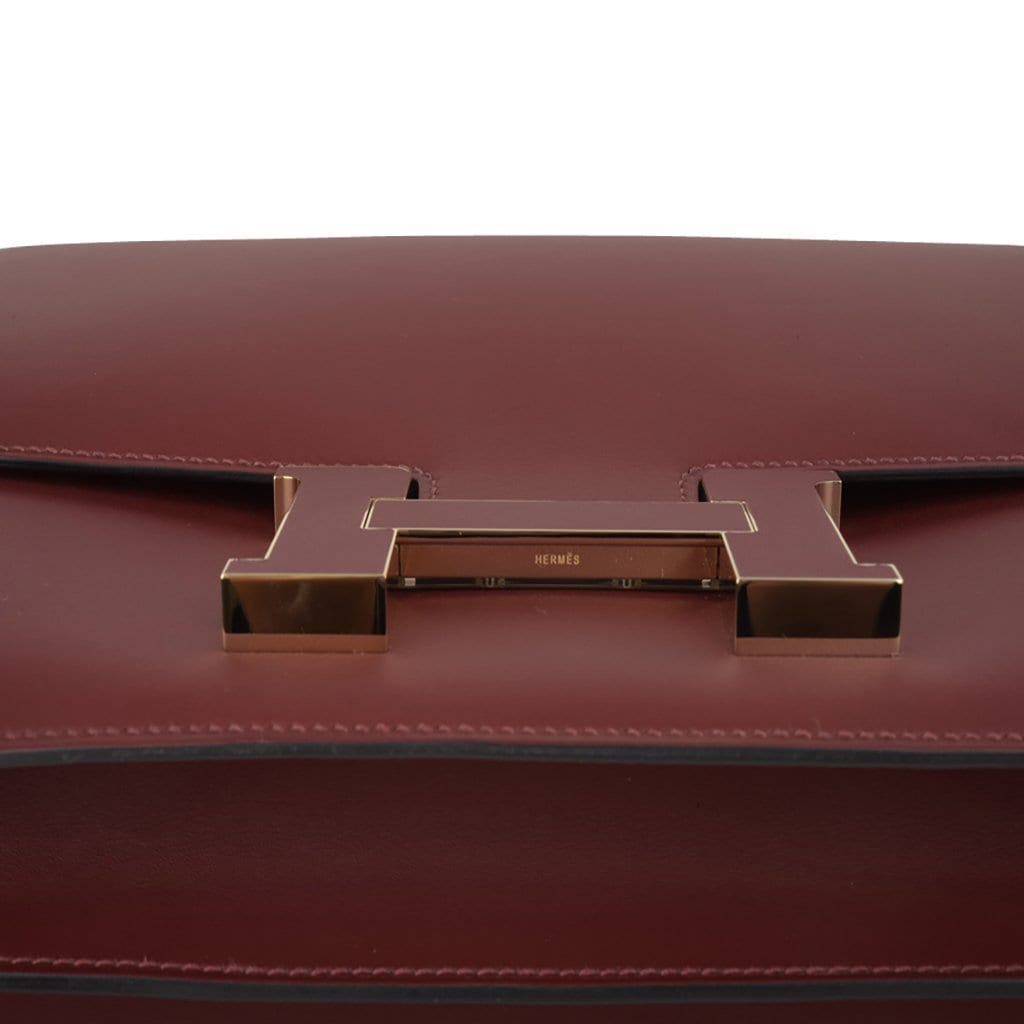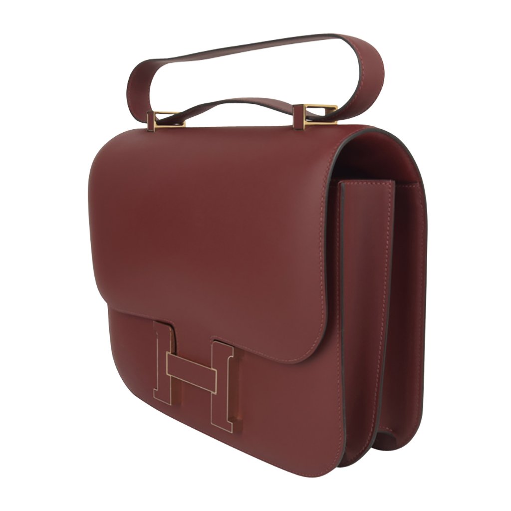 Guaranteed authentic Limited Edition Hermes Constance Cartable 29 features deep rich Rouge H Sombrero leather.