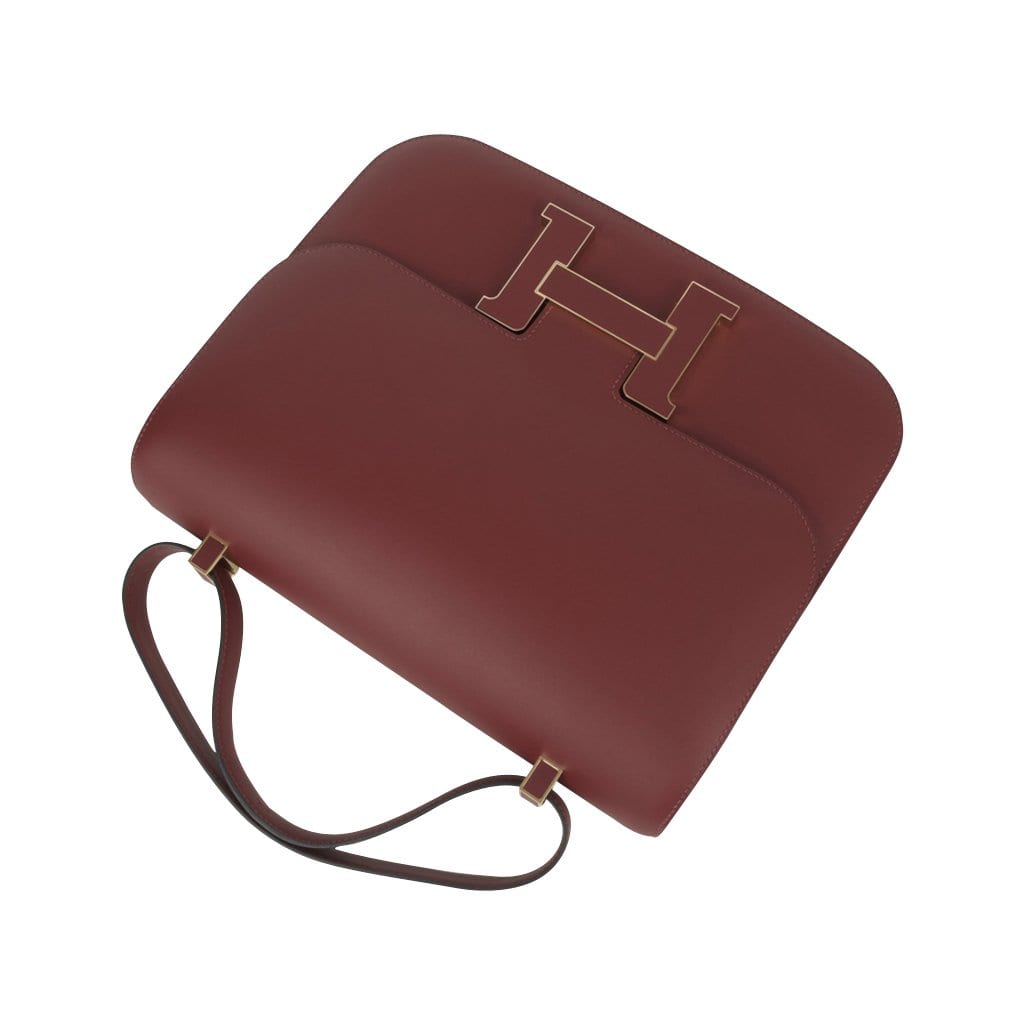 Guaranteed authentic Limited Edition Hermes Constance Cartable 29 features deep rich Rouge H Sombrero leather.