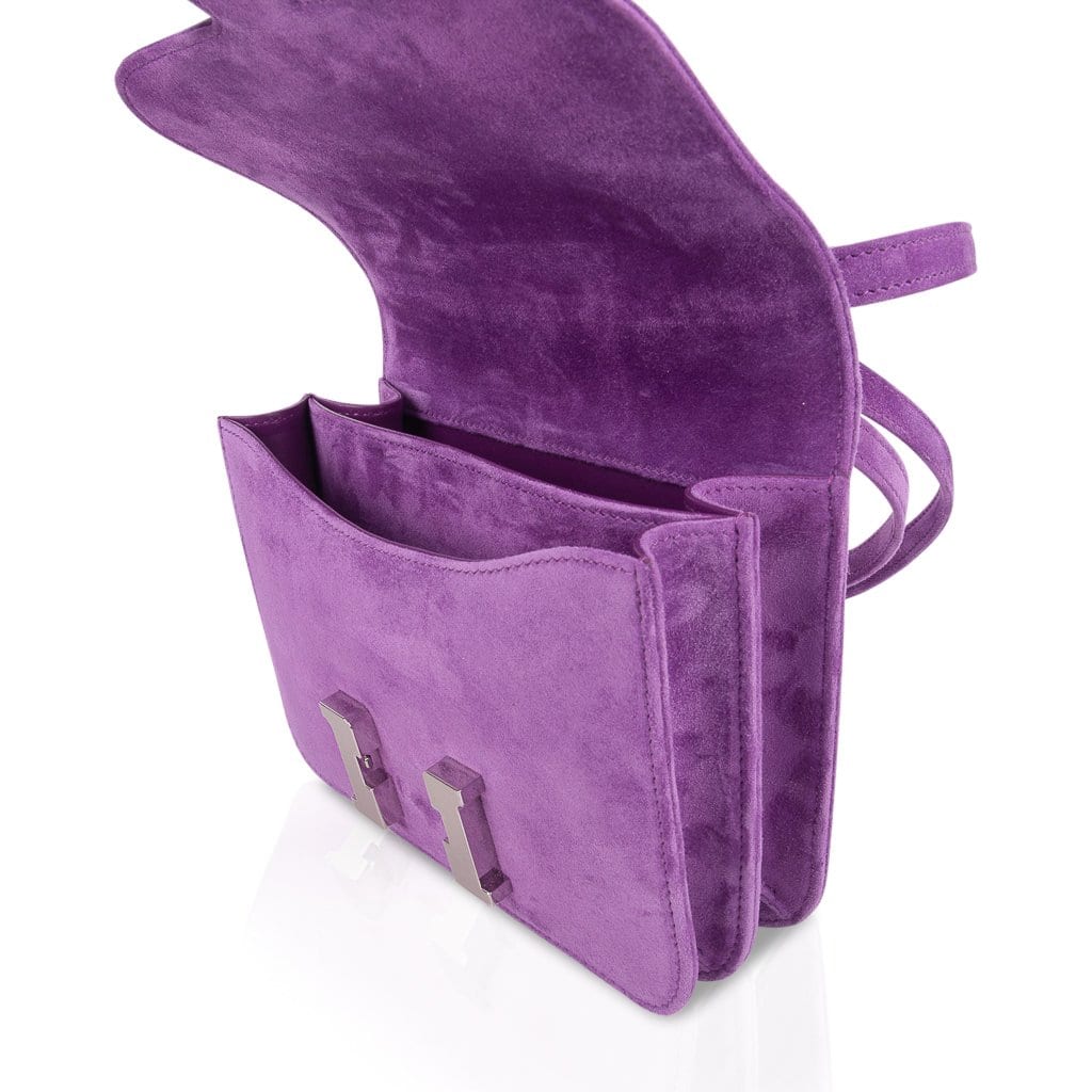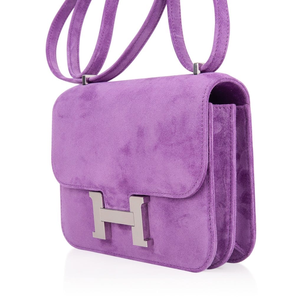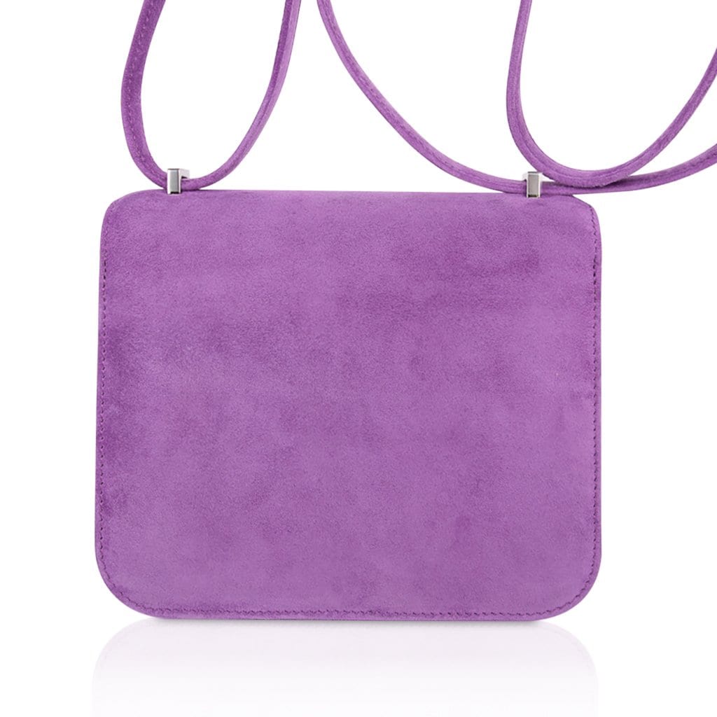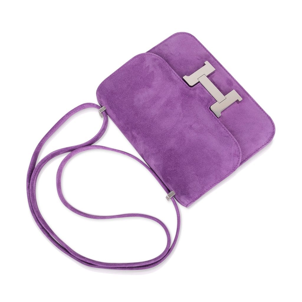 Guaranteed authentic exquisite limited edition Hermes coveted Doblis (suede) bag features the Constance Mini in Violet Clair.
