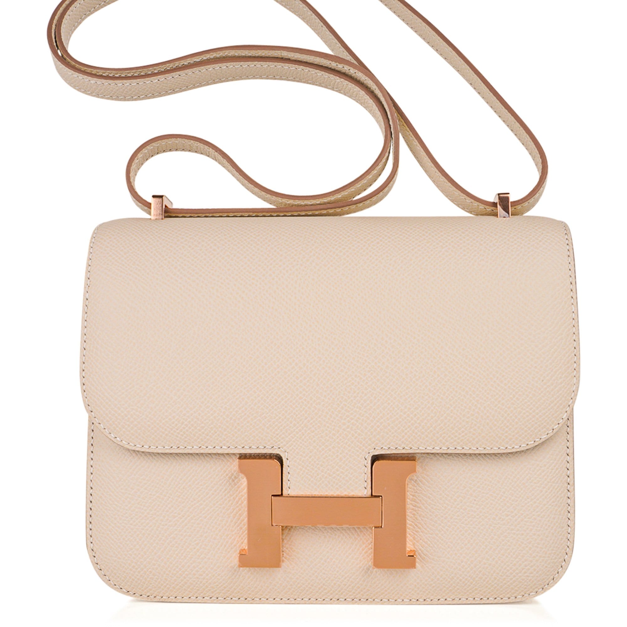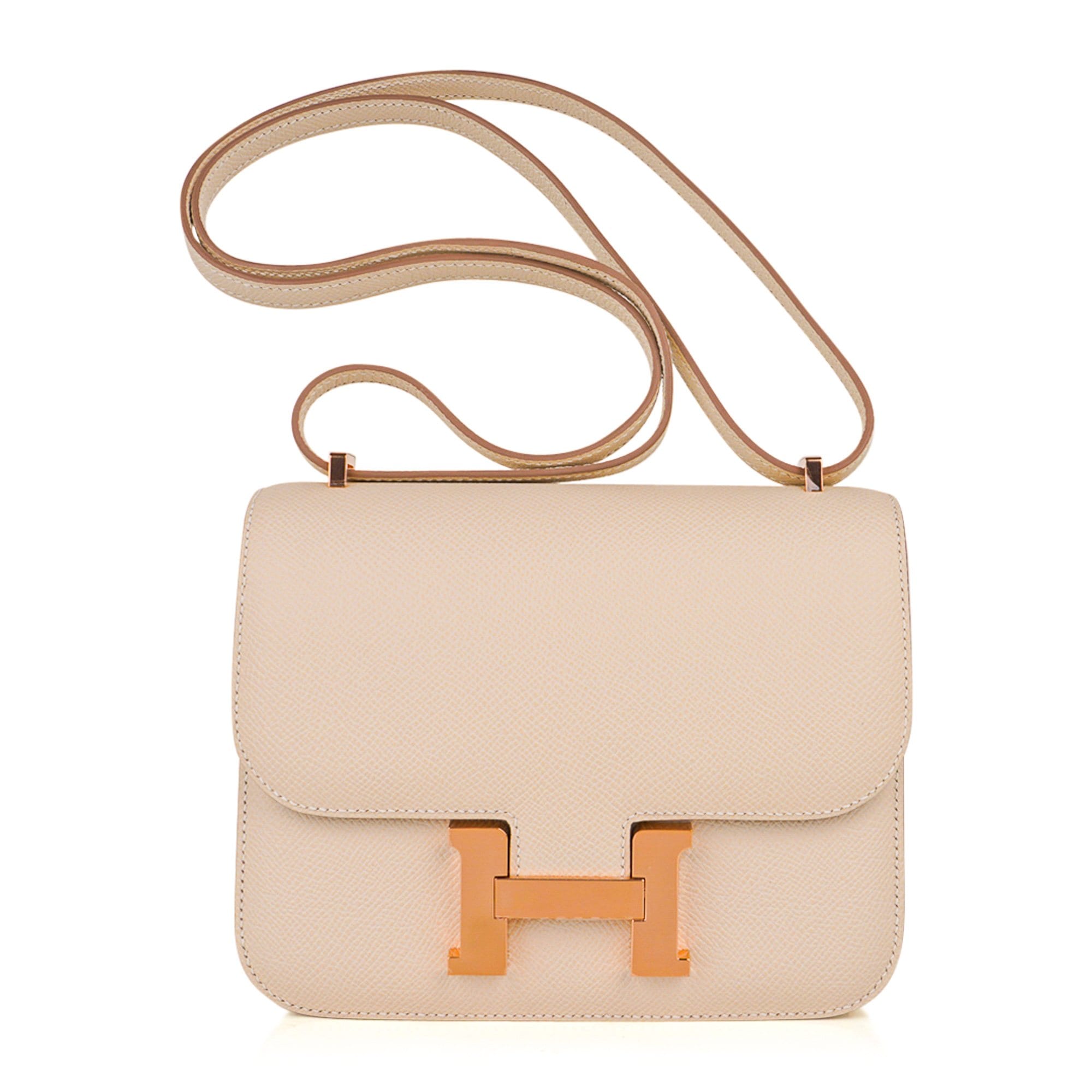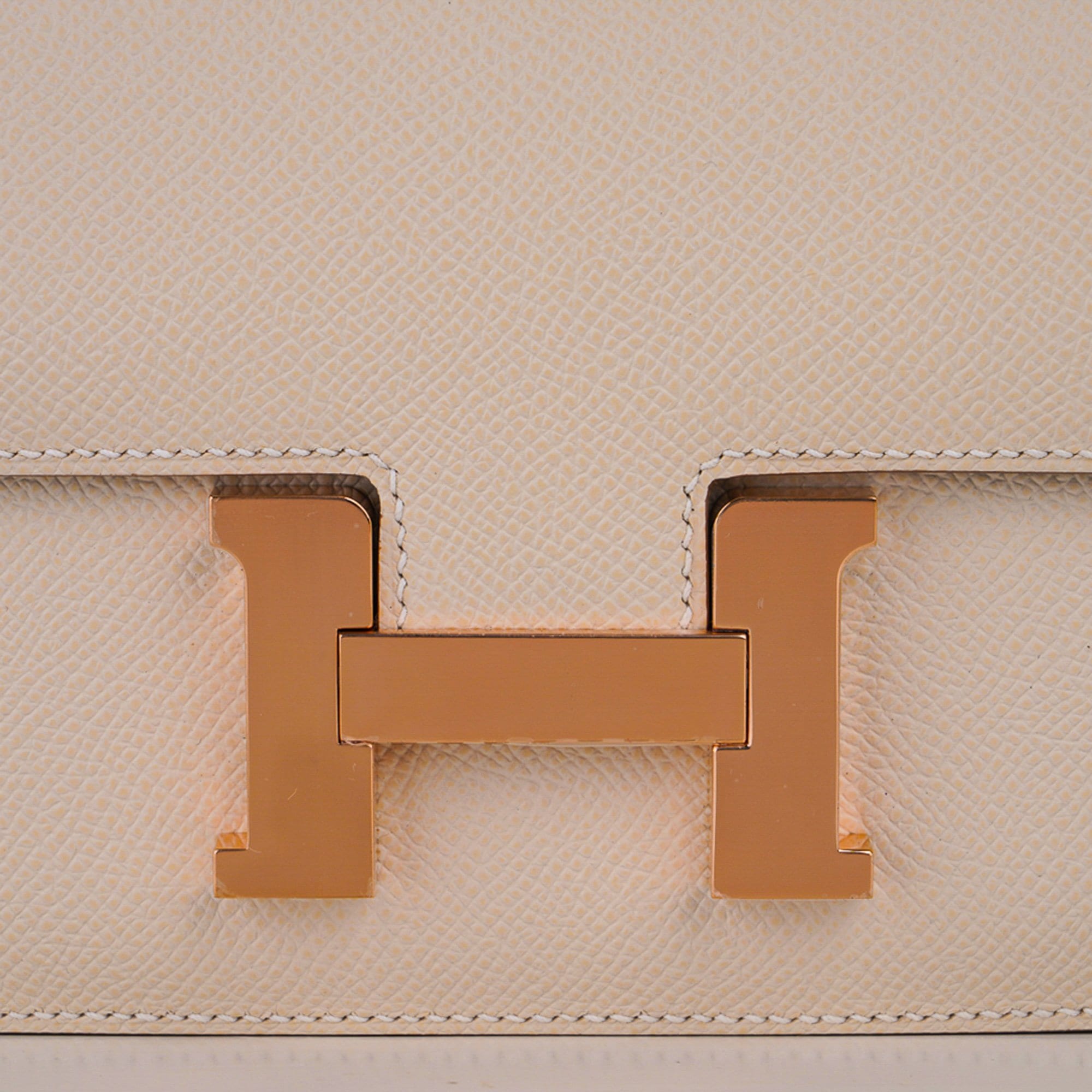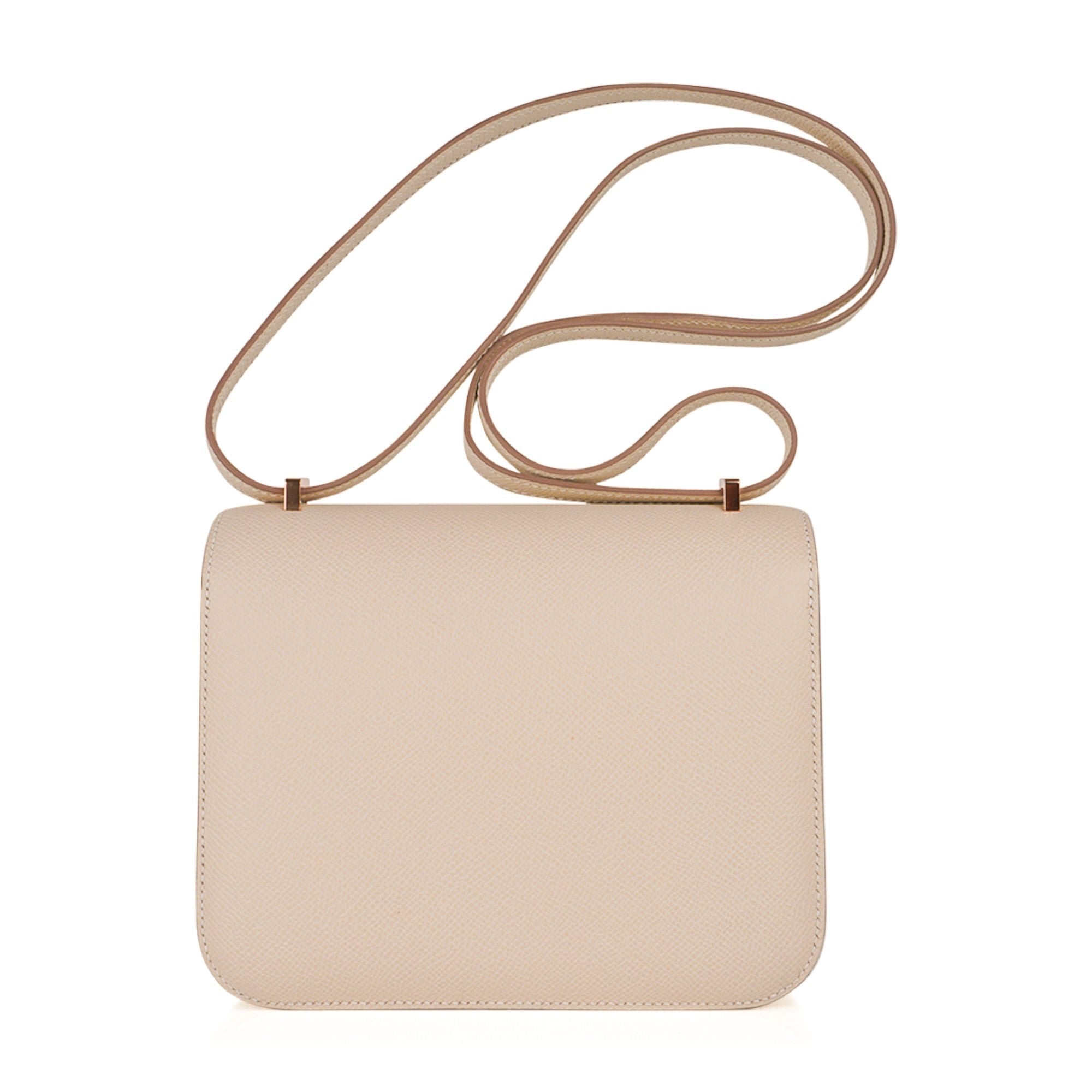 Guaranteed authentic Hermes Constance HSS 18 bag featured in neutral perfection Craie.