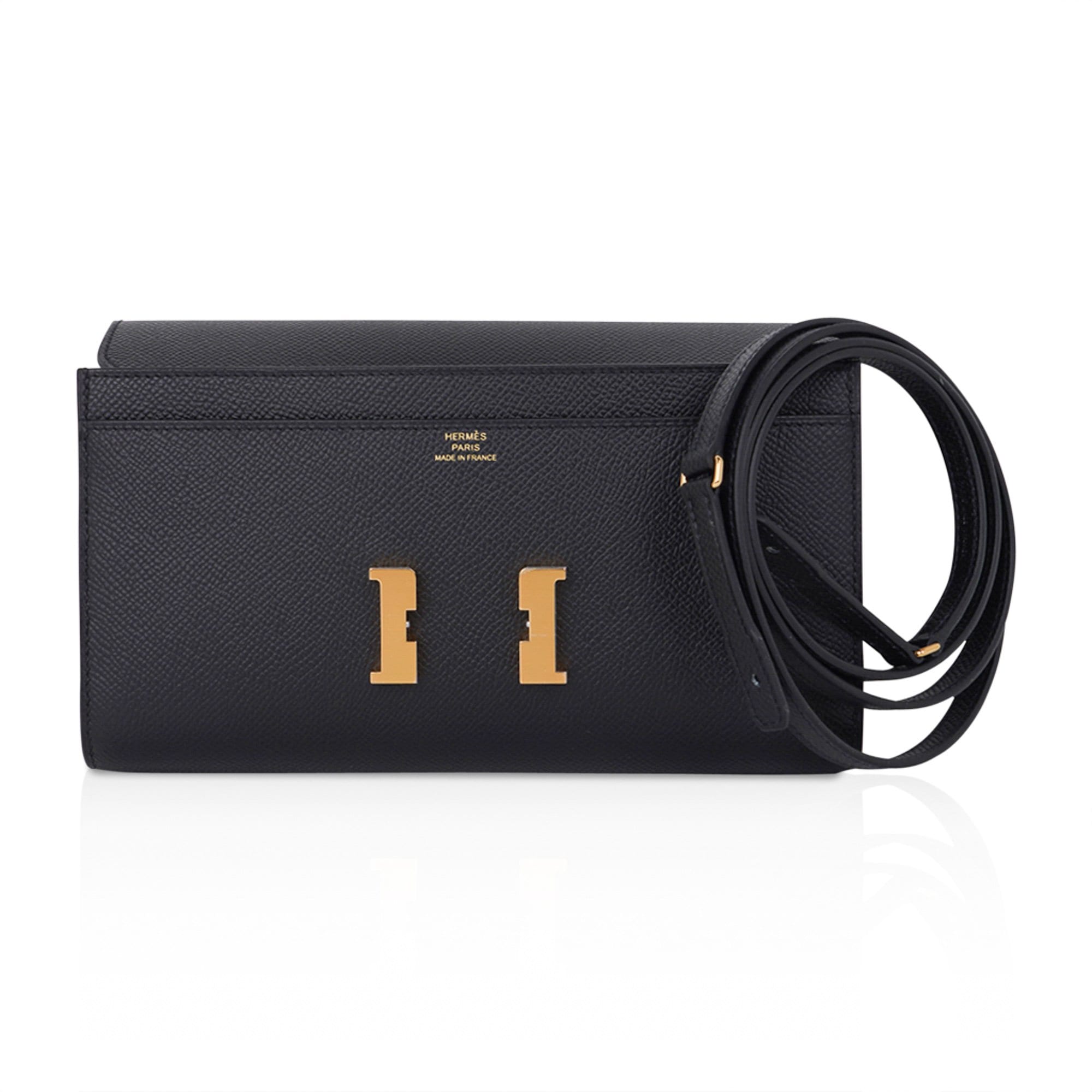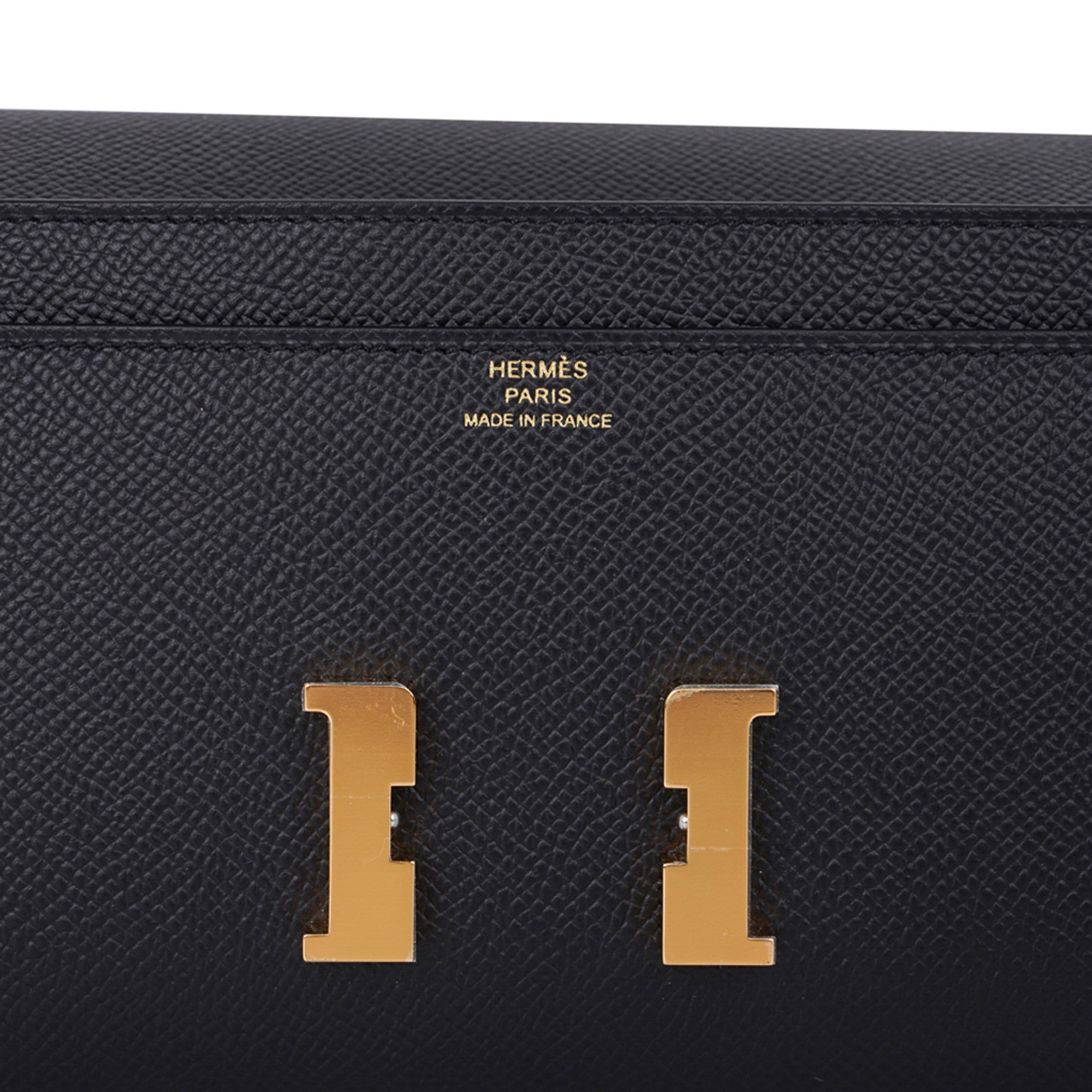Guaranteed authentic coveted Hermes Constance Long To Go wallet featured in classic Black.