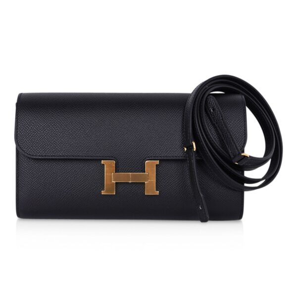 Guaranteed authentic coveted Hermes Constance Long To Go wallet featured in classic Black.