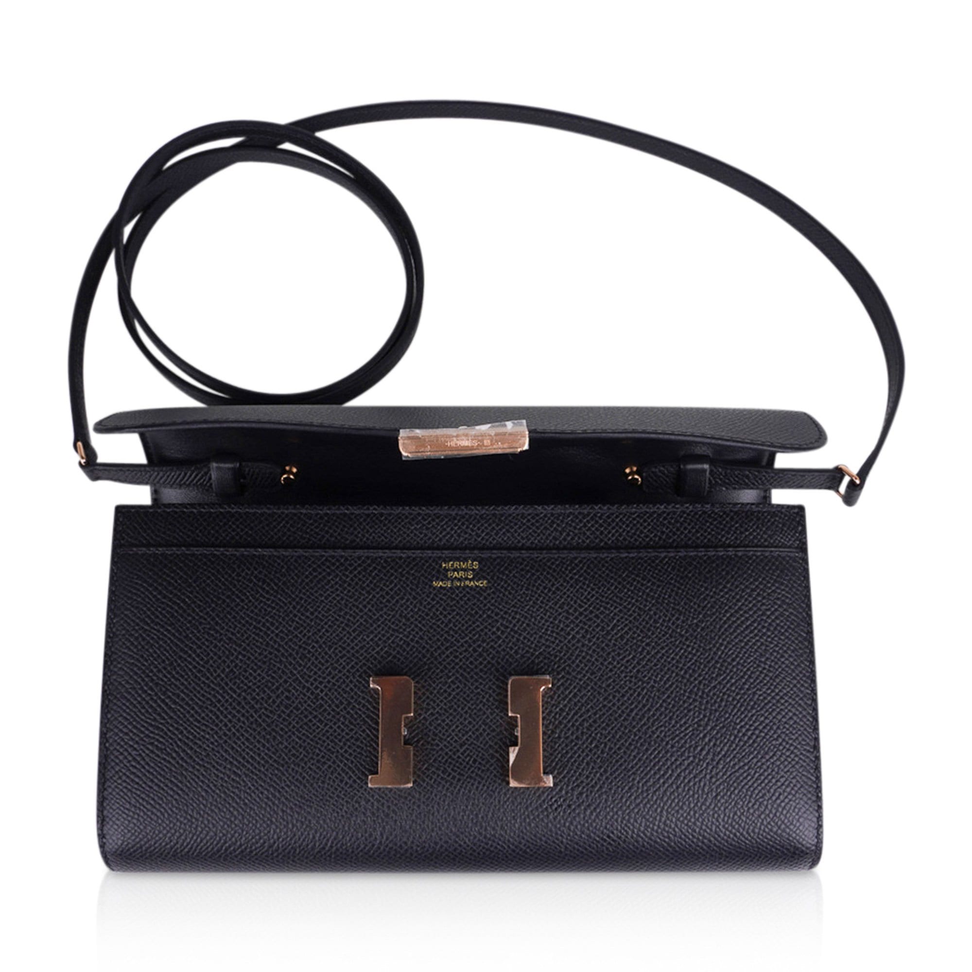 HERMES PARIS MADE IN FRANCE is stamped on front under flap.