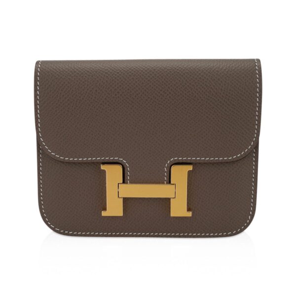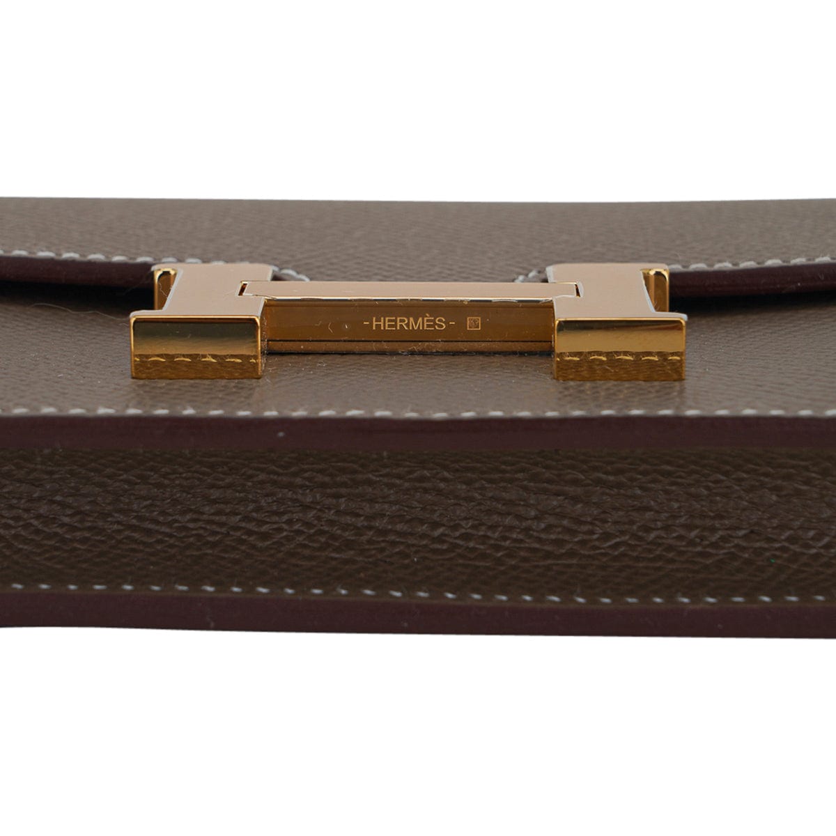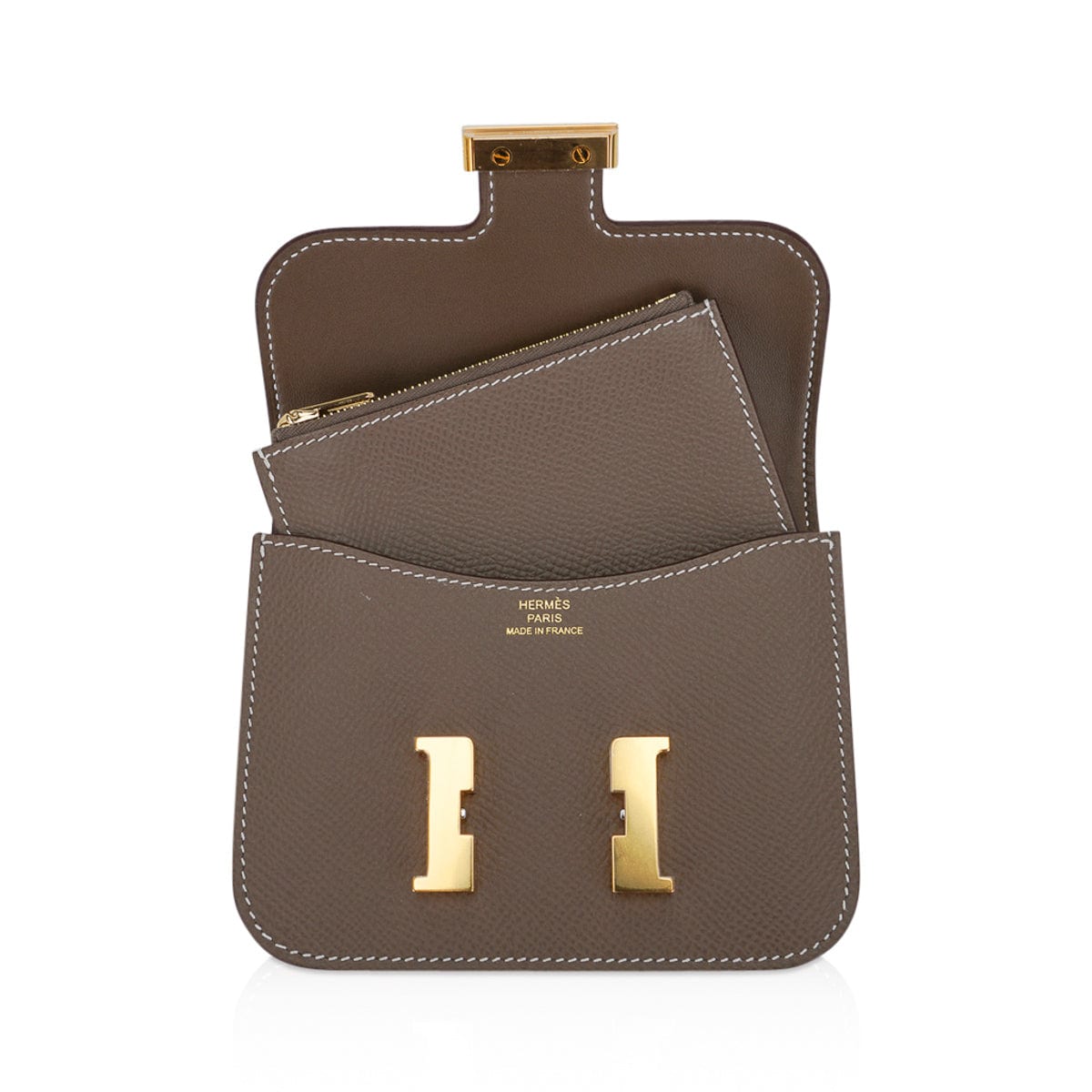 Hermes Constance Slim Wallet Belt Bag Etoupe Epsom Leather with Gold Hardware
