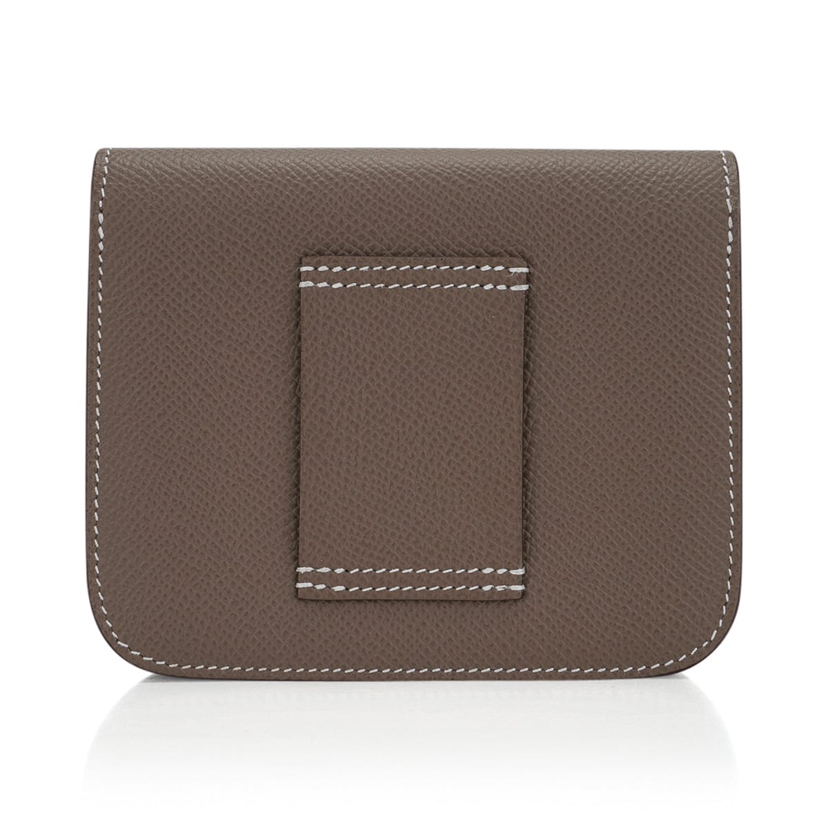 Because of its slim silhouette, the Hermès Constance Slim Wallet offers refined style without bulk. The signature Constance “H” clasp adds an instantly recognizable touch of Hermès heritage. The Etoupe color complements both casual and formal looks, making it a piece you can wear through every season.