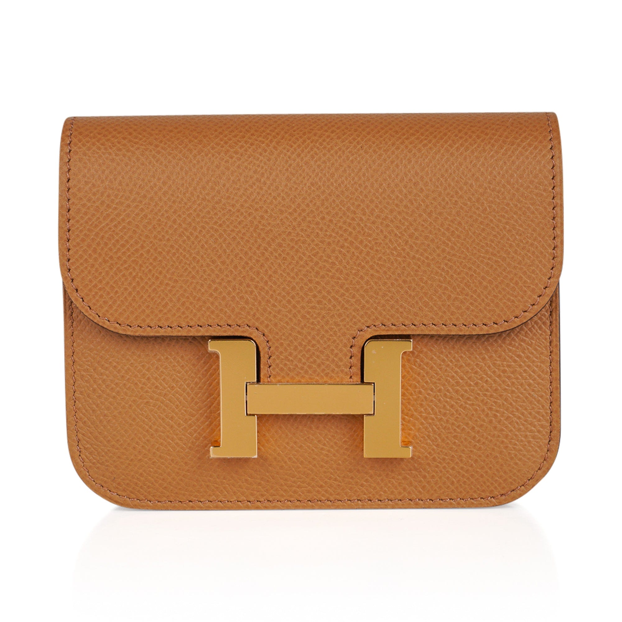 Hermes Constance Slim Wallet Waist Belt Bag Biscuit Gold Hardware