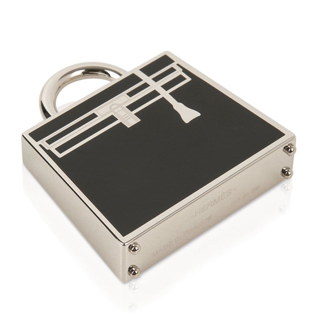 Hermes Curiosite Kelly Laque Charm Black / Palladium Pendant
