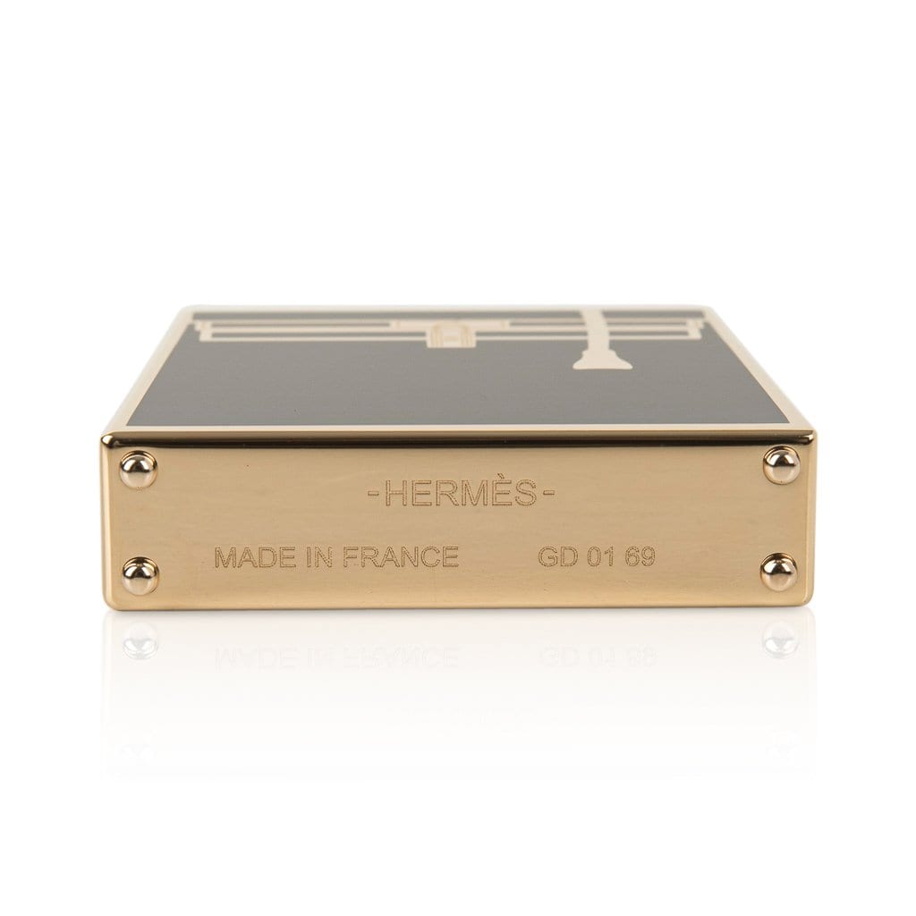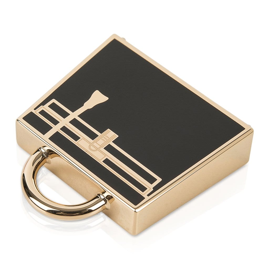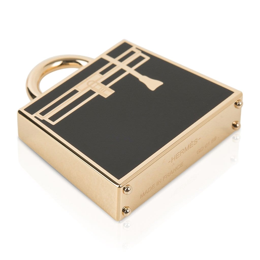 Guaranteed authentic Hermes Curiosite Kelly Laque charm featured in Black with Permabrass.