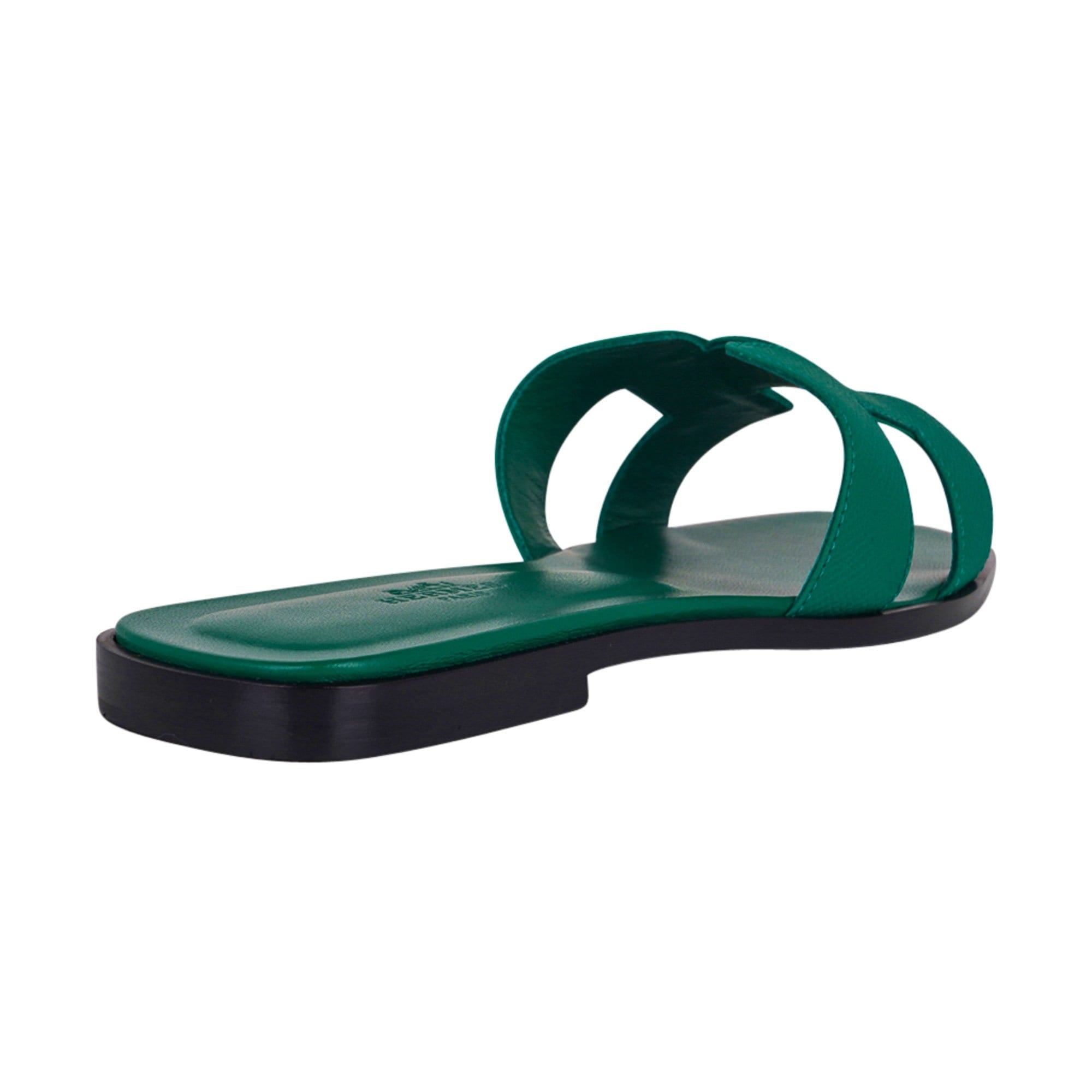 Guaranteed authentic Hermes Oran Emerald sandals.