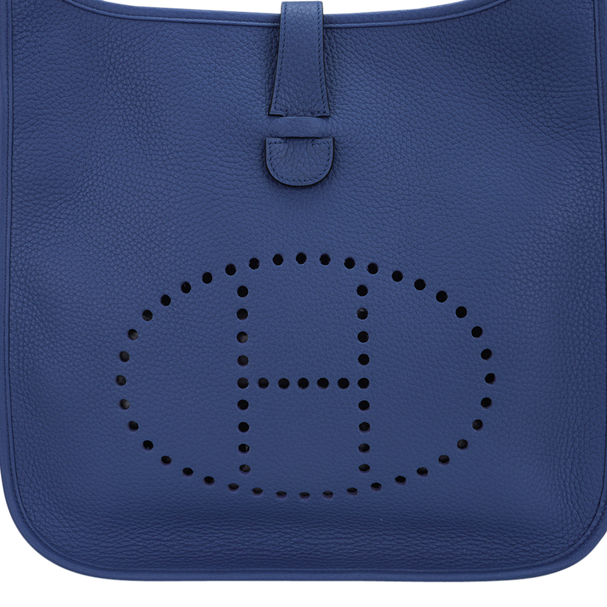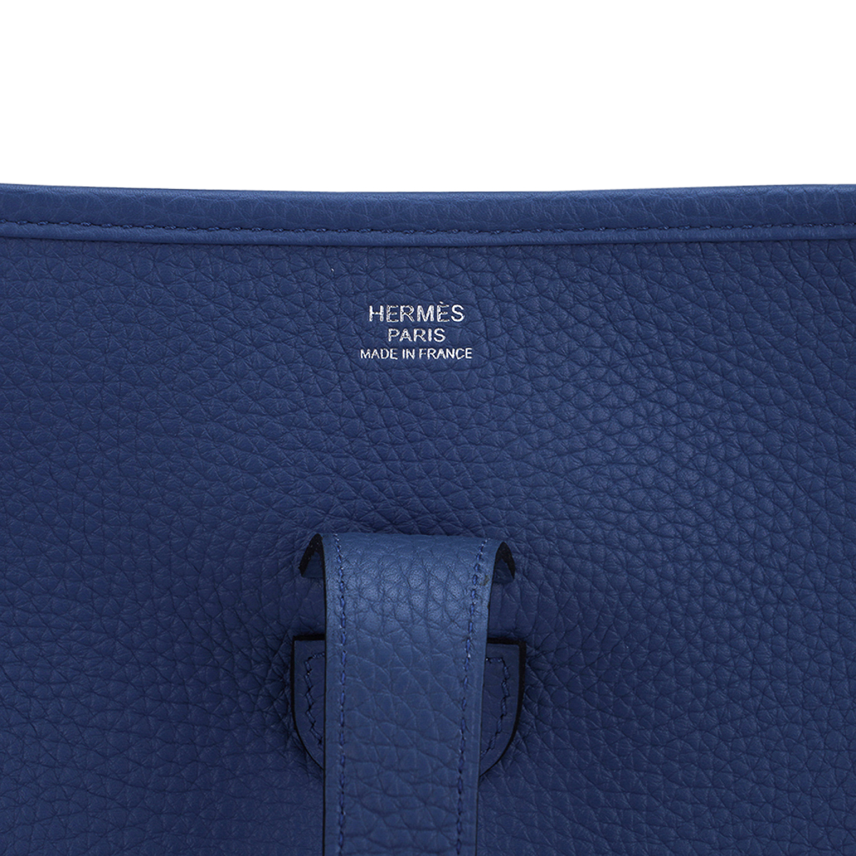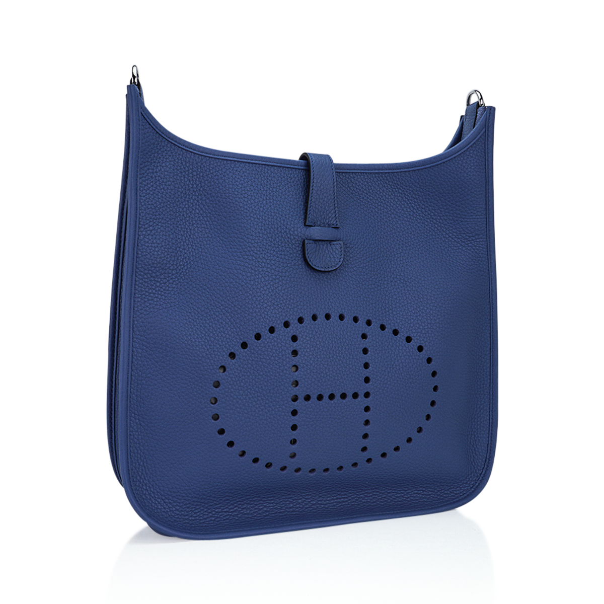 Guaranteed authentic Hermes Evelyne GM featured in Blue Agate.