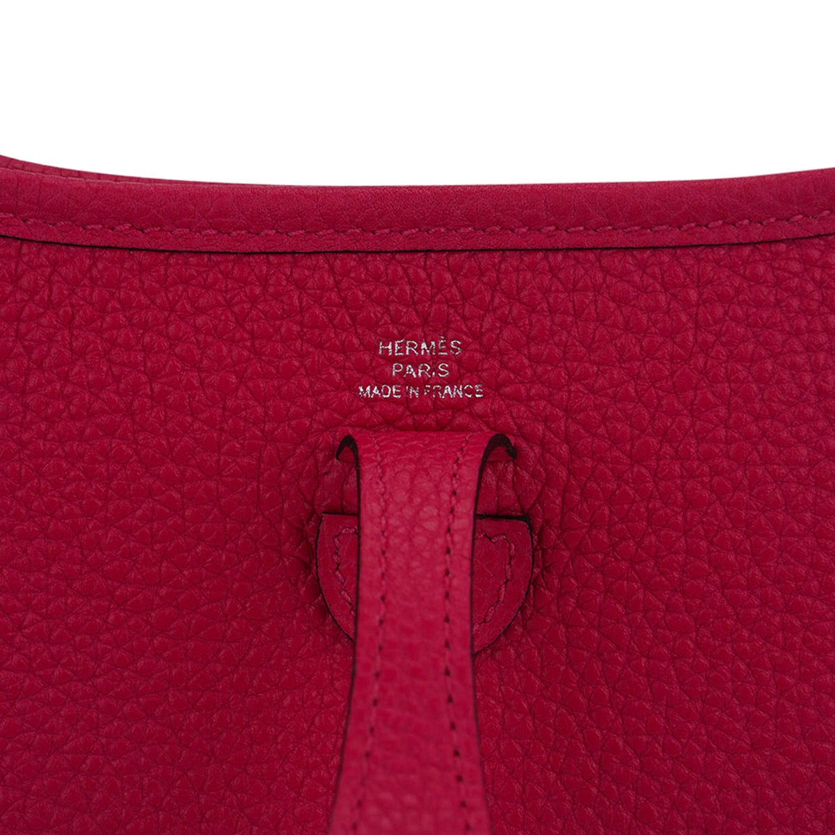 Guaranteed authentic Hermes Evelyne TPM featured in saturated Framboise.