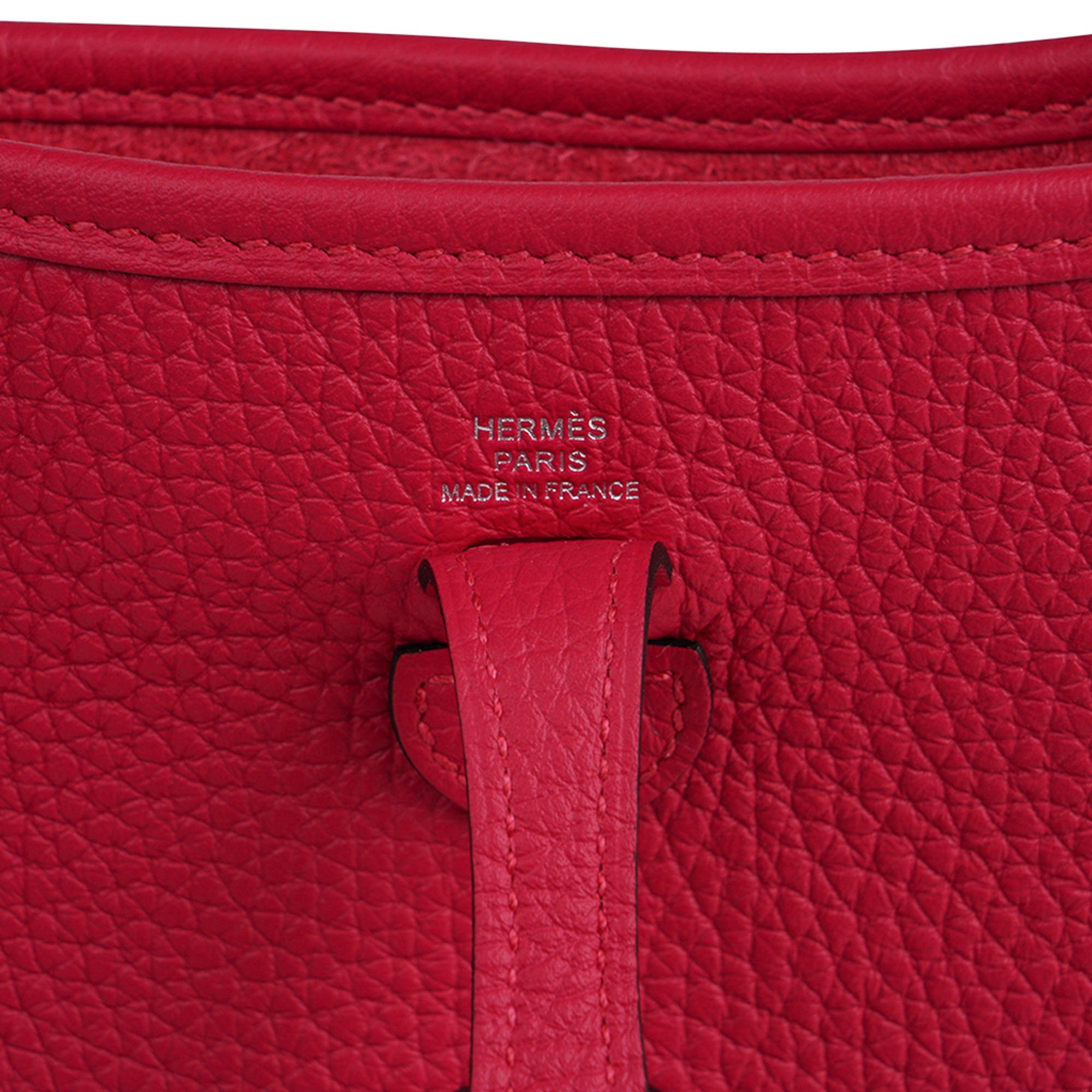 Guaranteed authentic Hermes Evelyne TPM featured in saturated Framboise.