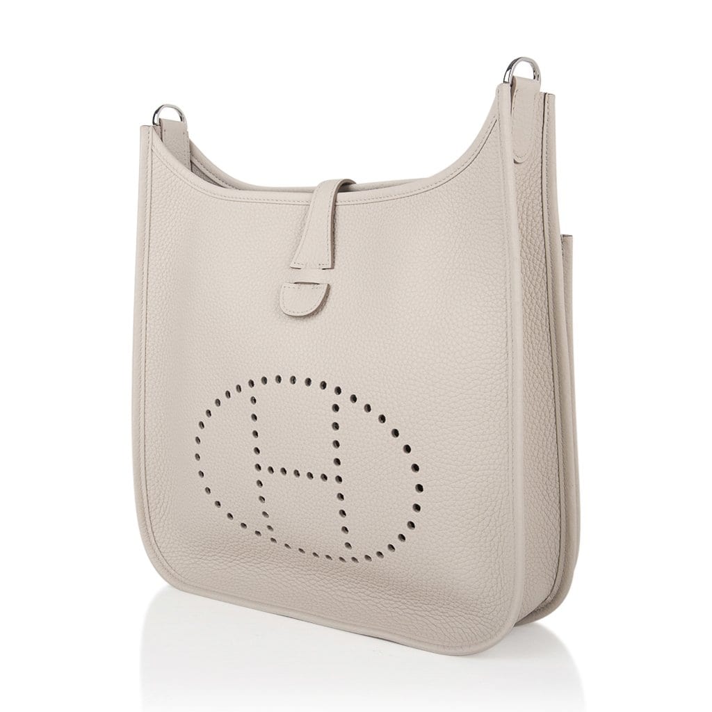 Guaranteed authentic Hermes Evelyne PM featured in coveted neutral Beton.