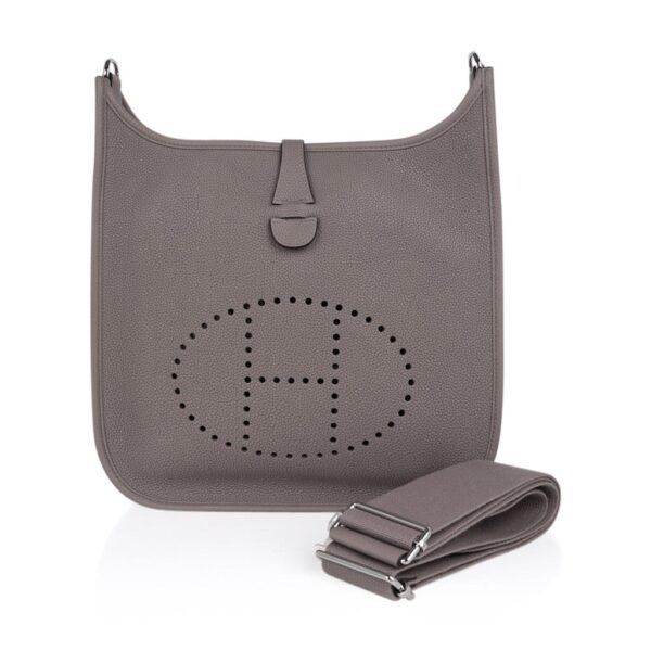 Guaranteed authentic Hermes Evelyne PM featured in Gris Asphalte.