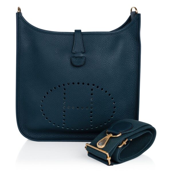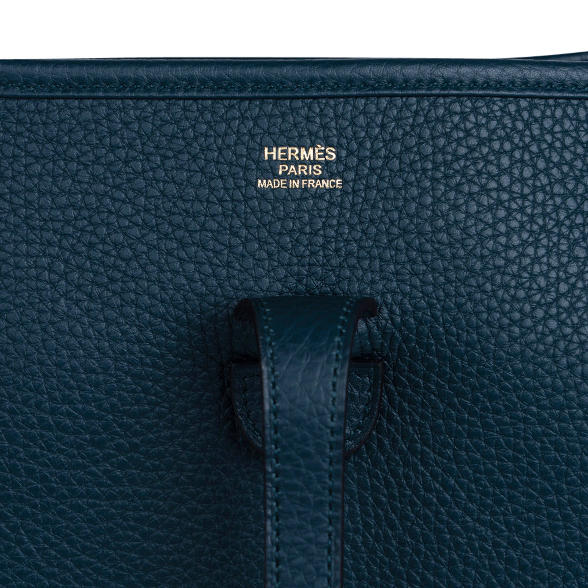 Guaranteed authentic Hermes Evelyne PM featured in lush Vert Cypress.