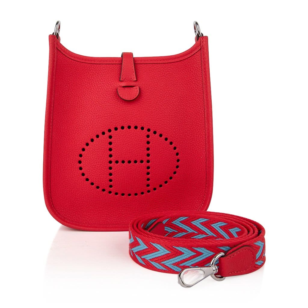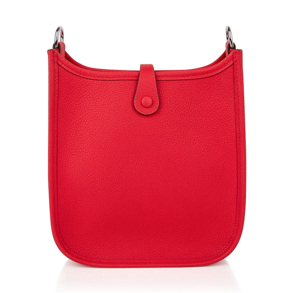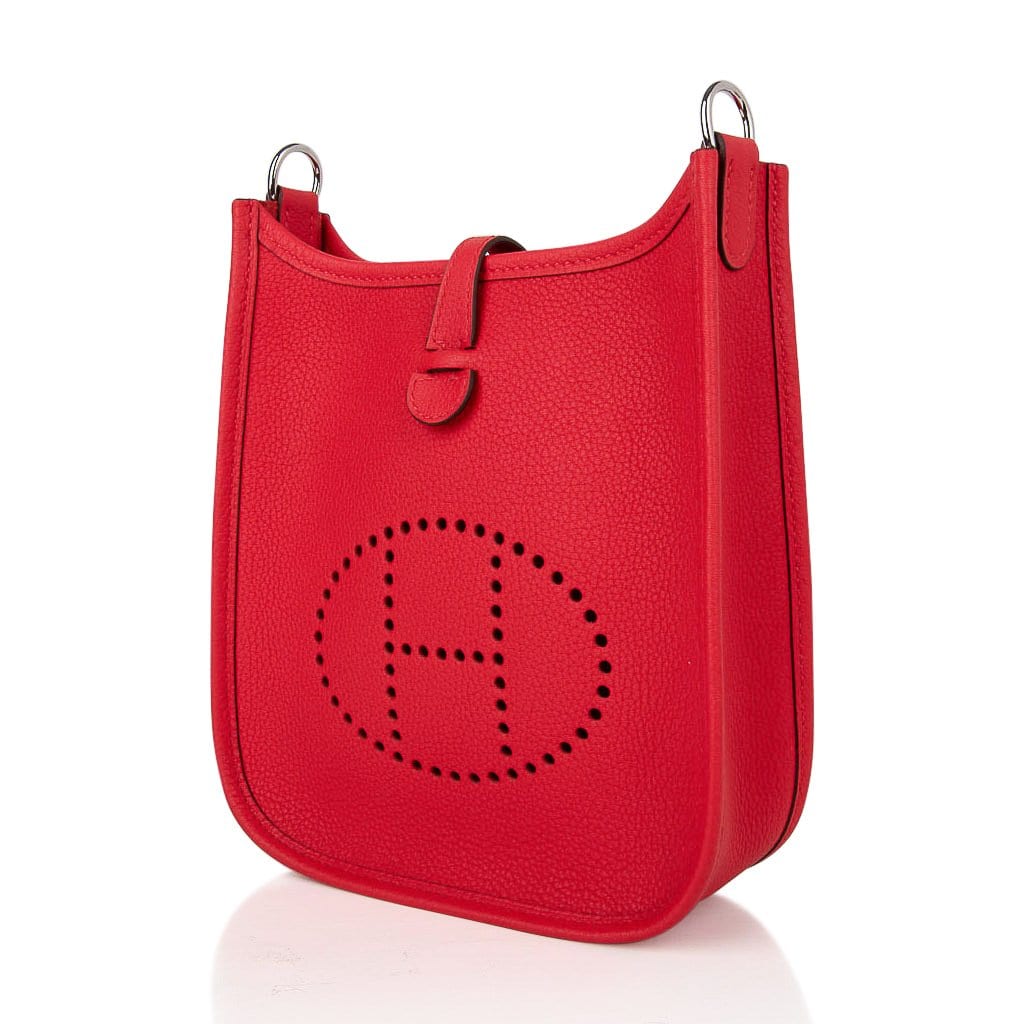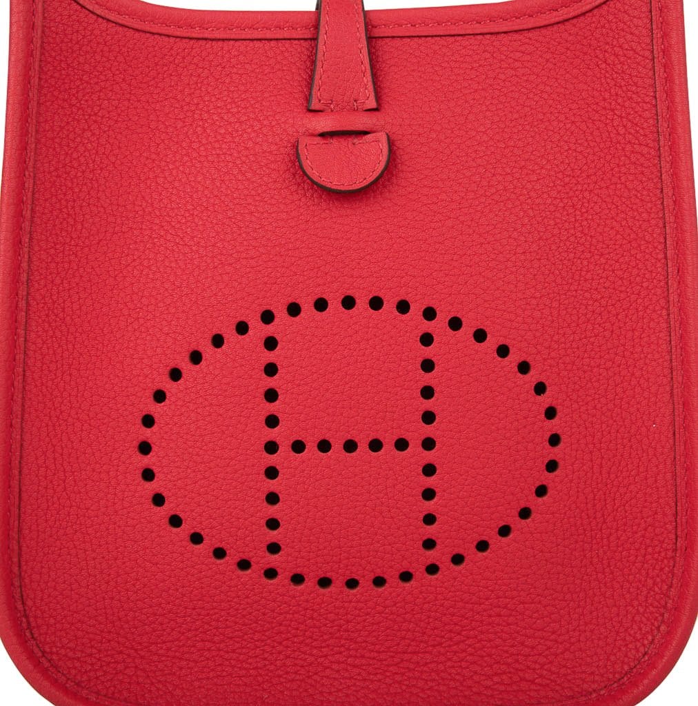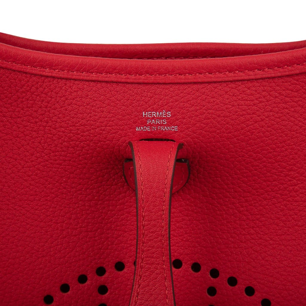 Guaranteed authentic Hermes Amazone Evelyne TPM bag featured in vibrant Rouge De Coeur.