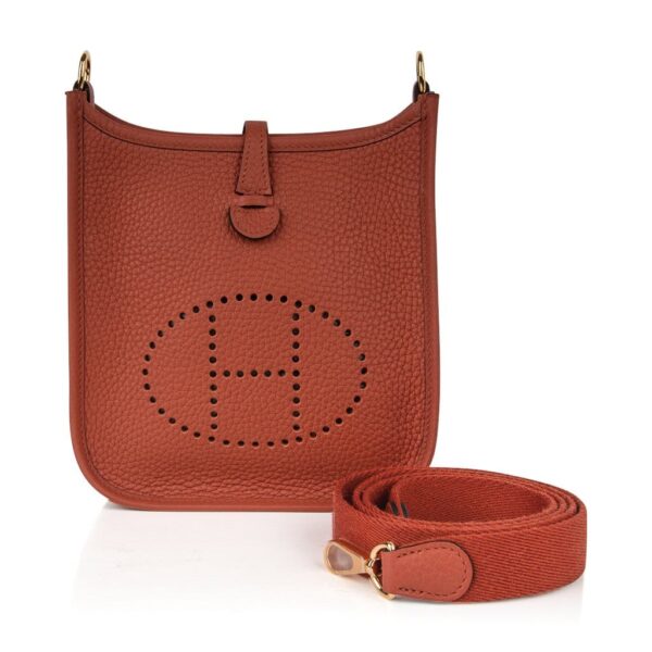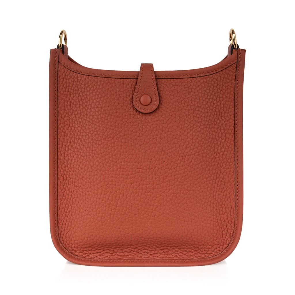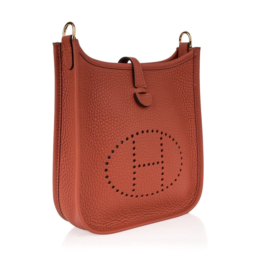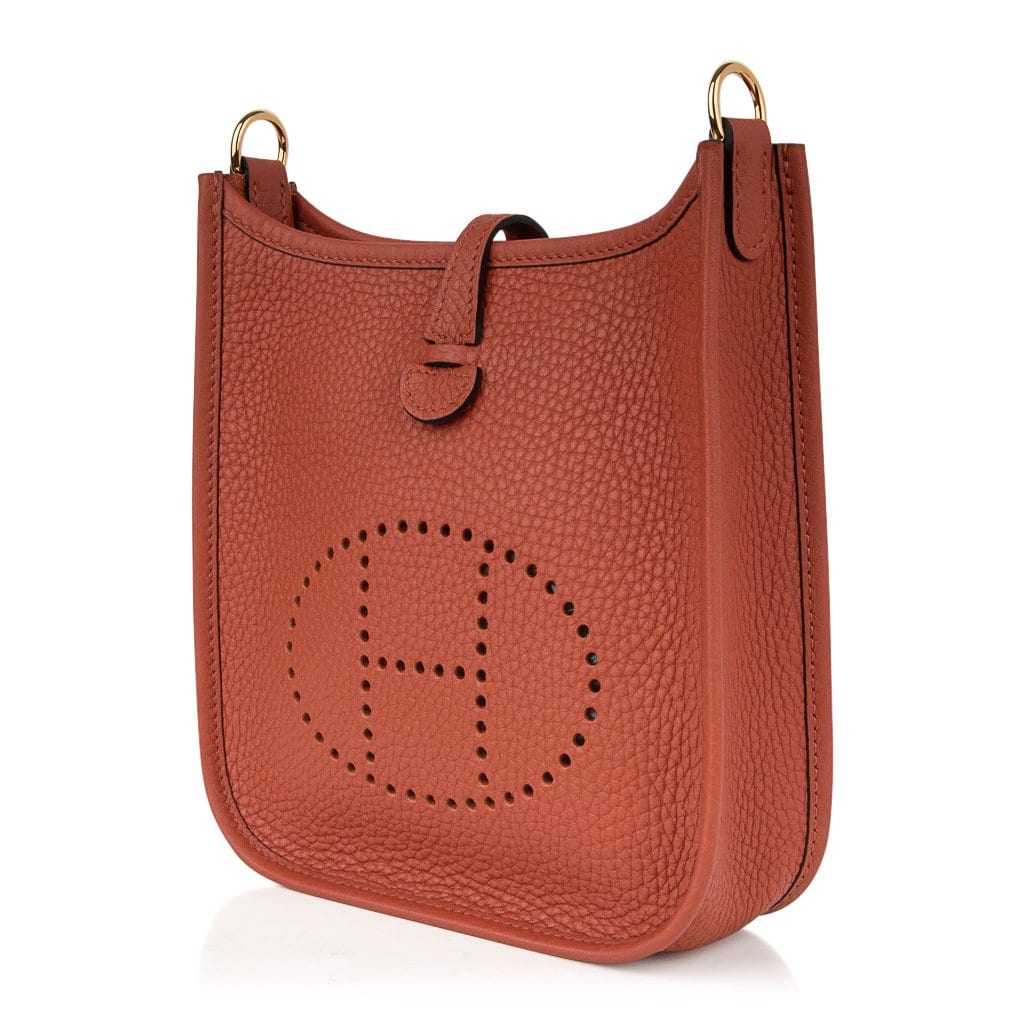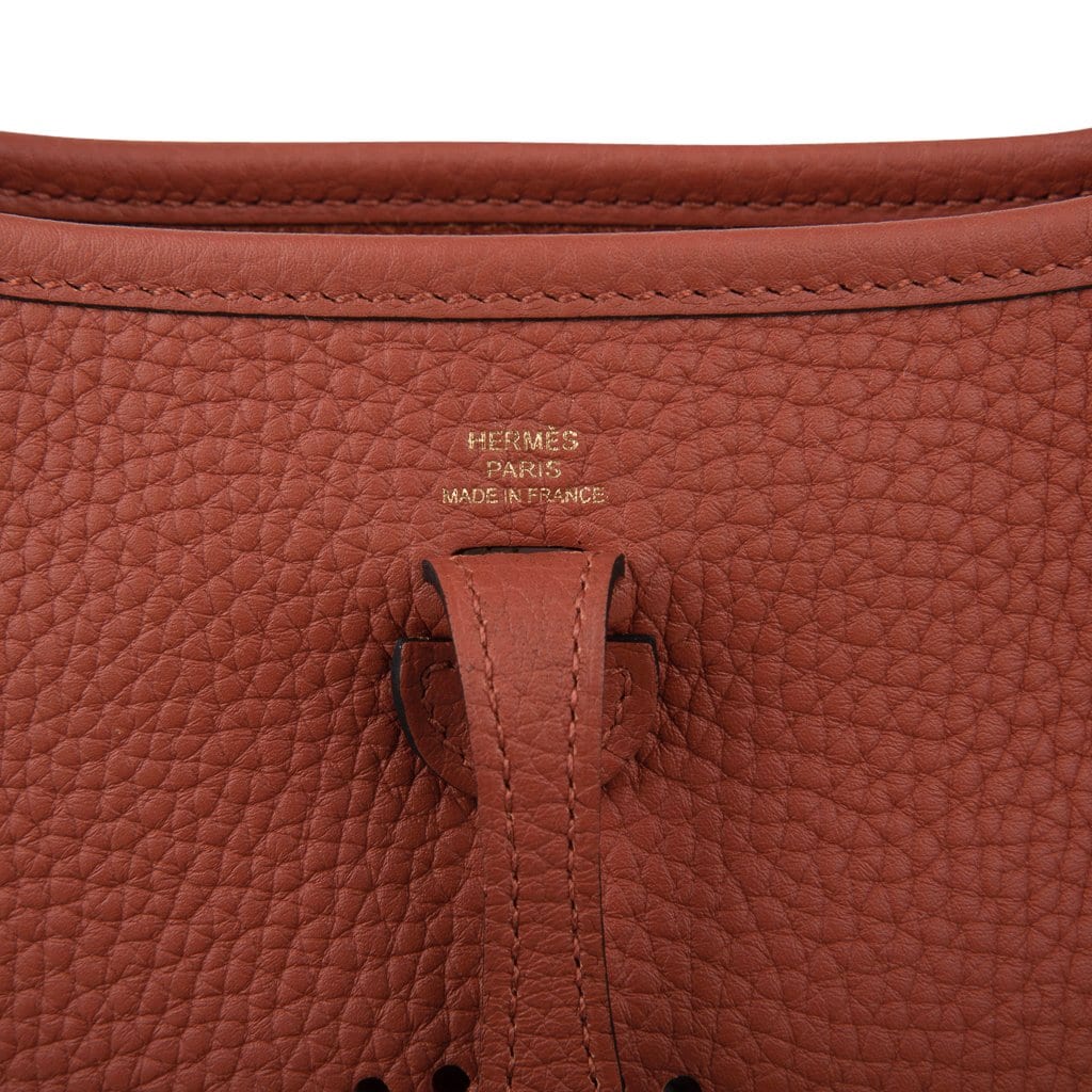Guaranteed authentic Hermes Evelyne TPM bag featured in Cuivre.