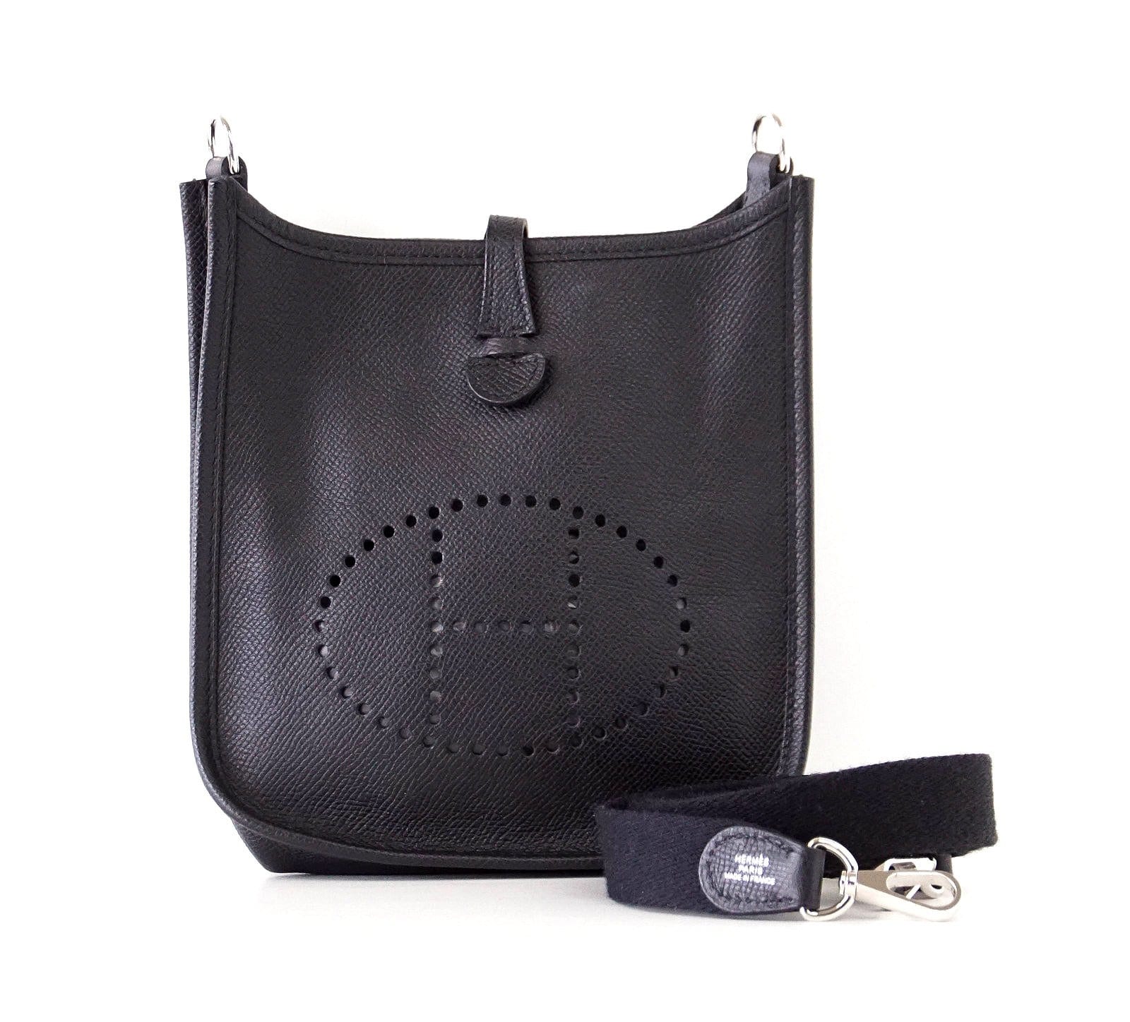 Guaranteed authentic coveted Hermes Evelyne TPM Mini in black Epsom Supple.