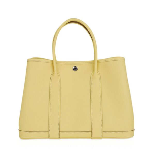 Guaranteed authentic Hermes Garden Party 30 bag featured in coveted Jaune Poussin.