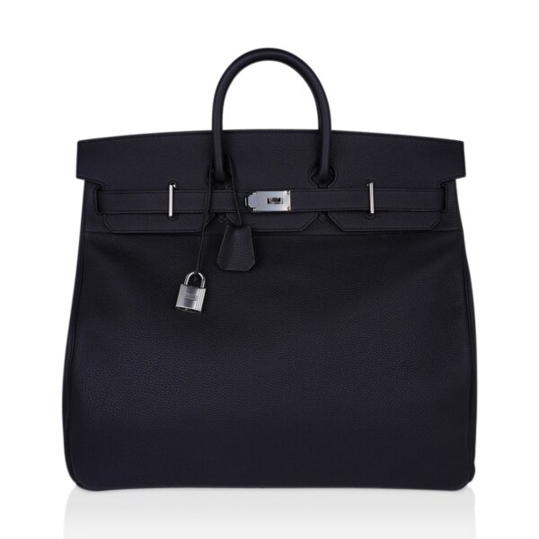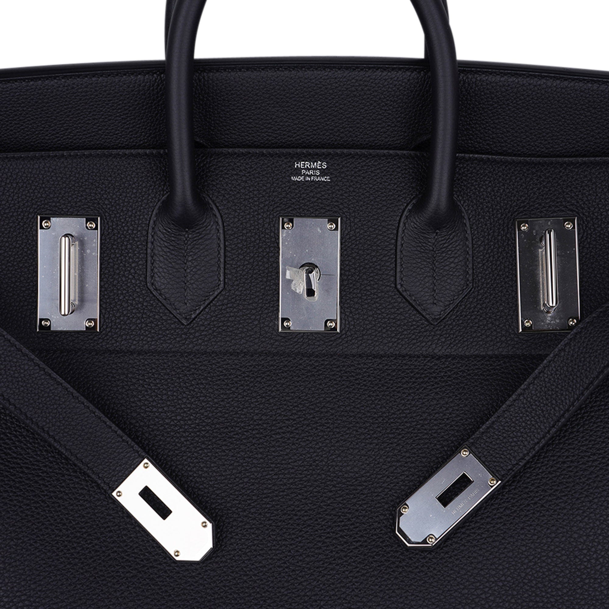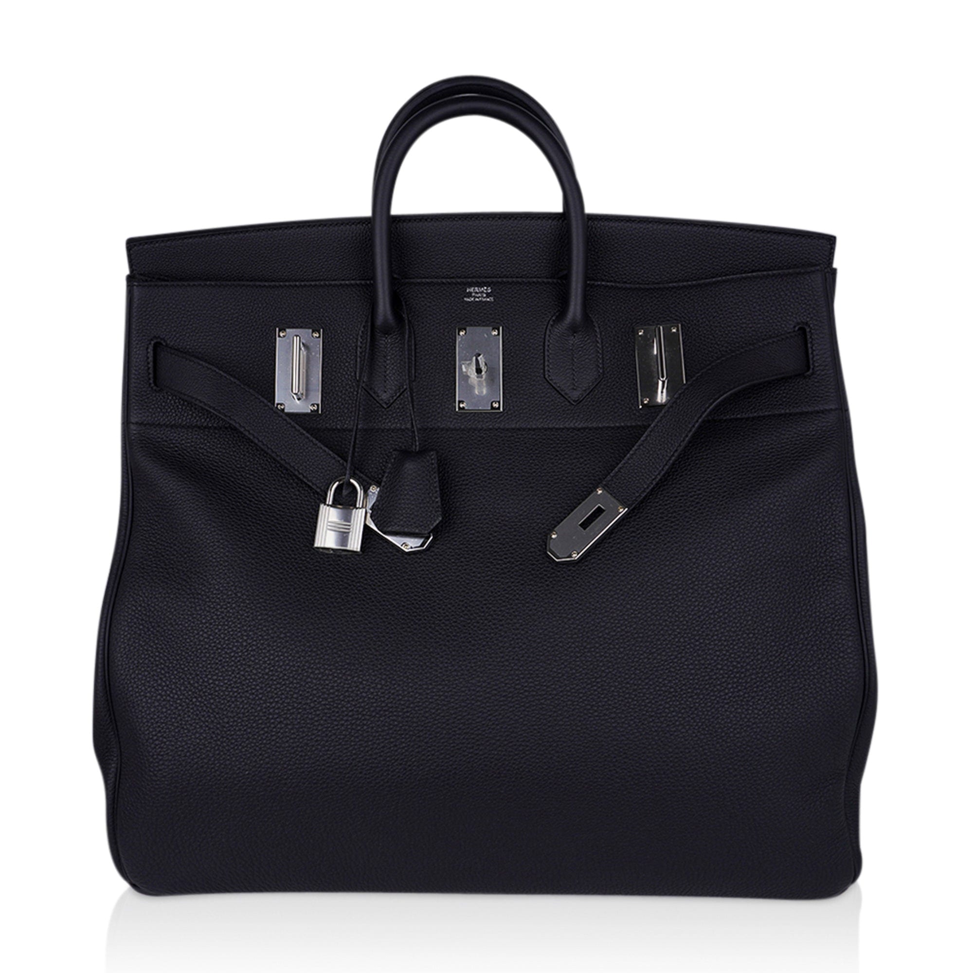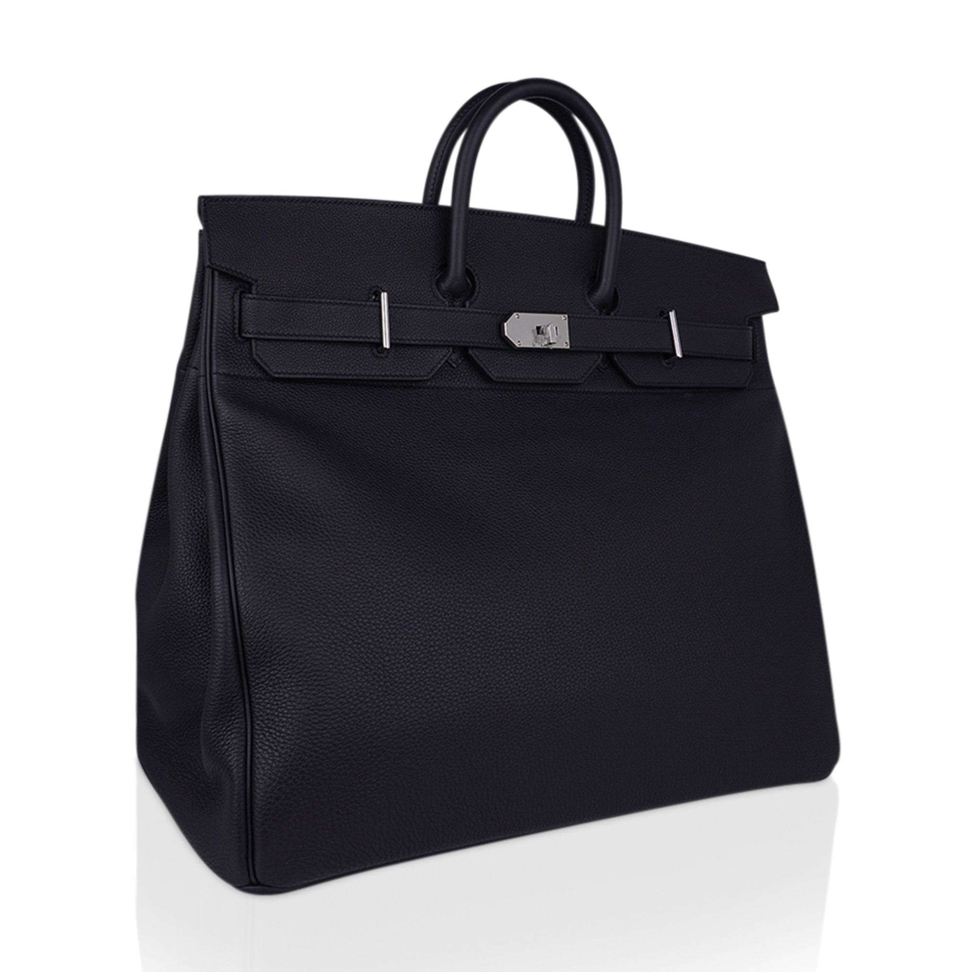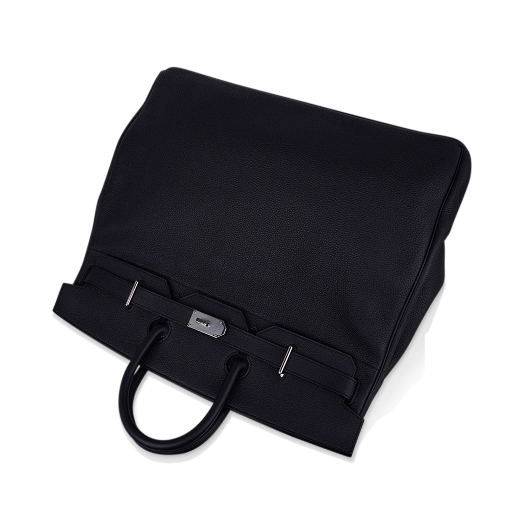 Guaranteed authentic Hermes 50 HAC (Haut a Courroies) Birkin bag featured in Black.
