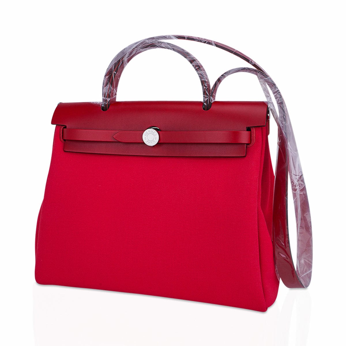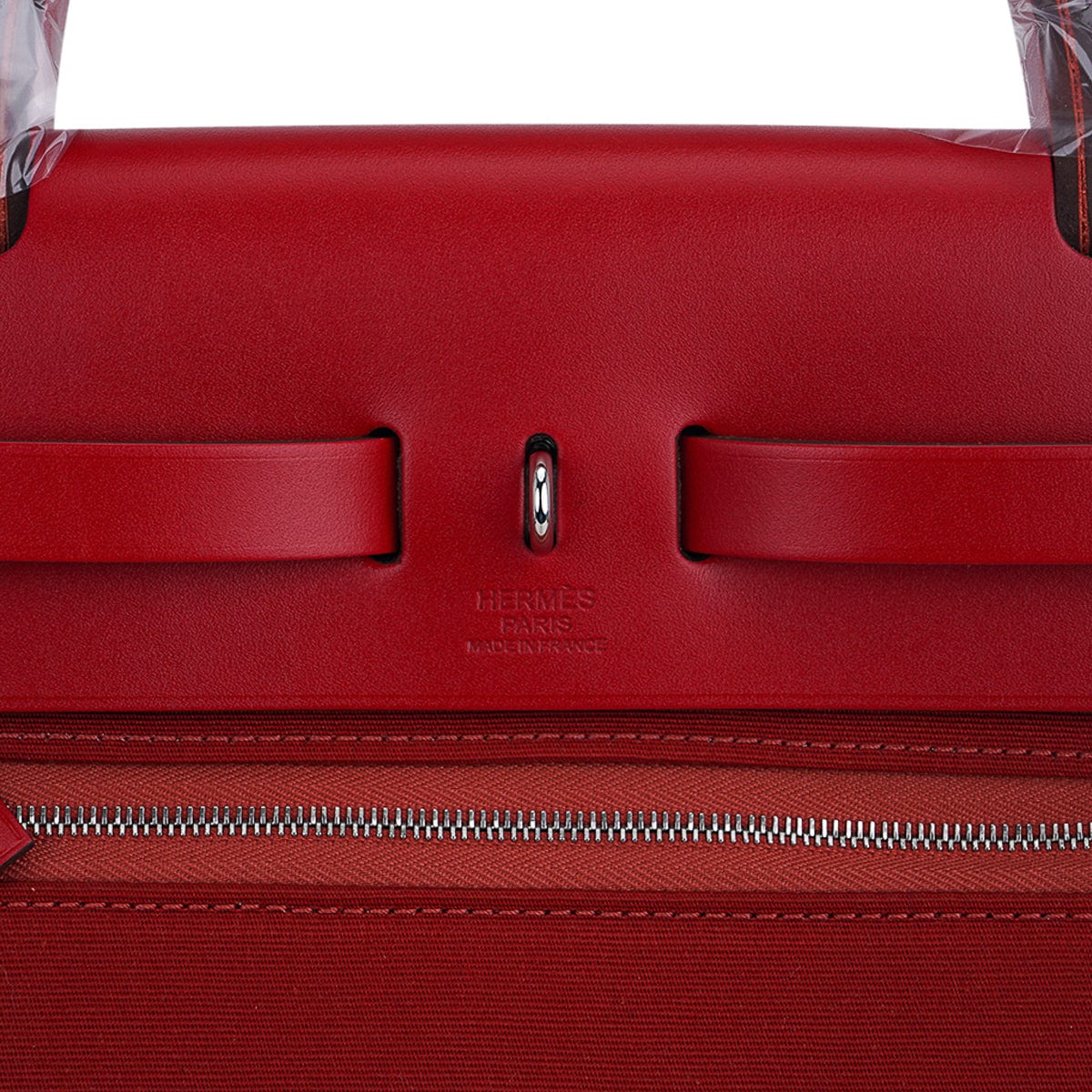 Hermes Herbag Zip 31 tri-colored bag in Rose Extreme Toile Officier and Rouge Piment Vache Hunter leather.