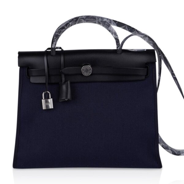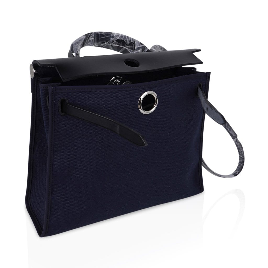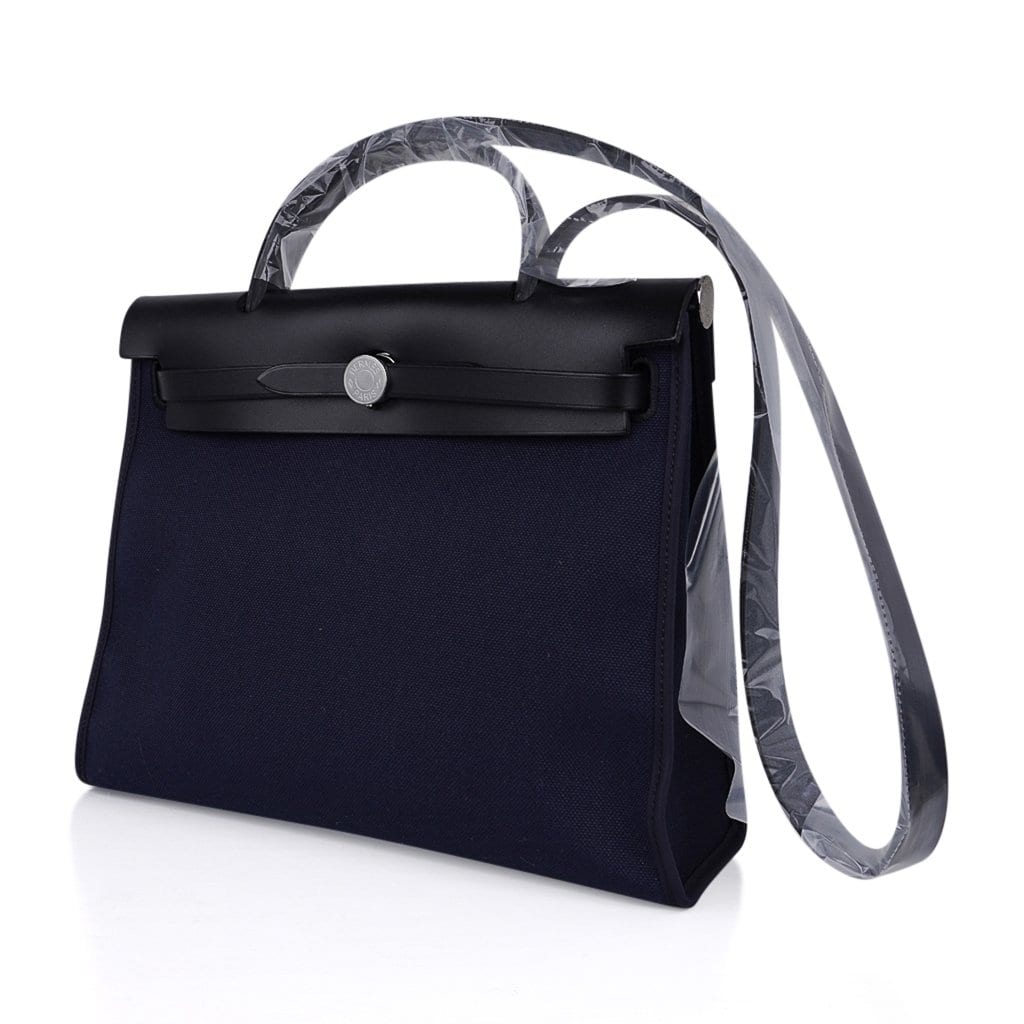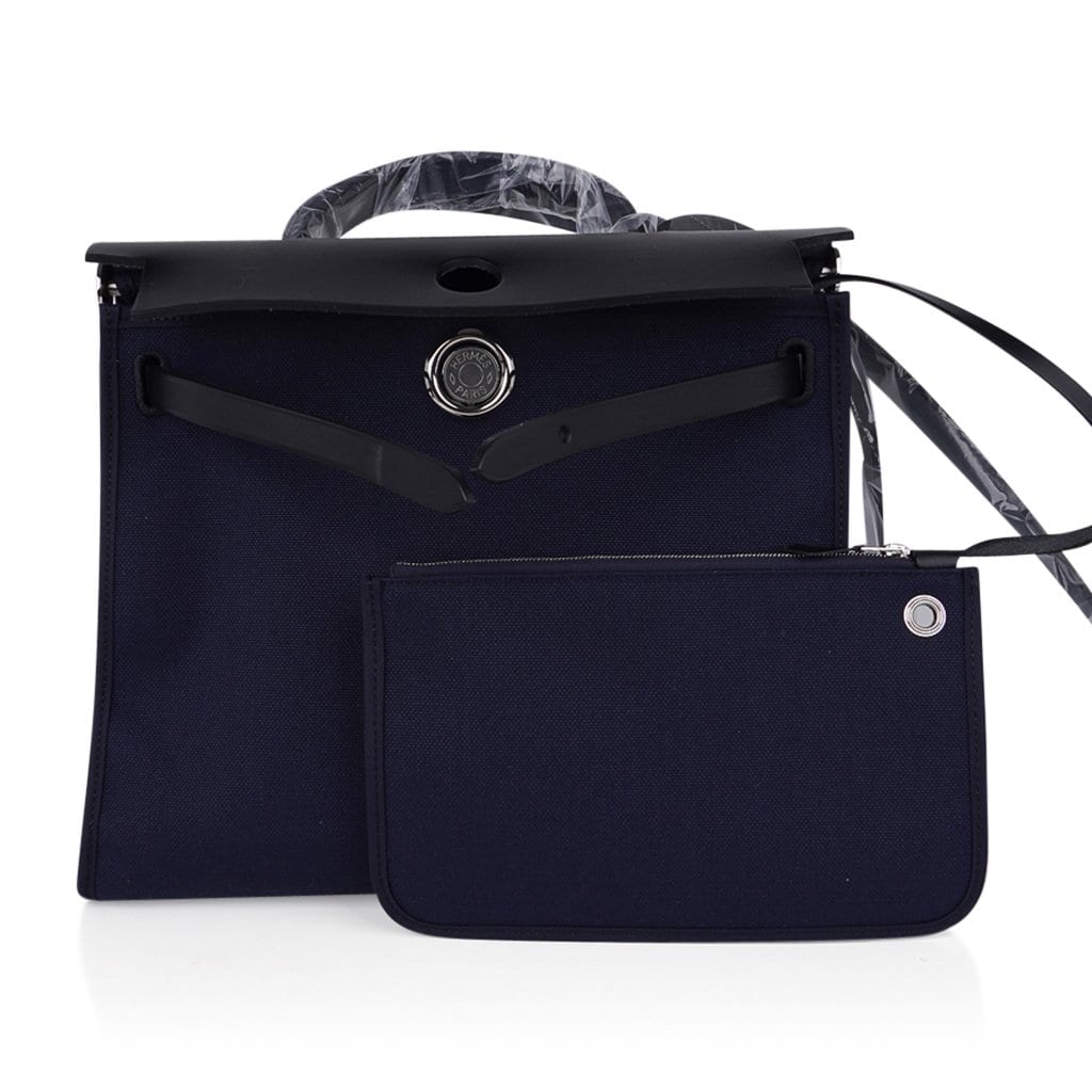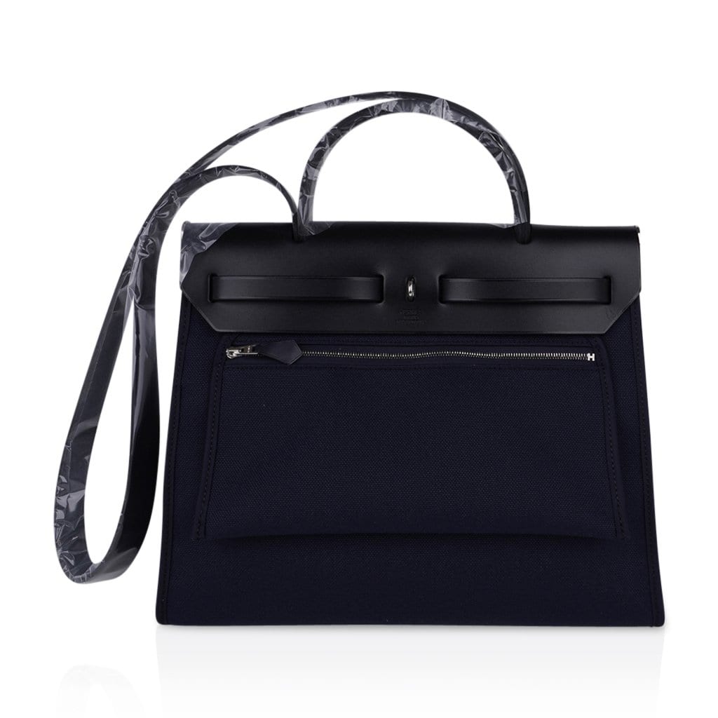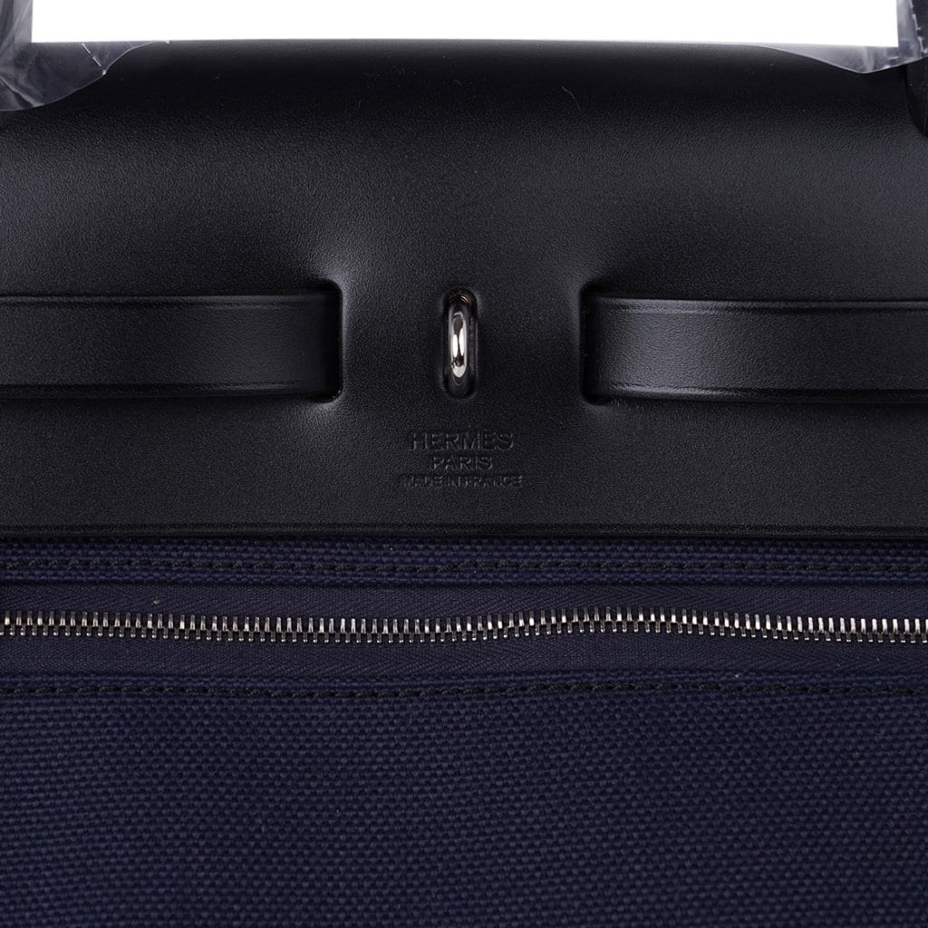 Hermes Herbag Zip Navy on Black 31 Militaire Canvas / Vache Hunter Leather