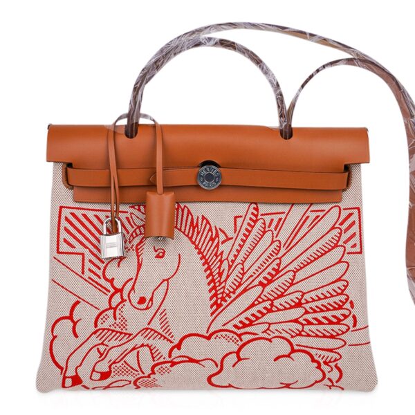 This limited edition Hermes Herbag features the outline of the Dimitri Rybaltchenko winged Pegase Pop horse.