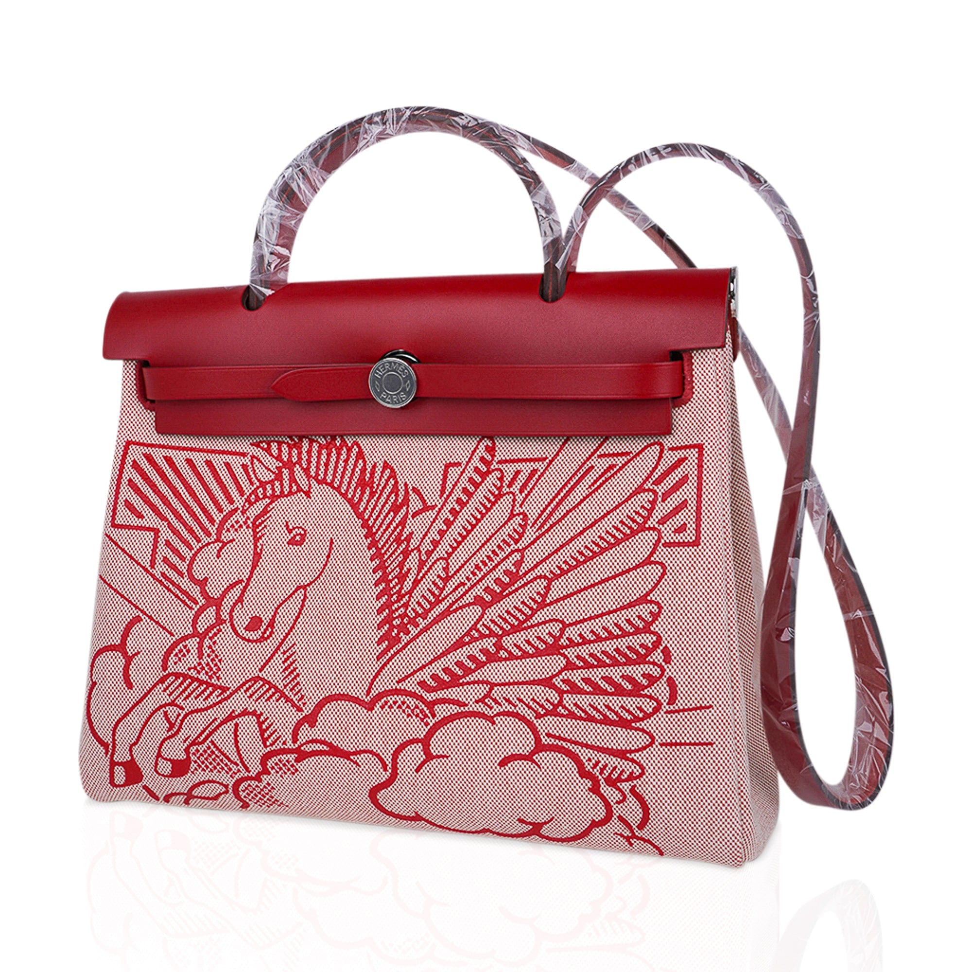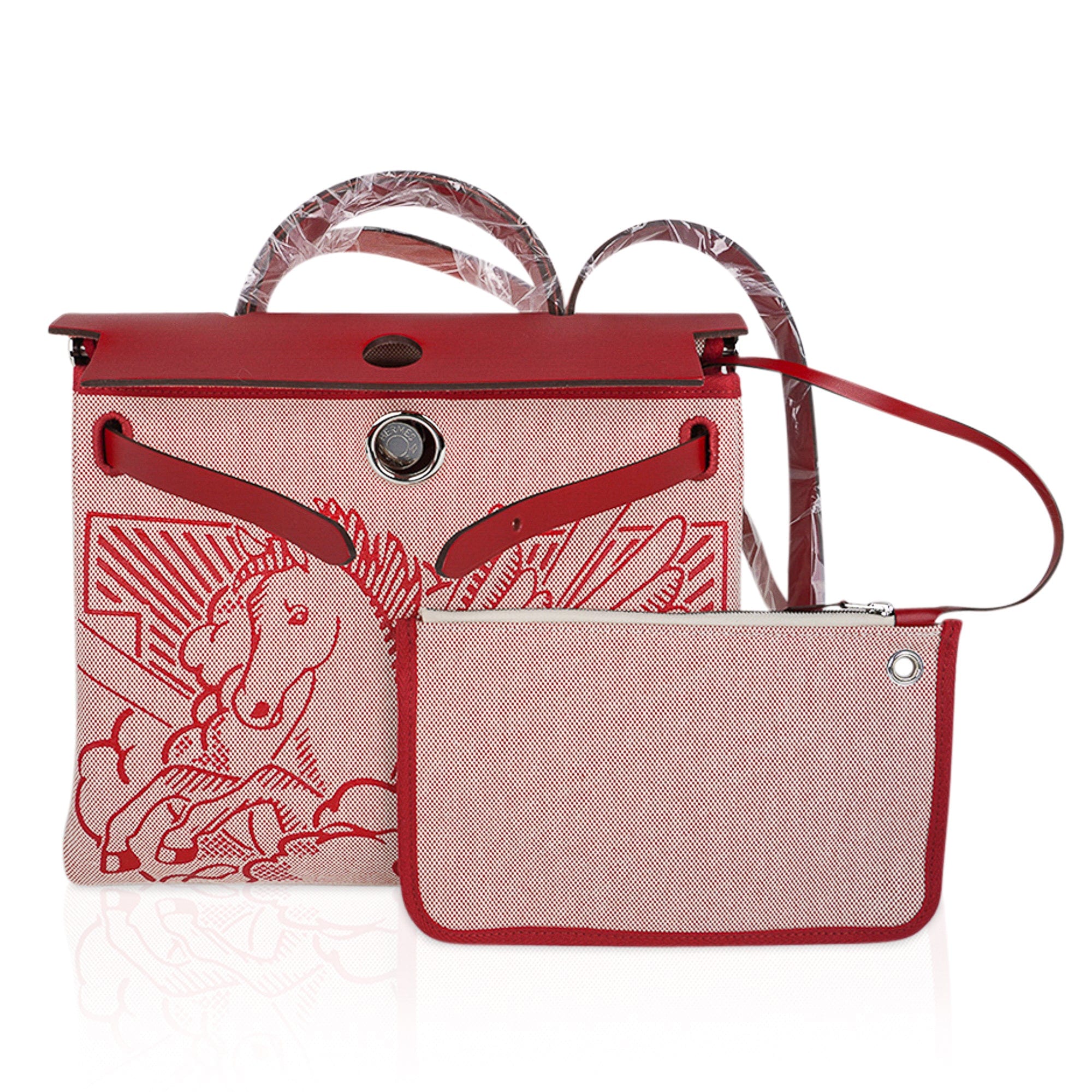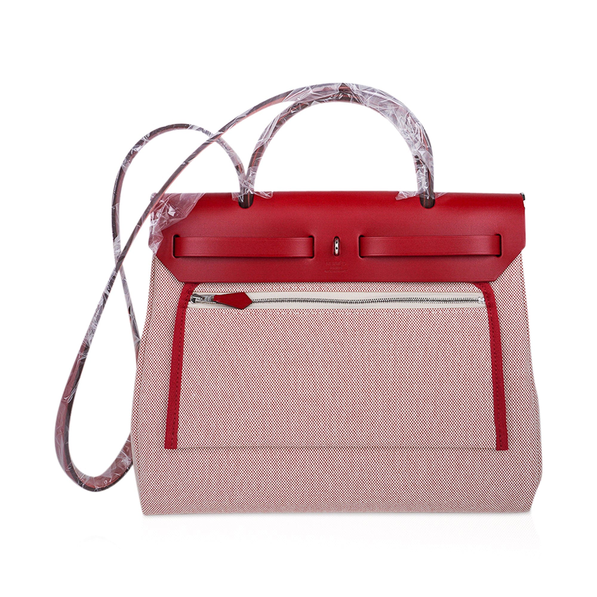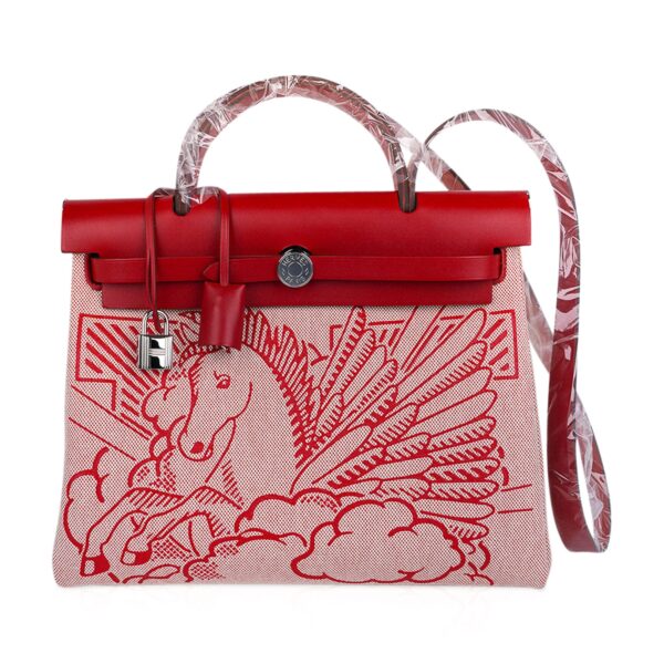 Hermes Herbag Zip 31 Pegase featured Toile and Rouge Piment Vache Hunter leather.