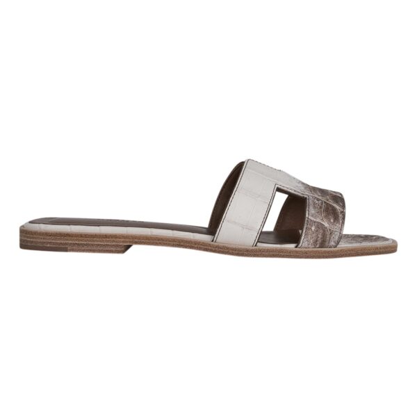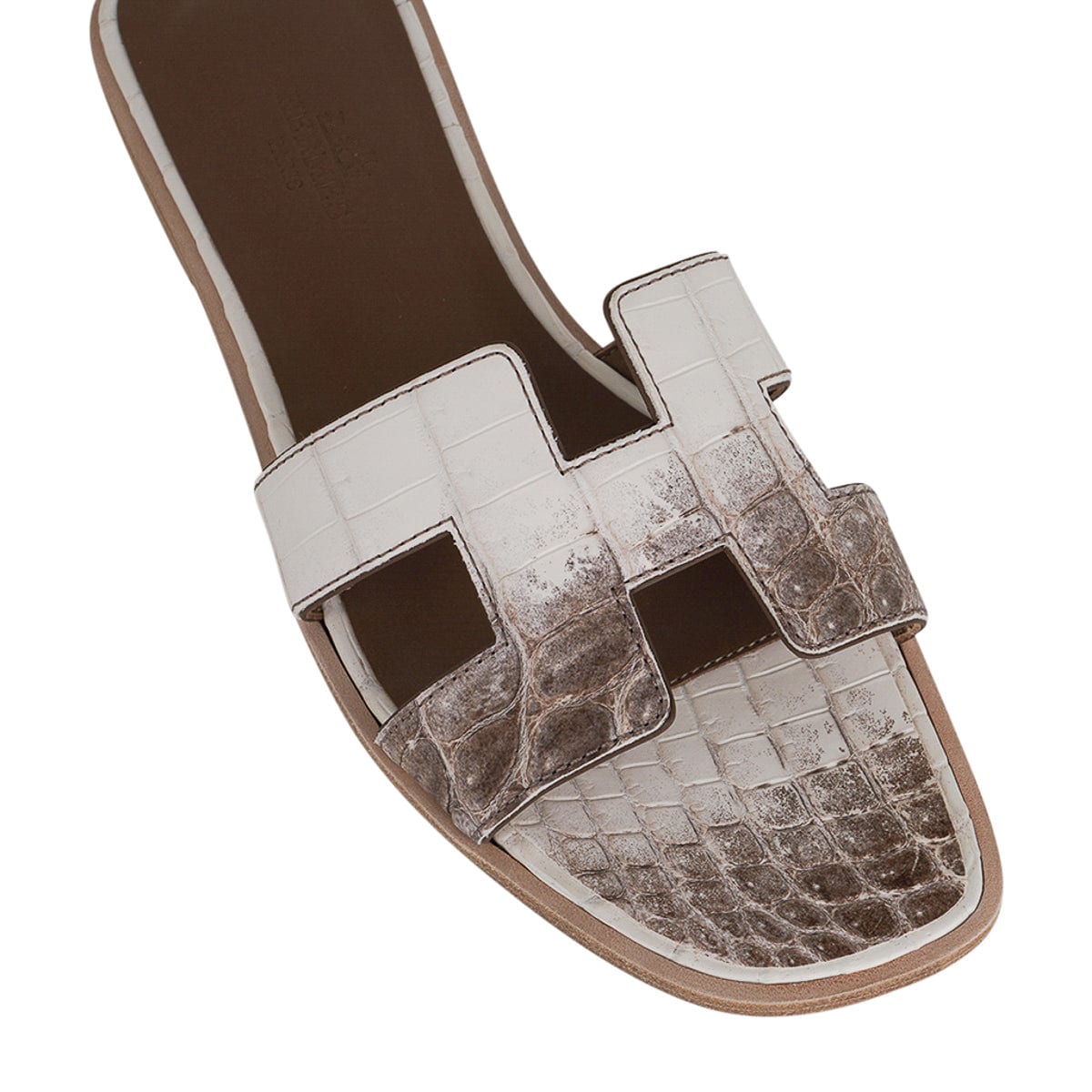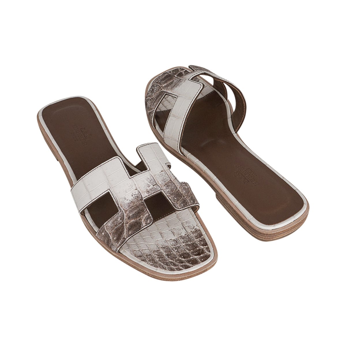 Guaranteed authentic Hermes Himalaya matte alligator Oran sandals.