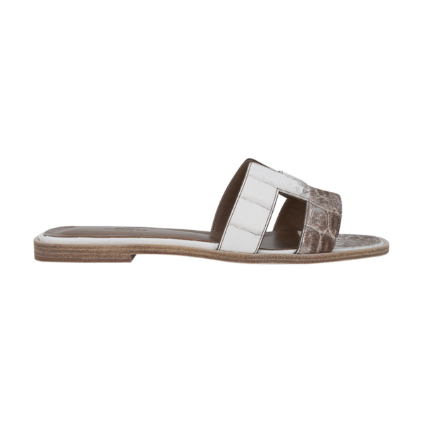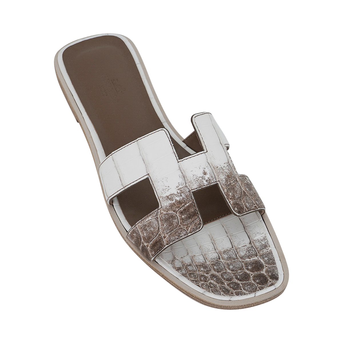 Guaranteed authentic Hermes Himalaya matte alligator Oran sandals.
