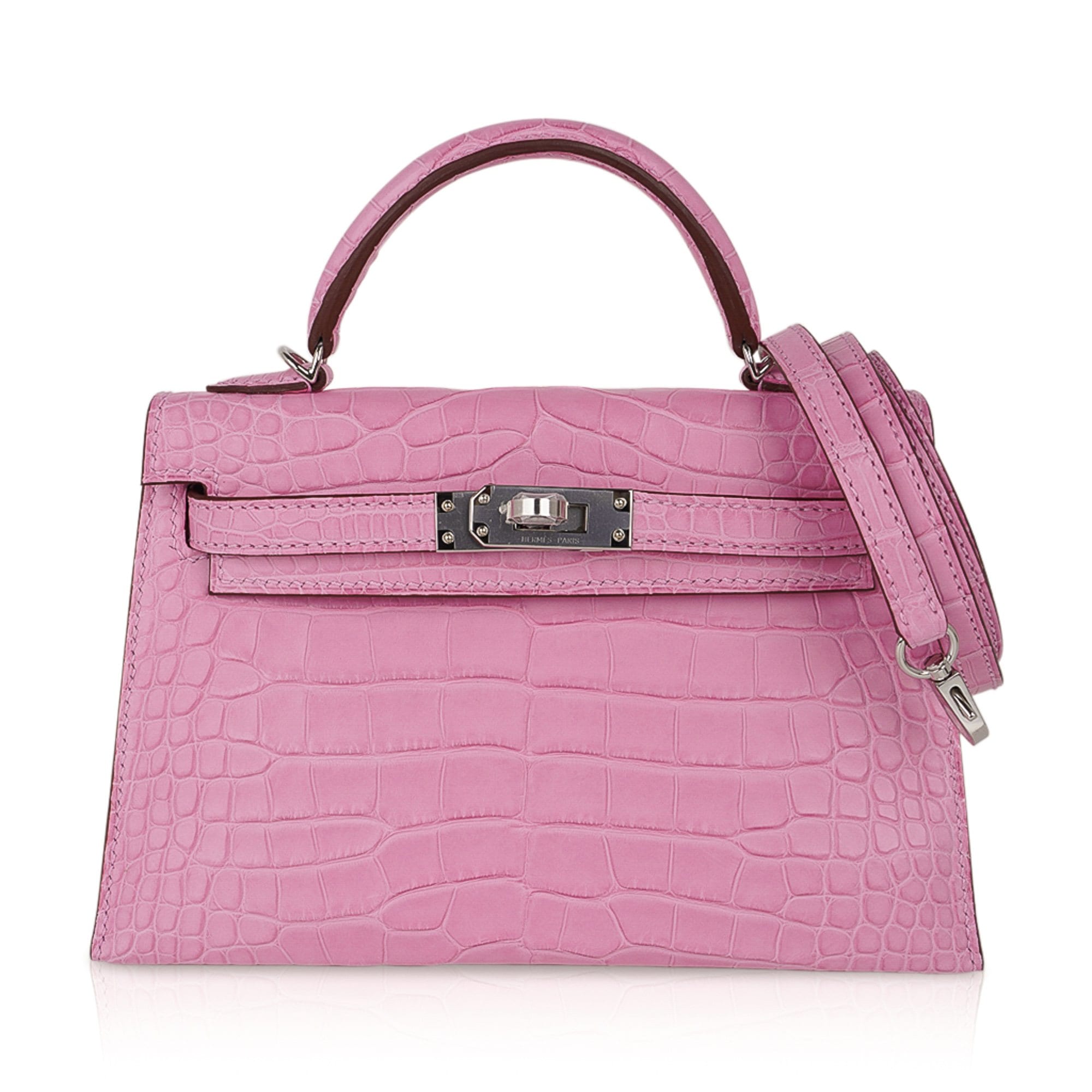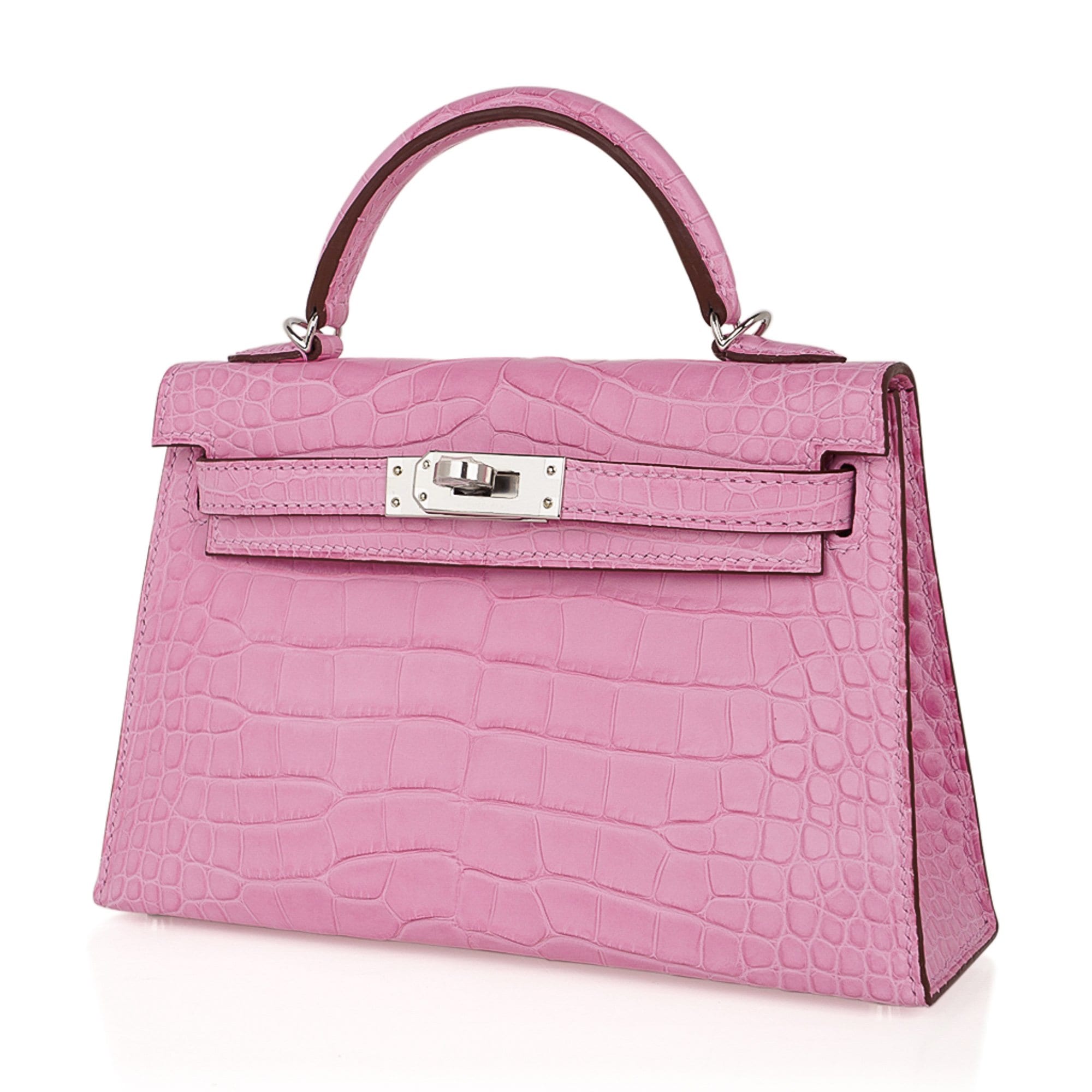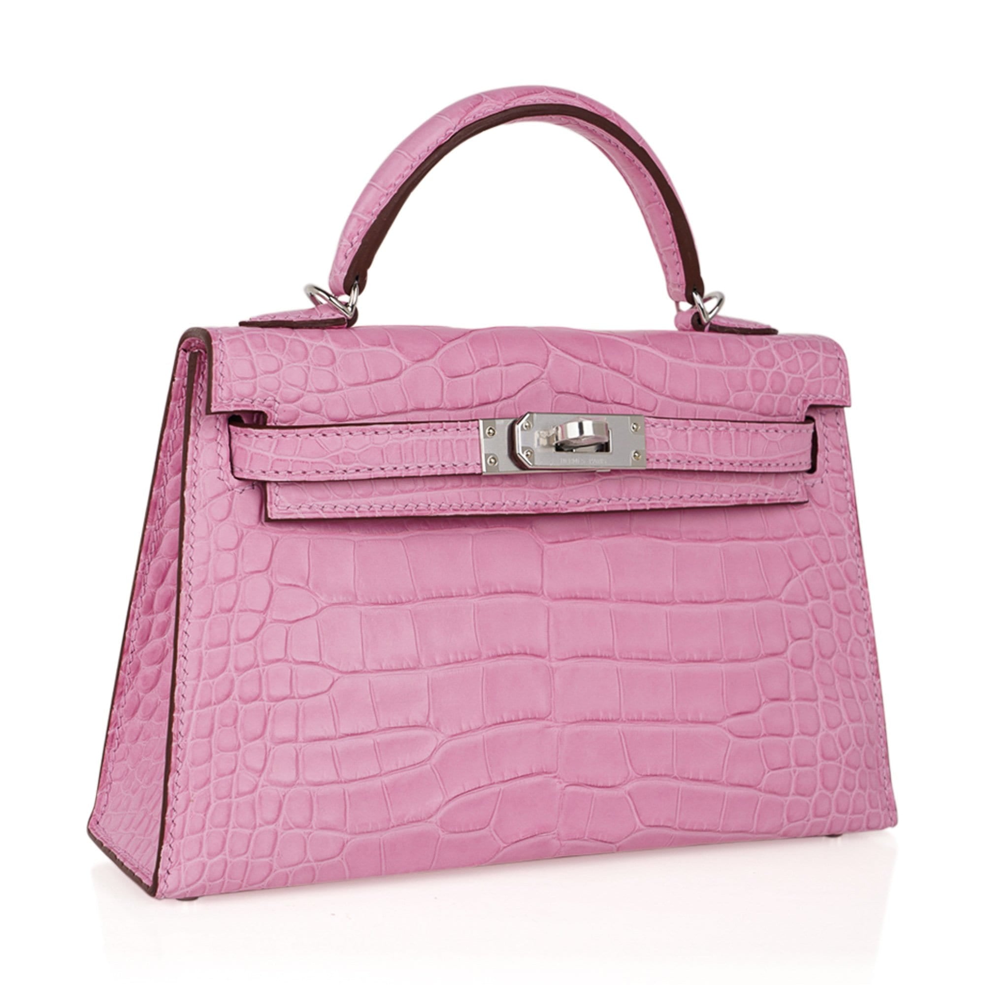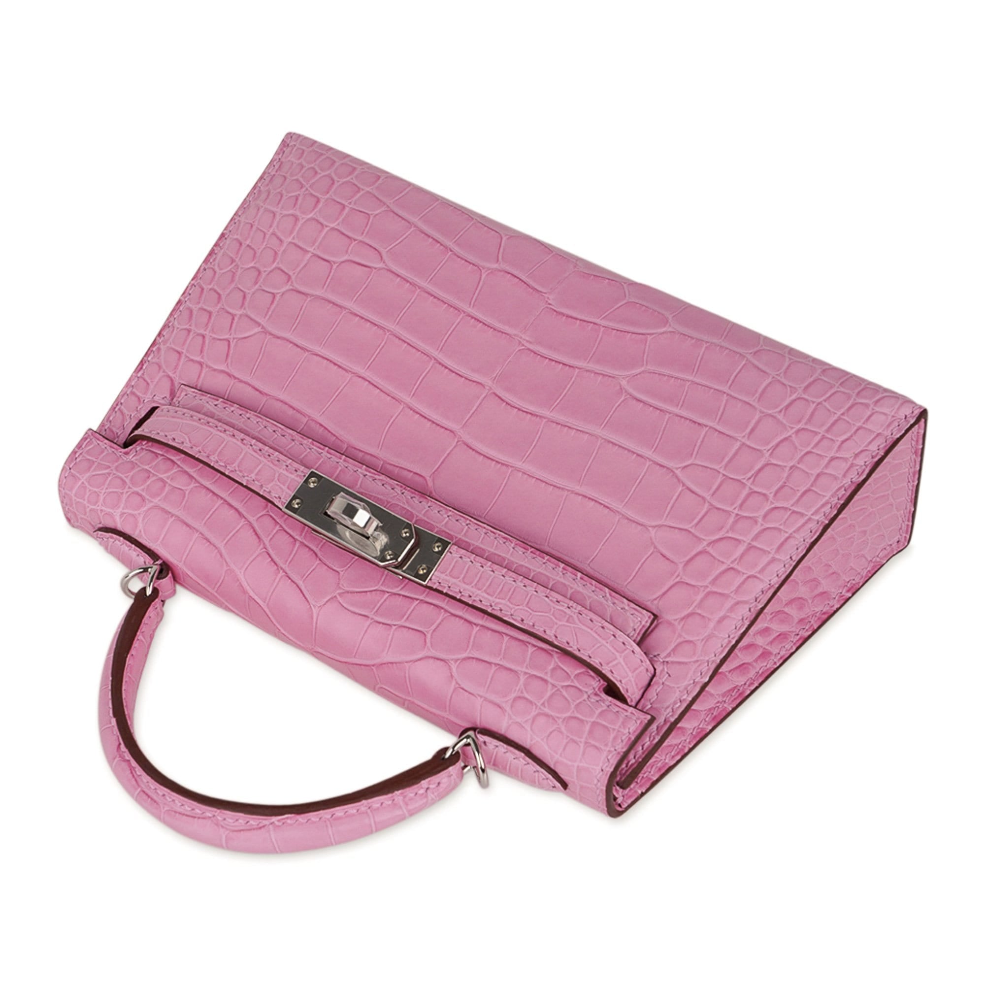 Guaranteed authentic Limited Edition Hermes Kelly 20 Mini Sellier bag featured in coveted unircorn 5P Pink matte Alligator.
