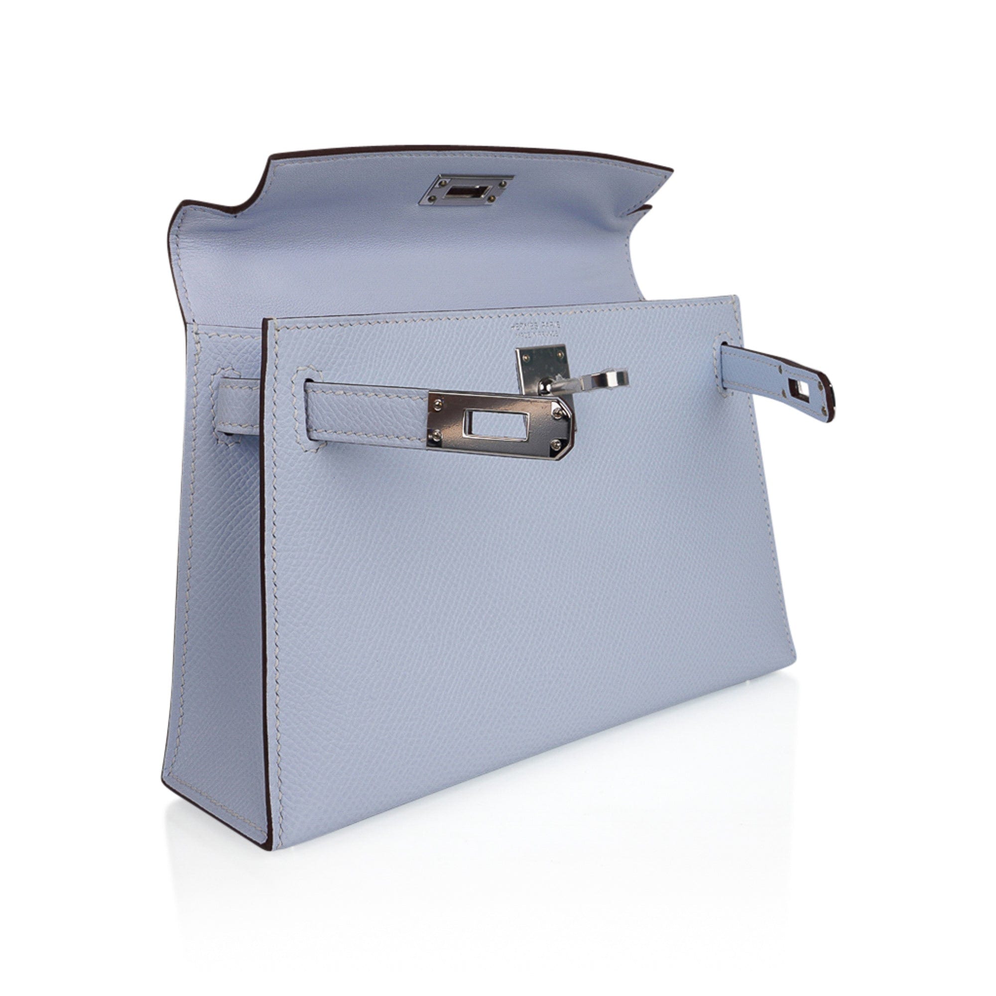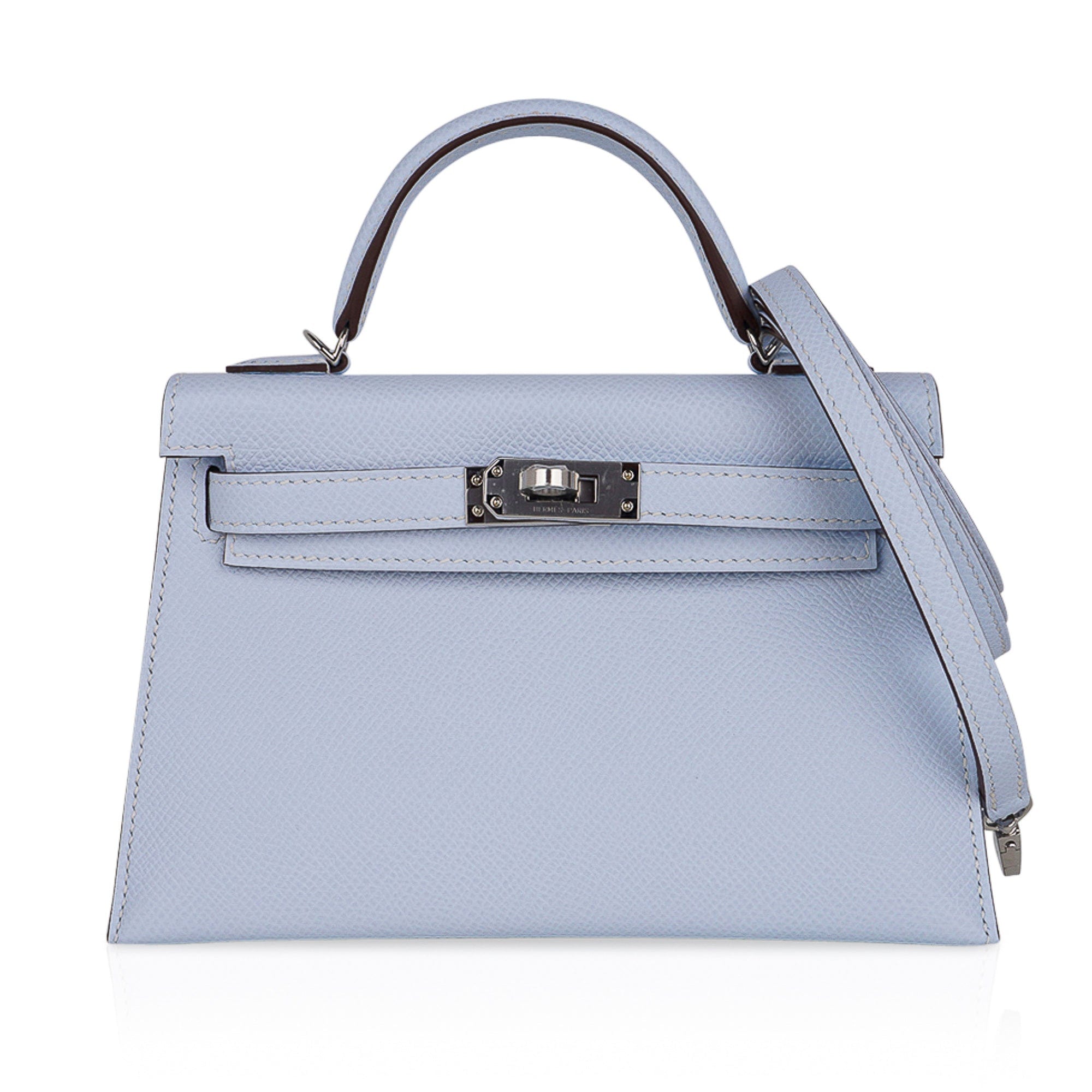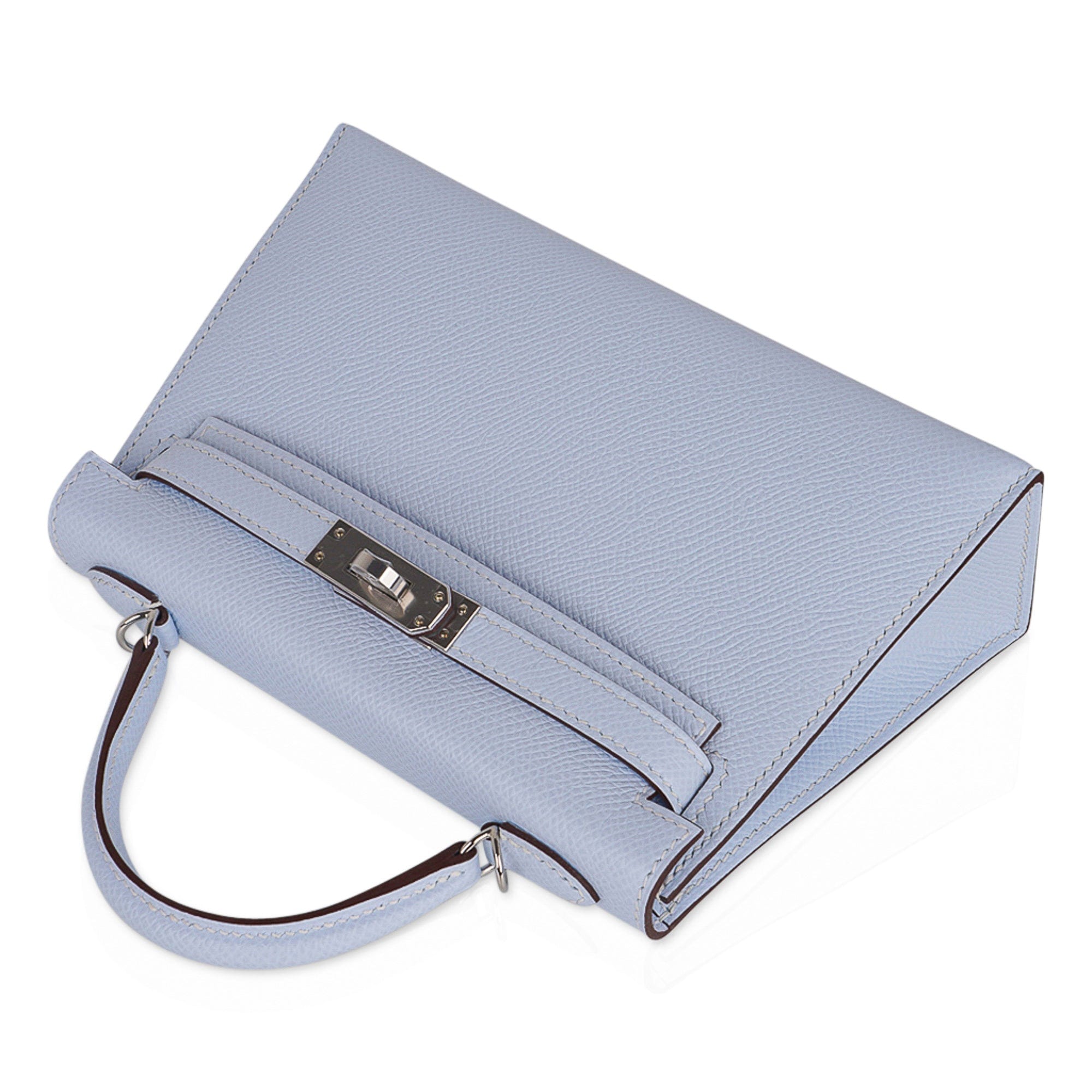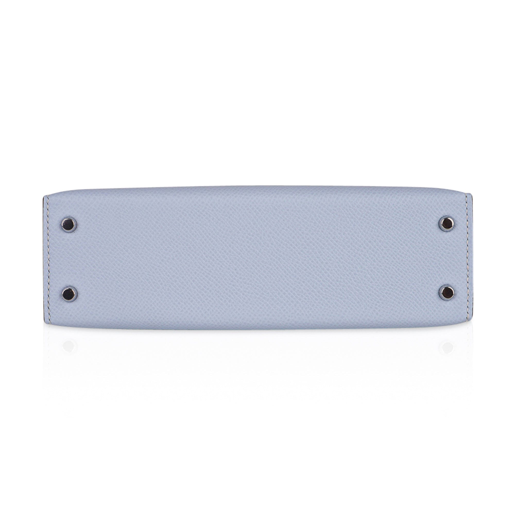Guaranteed authentic Hermes Kelly 20 Mini Sellier bag featured in stunning Blue Brume.
