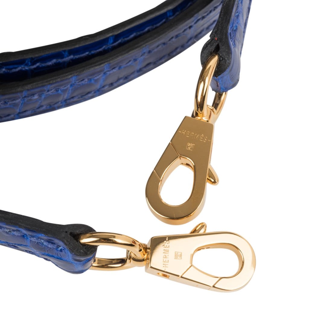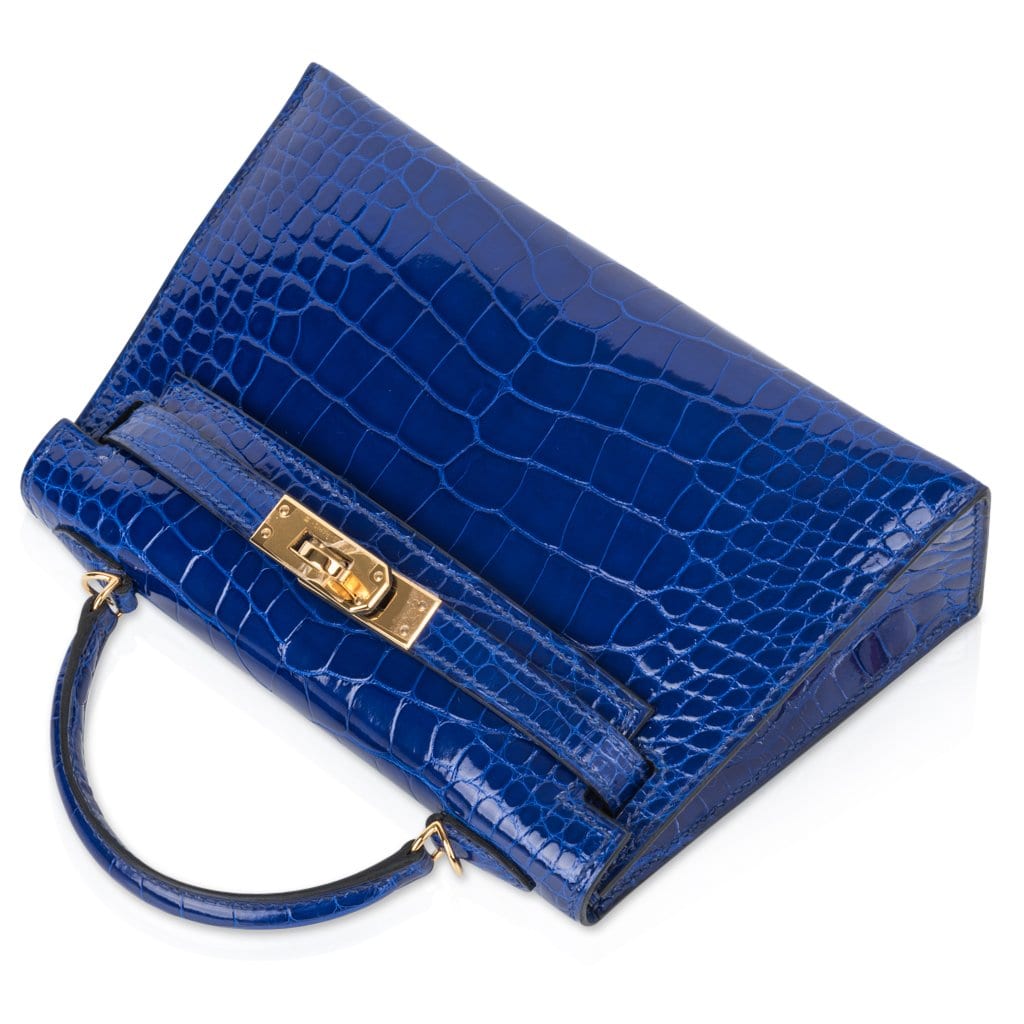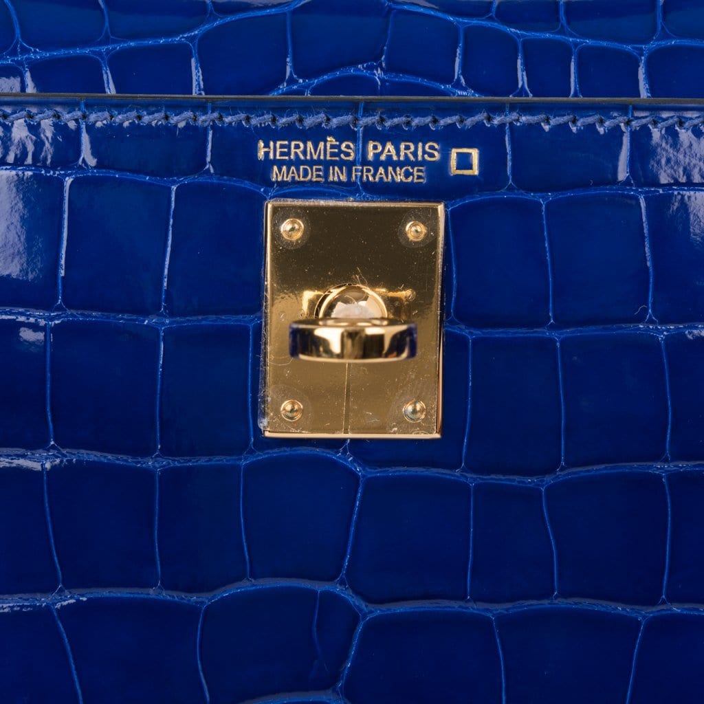 Guaranteed authentic Limited Edition Hermes Kelly 20 Mini Sellier features vivid Electric Blue alligator.