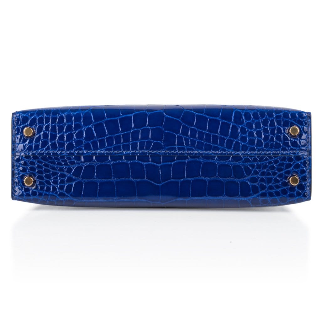 Guaranteed authentic Limited Edition Hermes Kelly 20 Mini Sellier features vivid Electric Blue alligator.