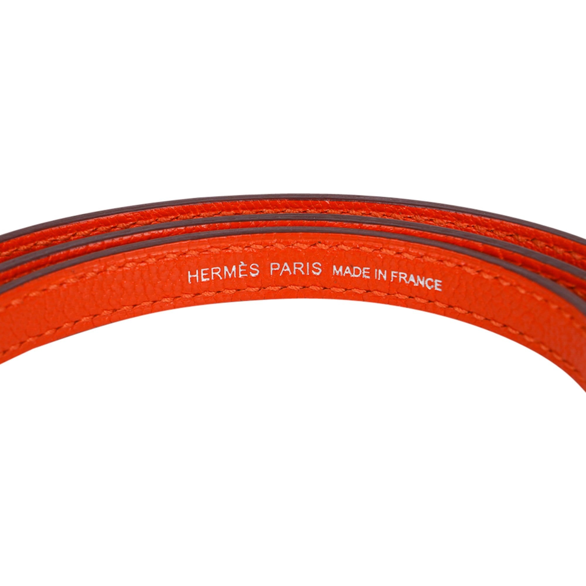 Guaranteed authentic Hermes Kelly 20 Mini Sellier bag featured in vibrant orange Feu with gentle pink Rose Eglantine interior.