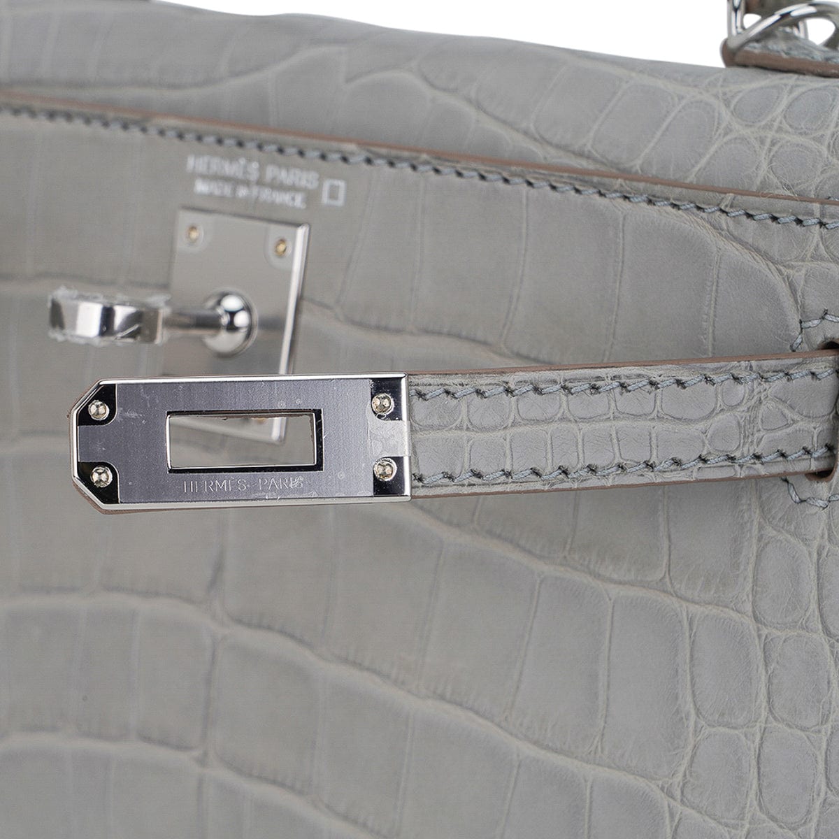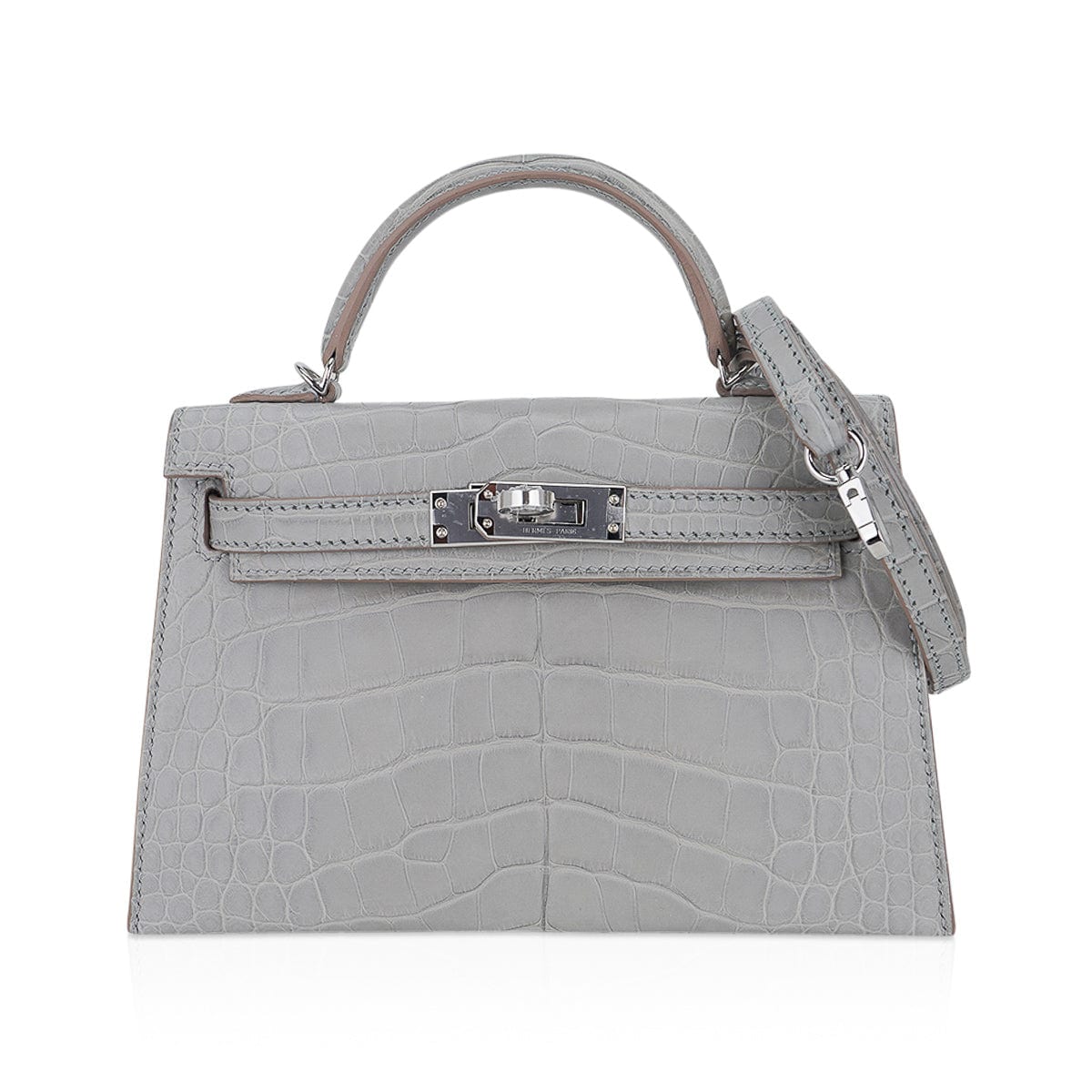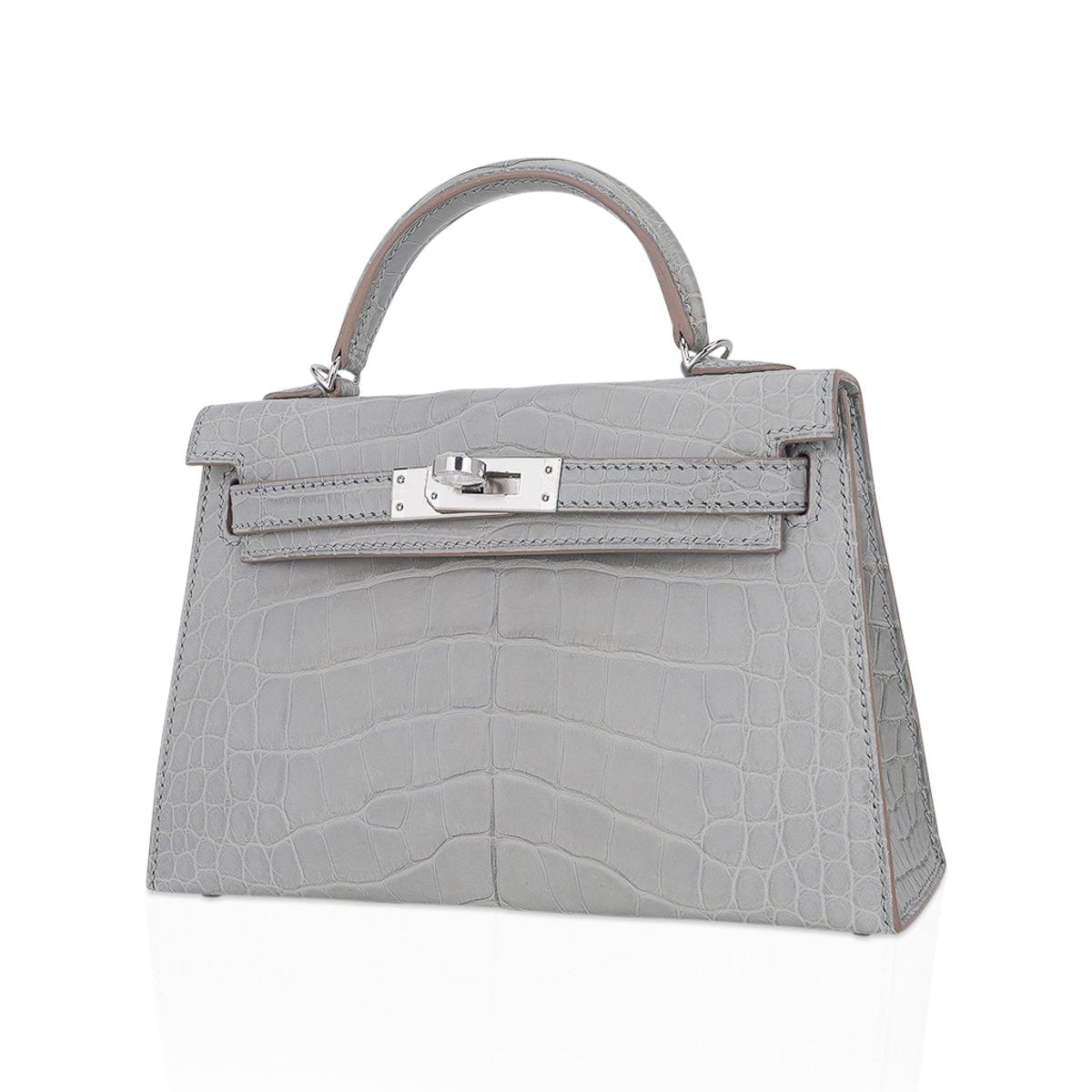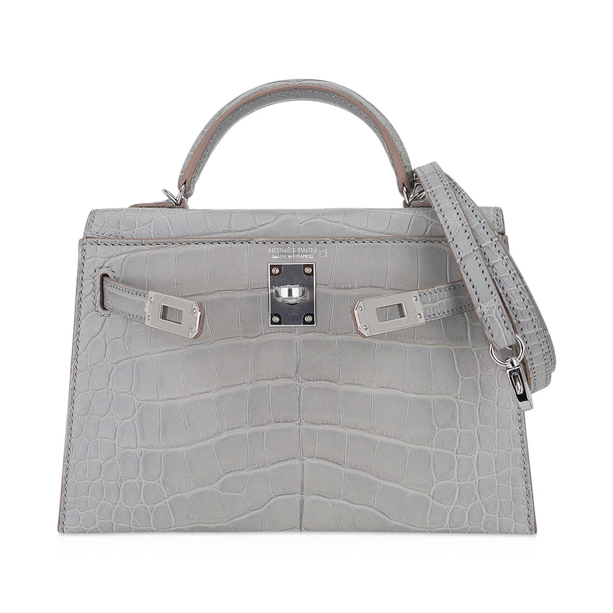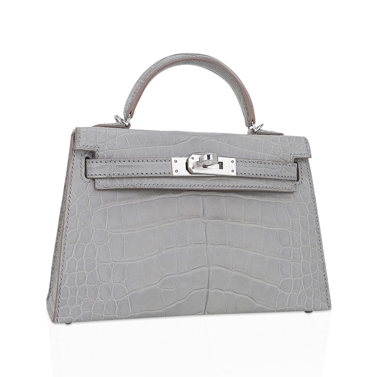 Hermes Kelly 20 Mini Sellier Matte Gris Pearl Alligator Mini Limited Edition Bag