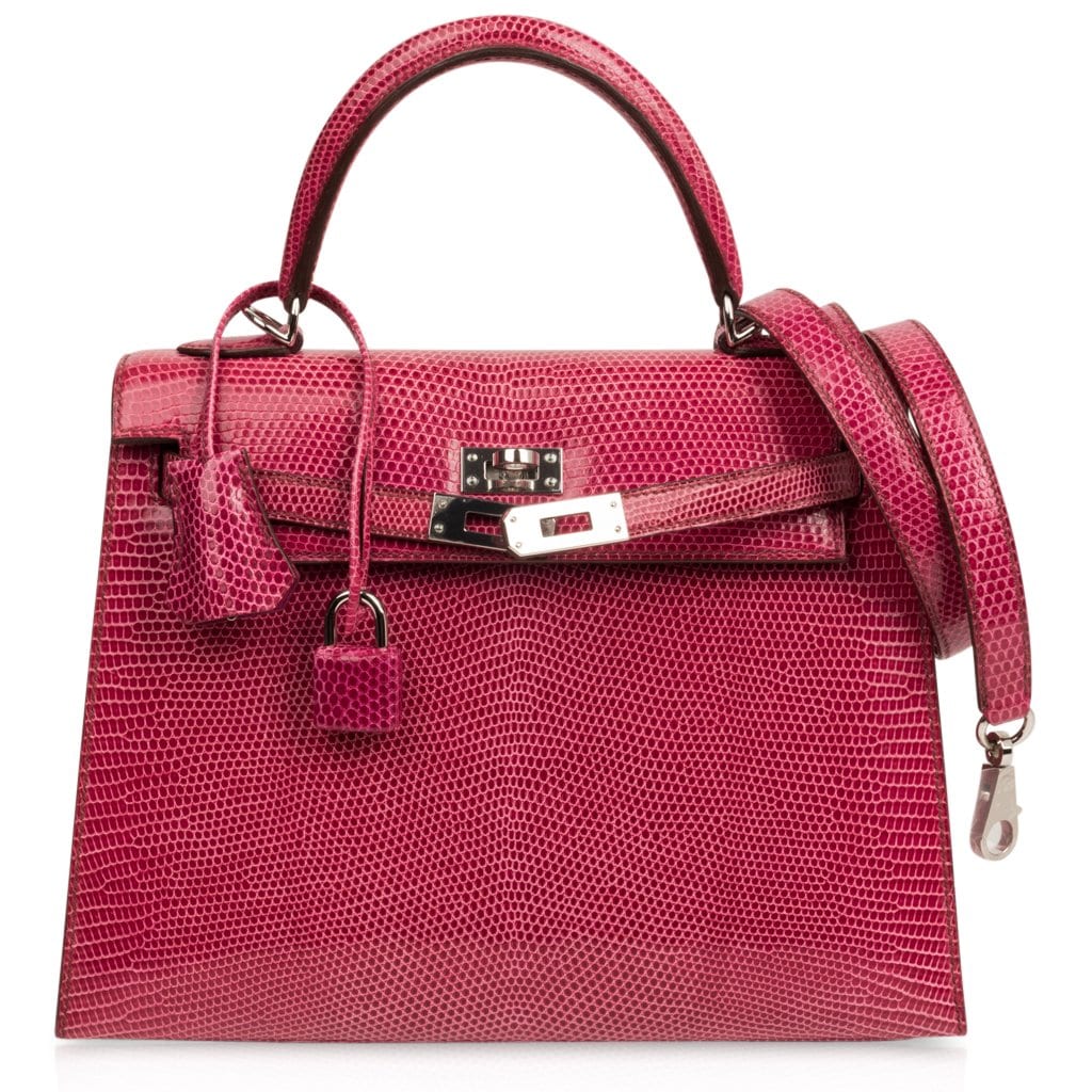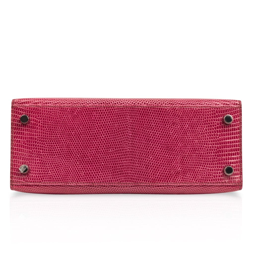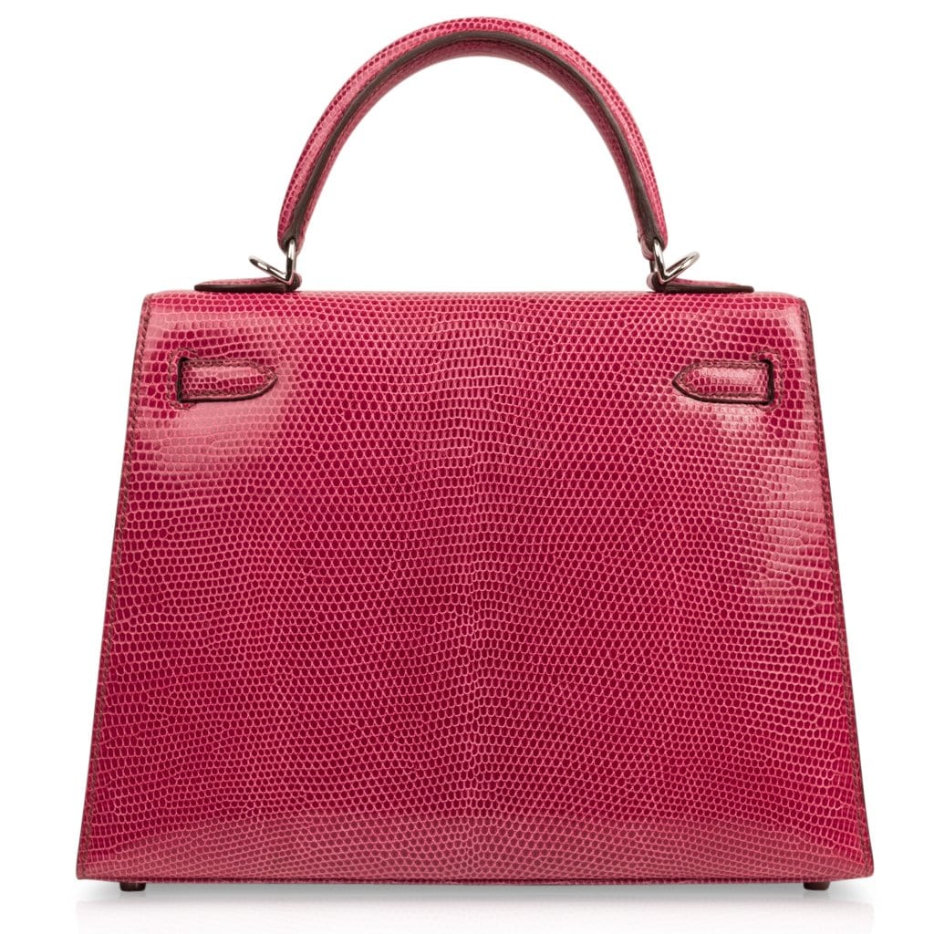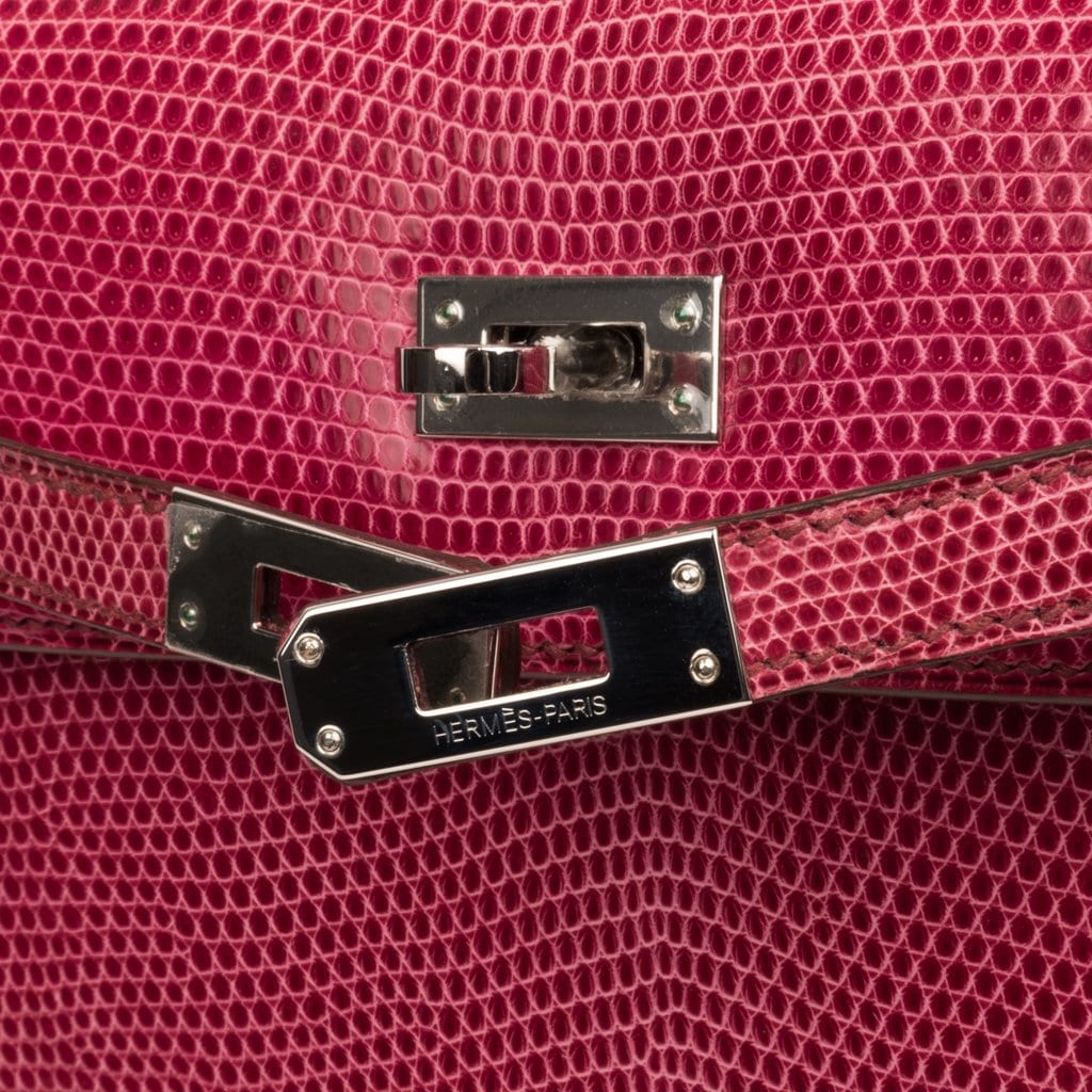 Hermes Kelly 25 Bag Sellier Fuschia Pink Lizard Palladium