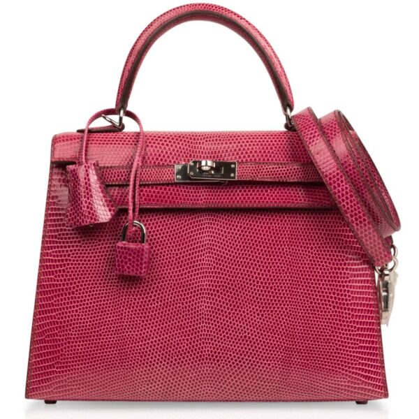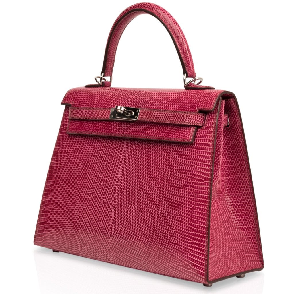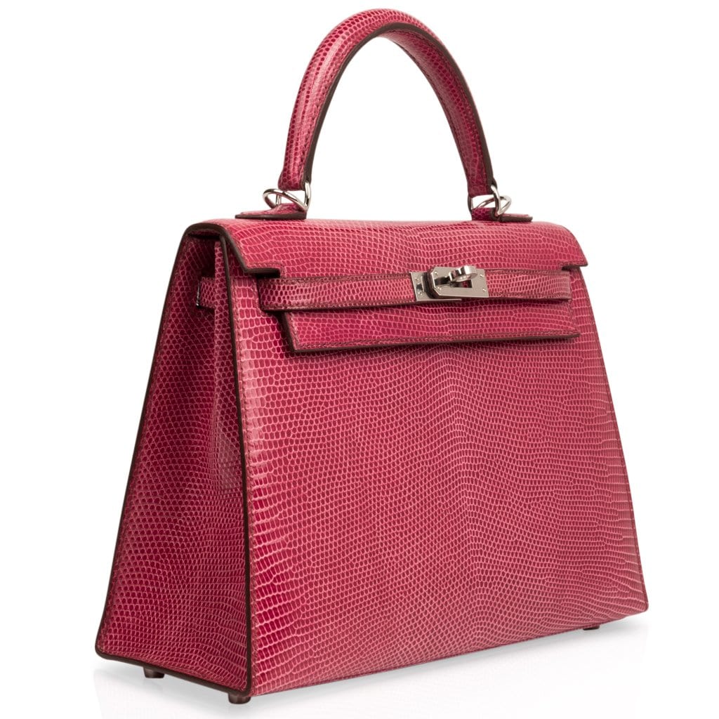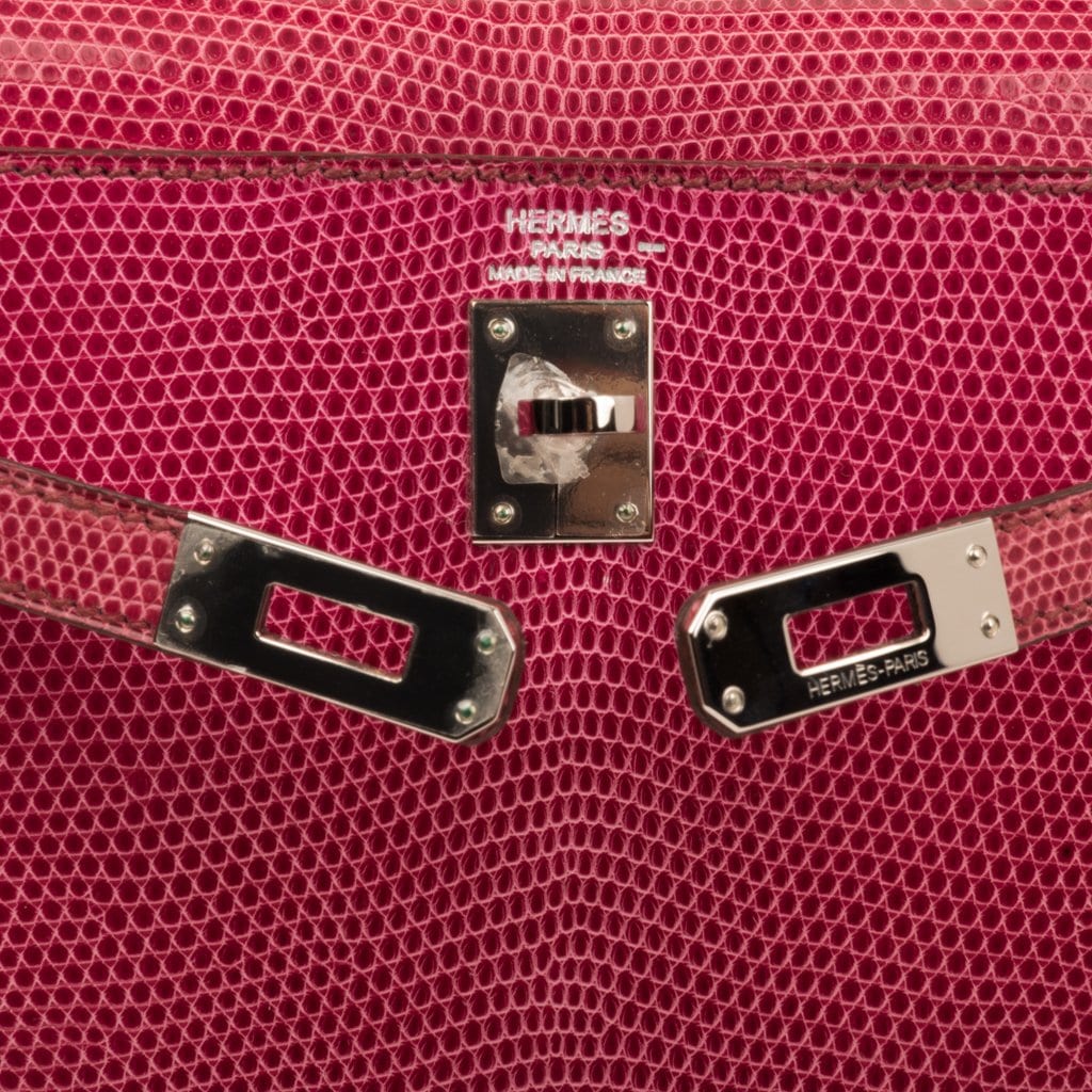 Hermes Kelly 25 Bag Sellier Fuschia Pink Lizard Palladium