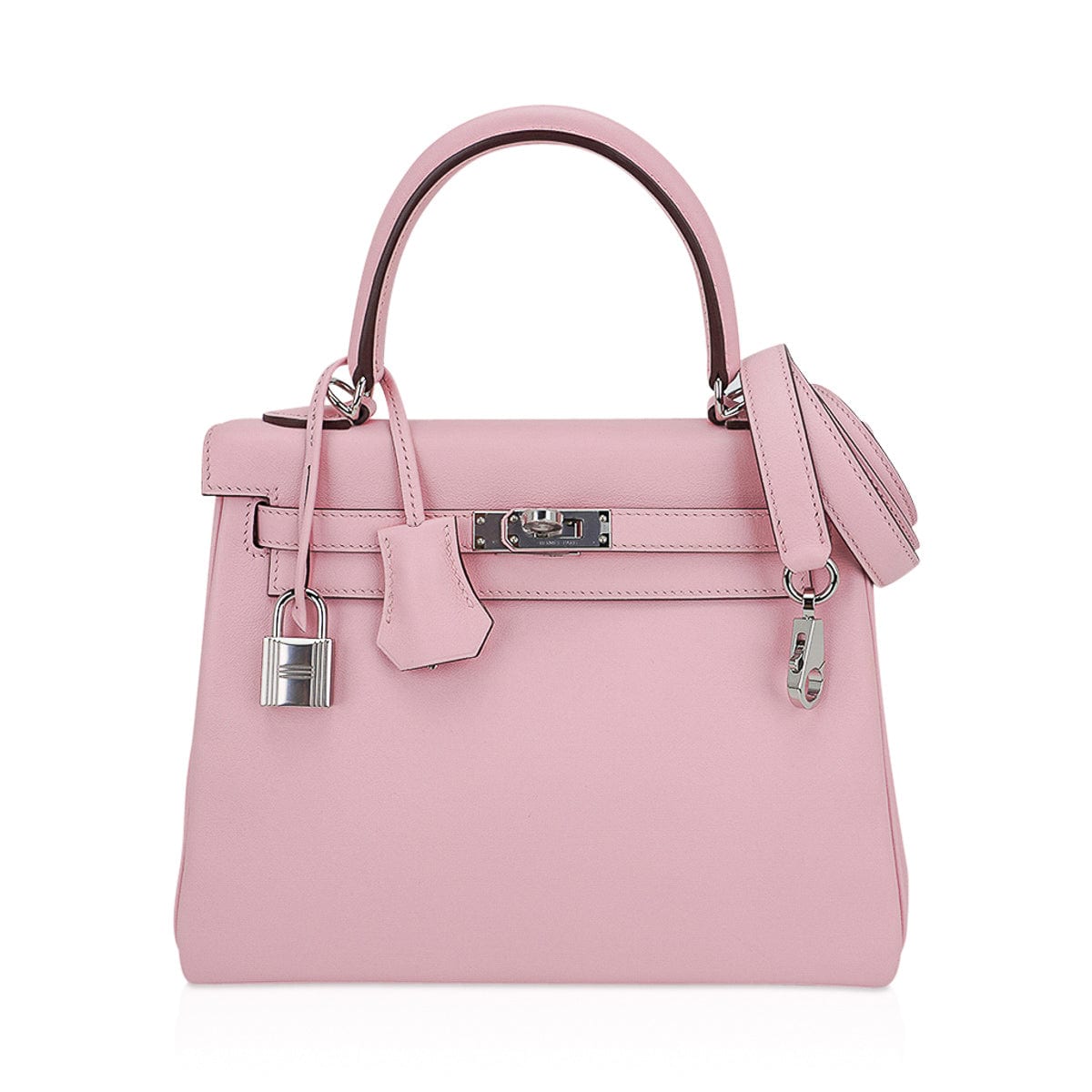 Guaranteed authentic Hermes Kelly 25 bag featured in beloved Rose Sakura.