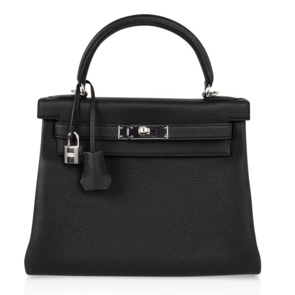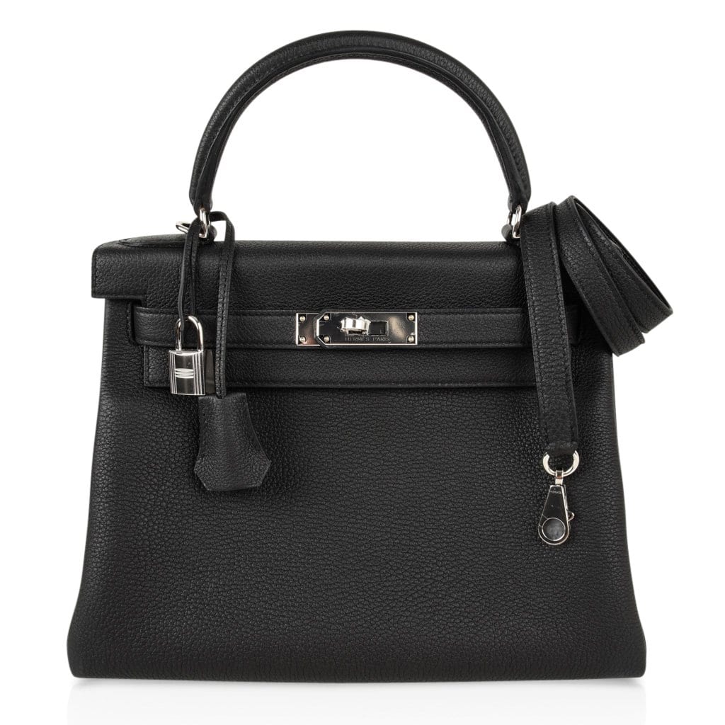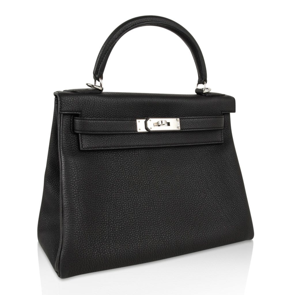 Guaranteed authentic coveted classic Black 28 Kelly in Togo leather.