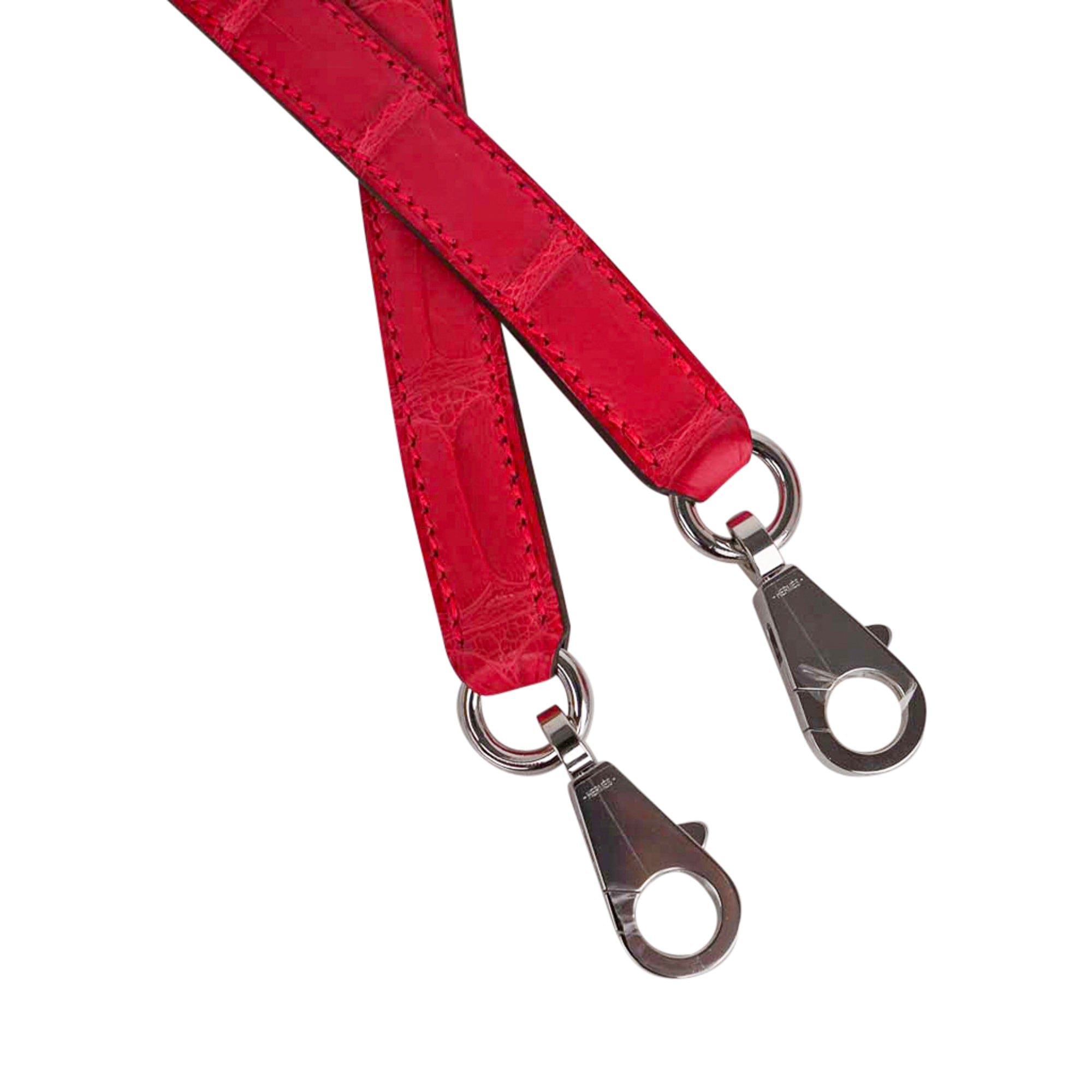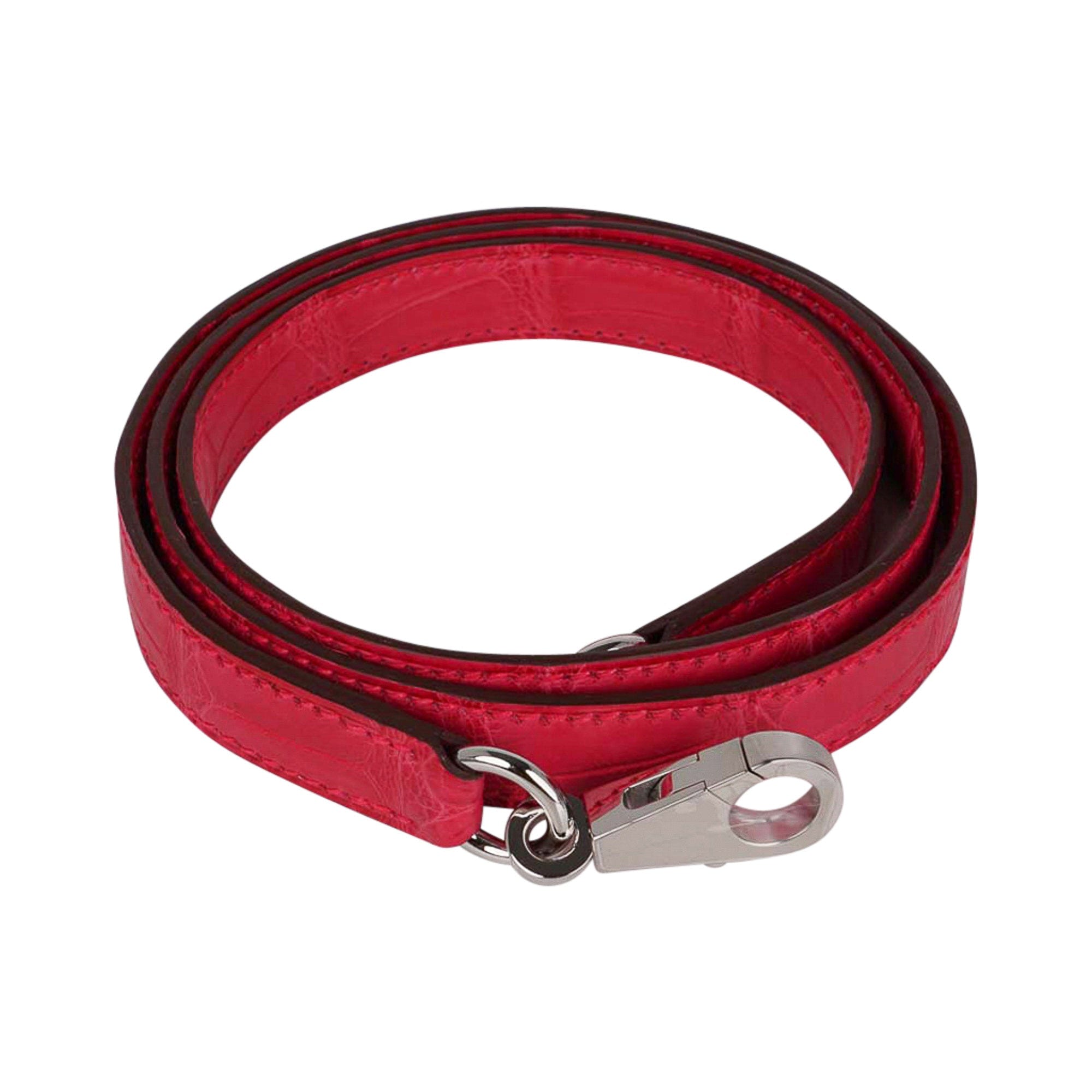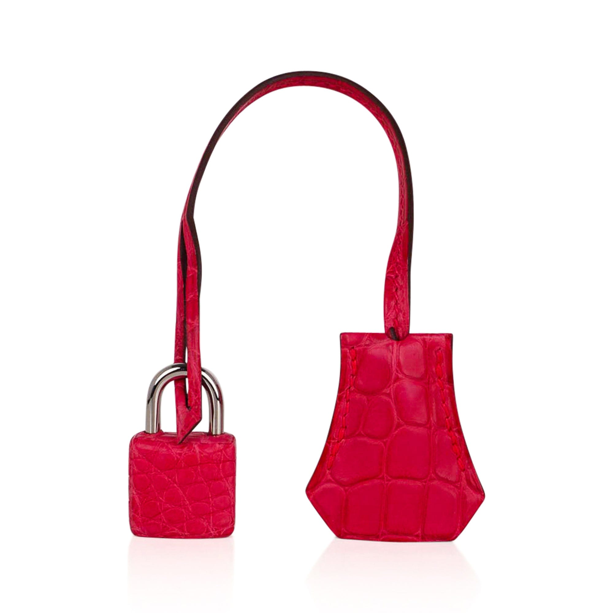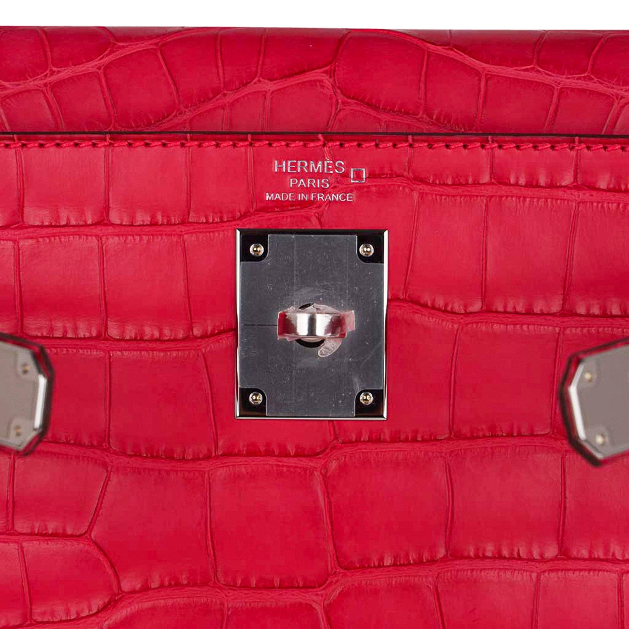 Guaranteed authentic Hermes Kelly 28 bag featured in rich jewel toned Rose Extreme matte alligator.
