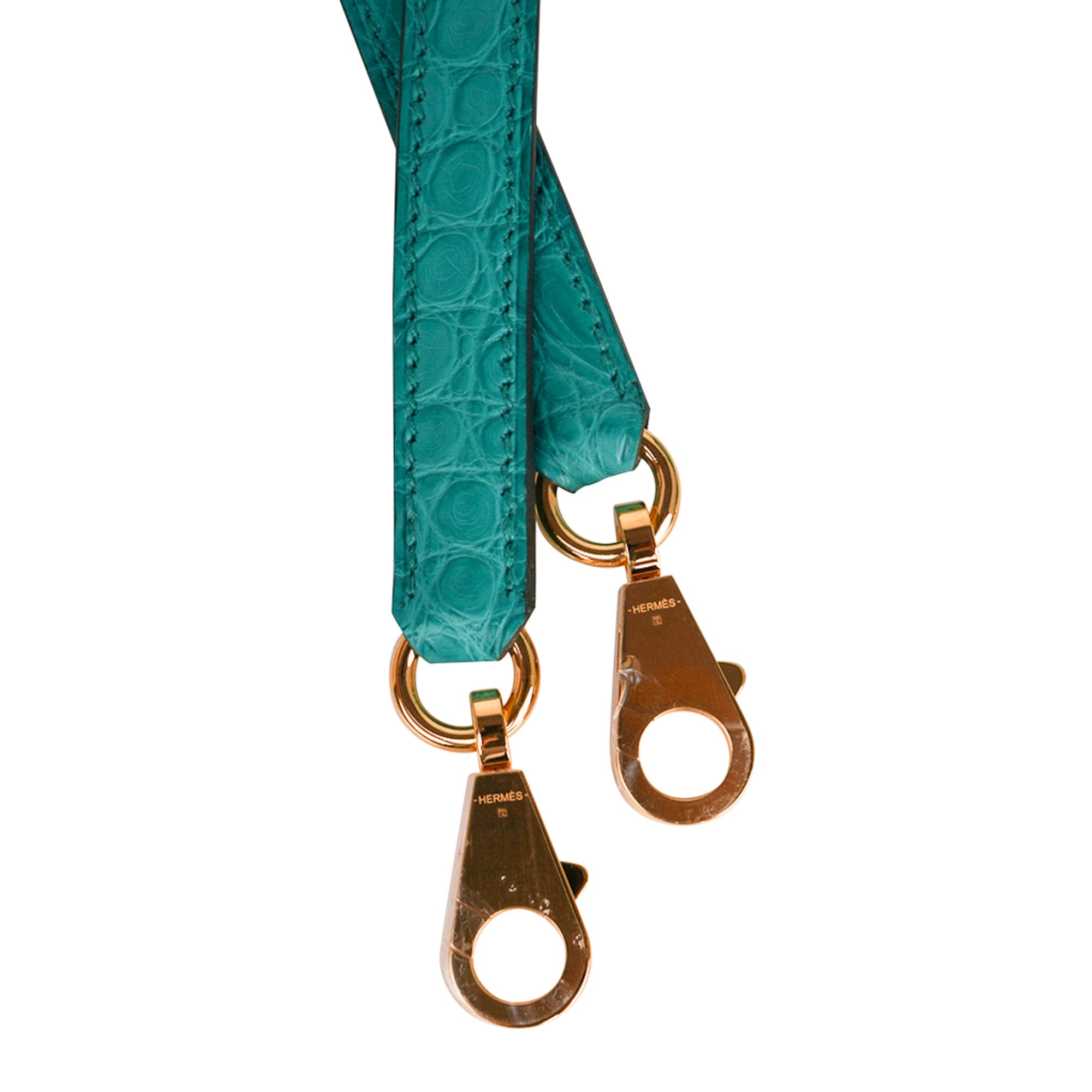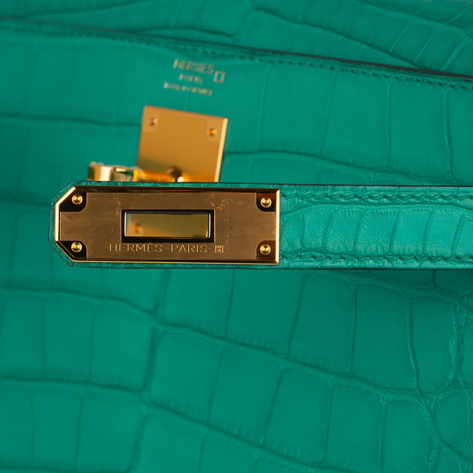 Guaranteed authentic Hermes Kelly 28 bag featured in stunning Vert Jade matte alligator.