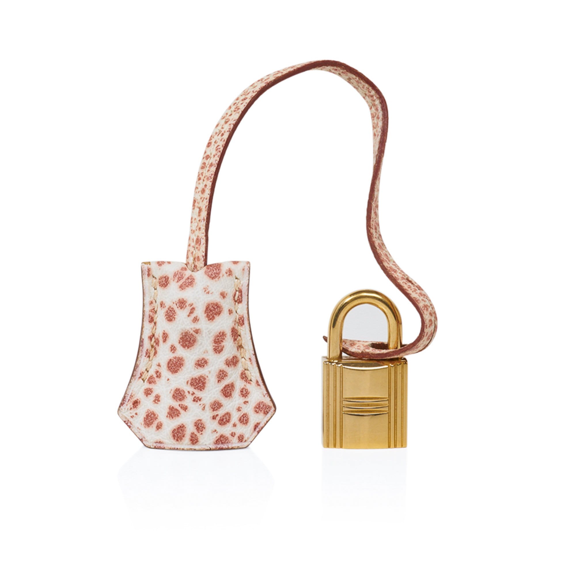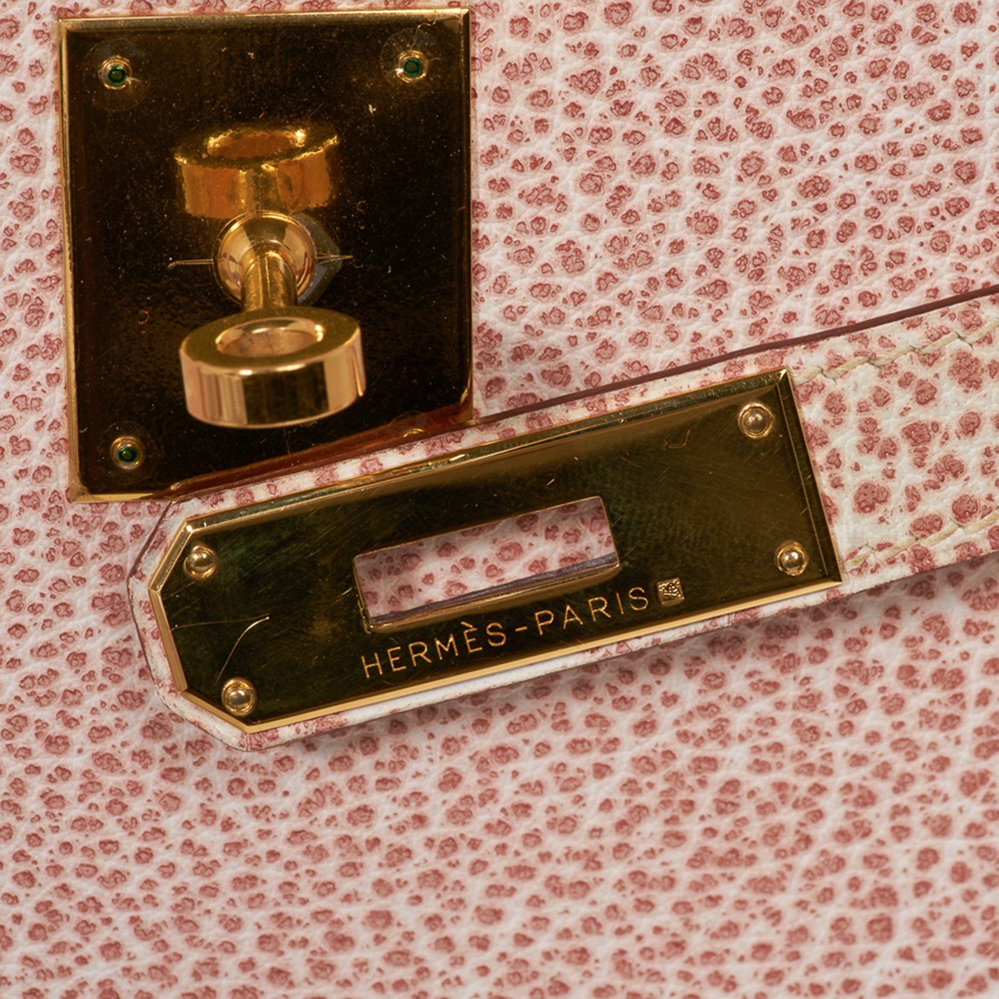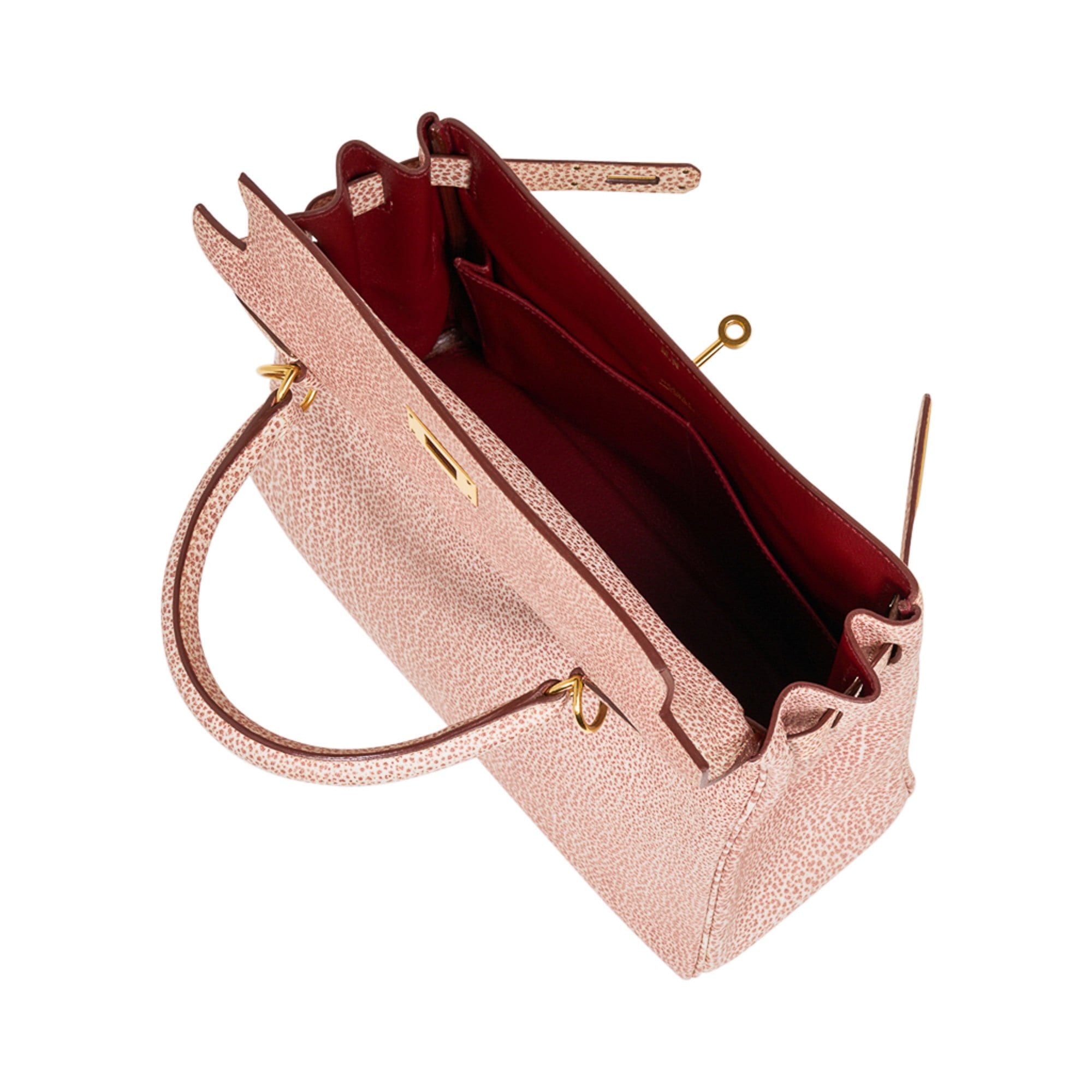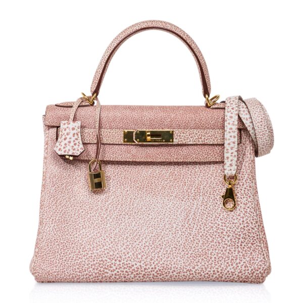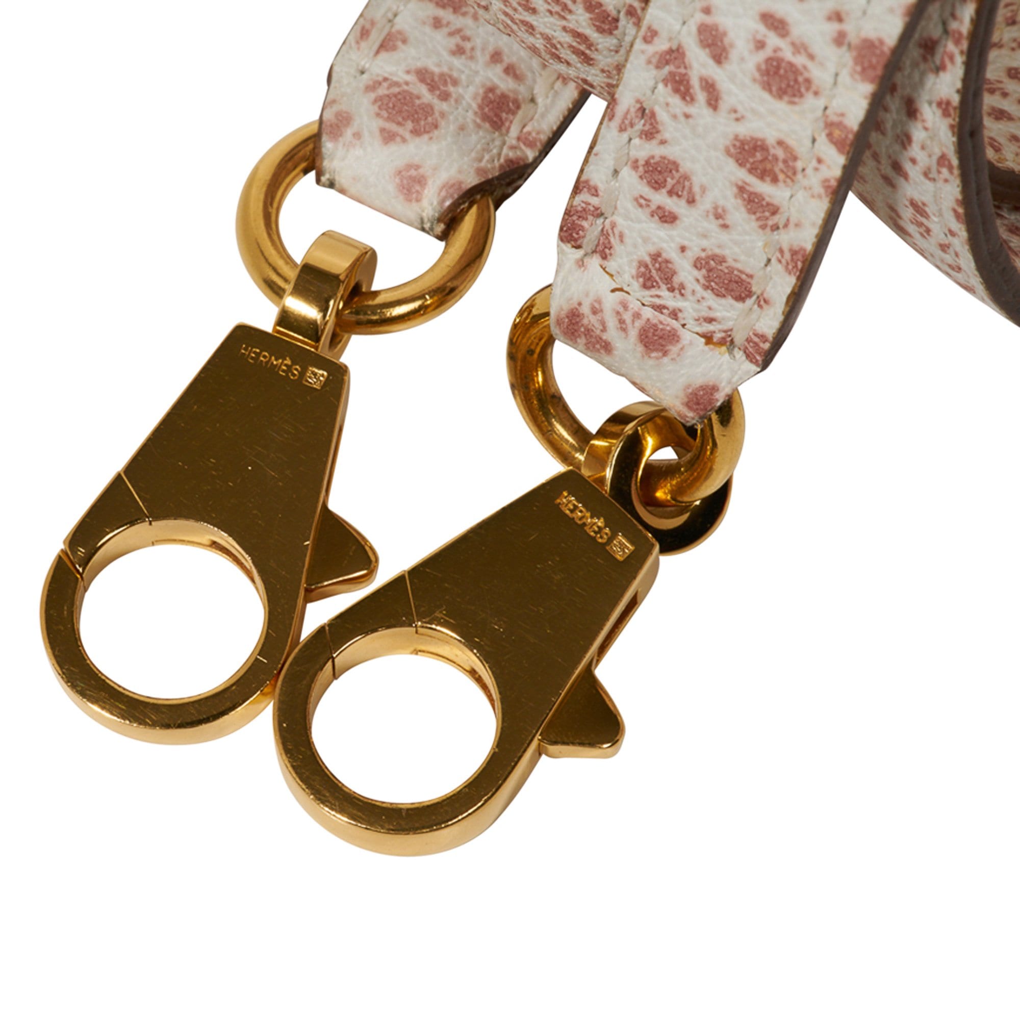 Guaranteed authentic Hermes Kelly 28 bag featured in Pink and White Dalmation Buffalo Skipper leather.