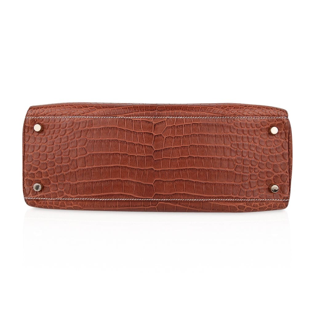 Guaranteed authentic very rare Hermes 32 Kelly bag featured in coveted matte Fauve Barenia Porosus crocodile.