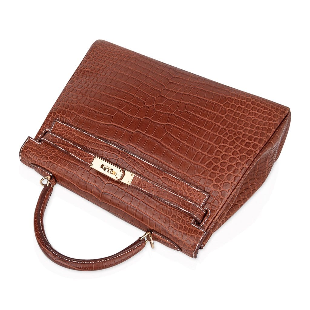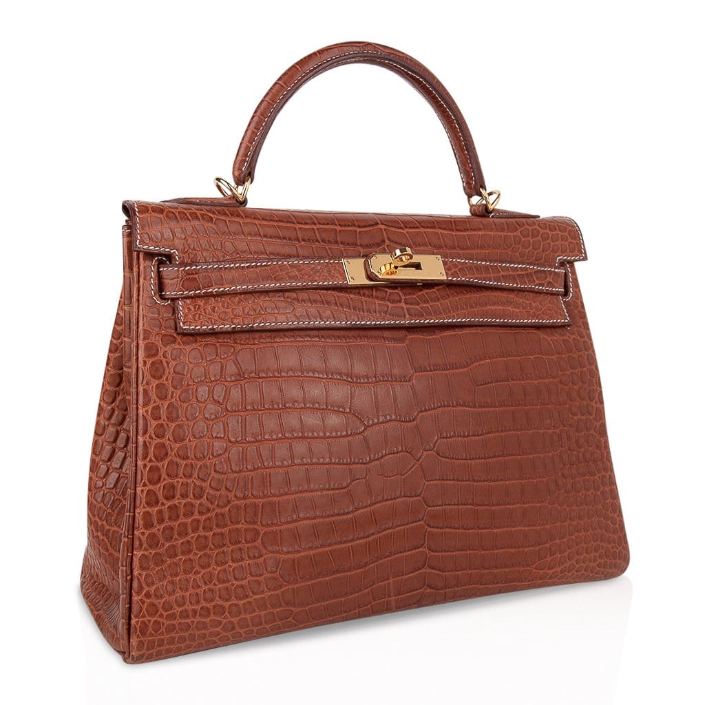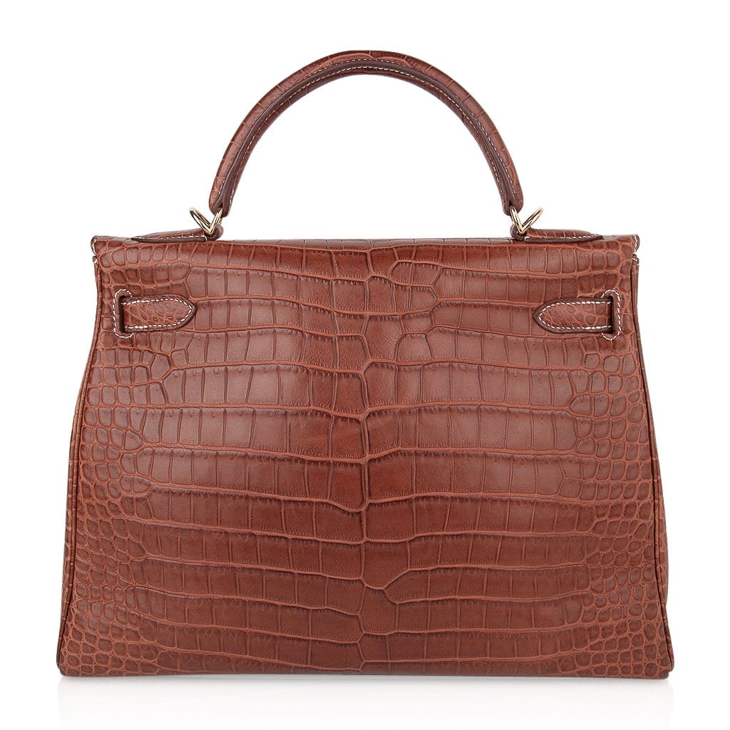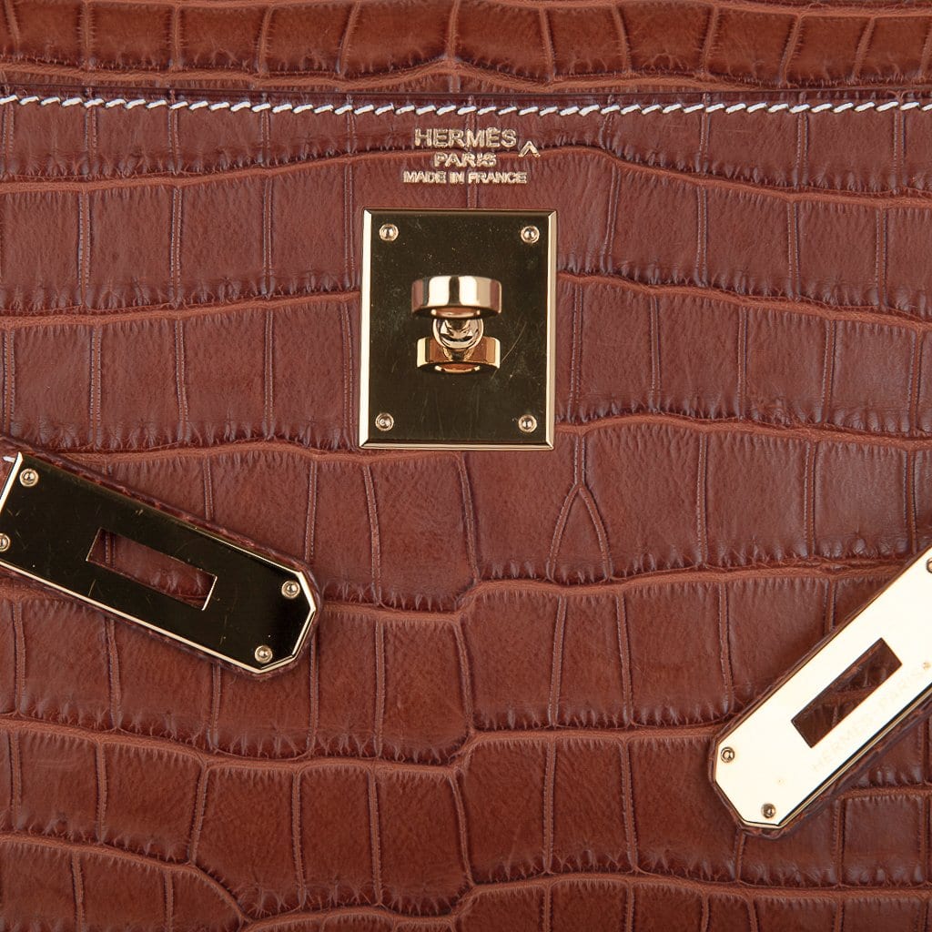 Guaranteed authentic very rare Hermes 32 Kelly bag featured in coveted matte Fauve Barenia Porosus crocodile.