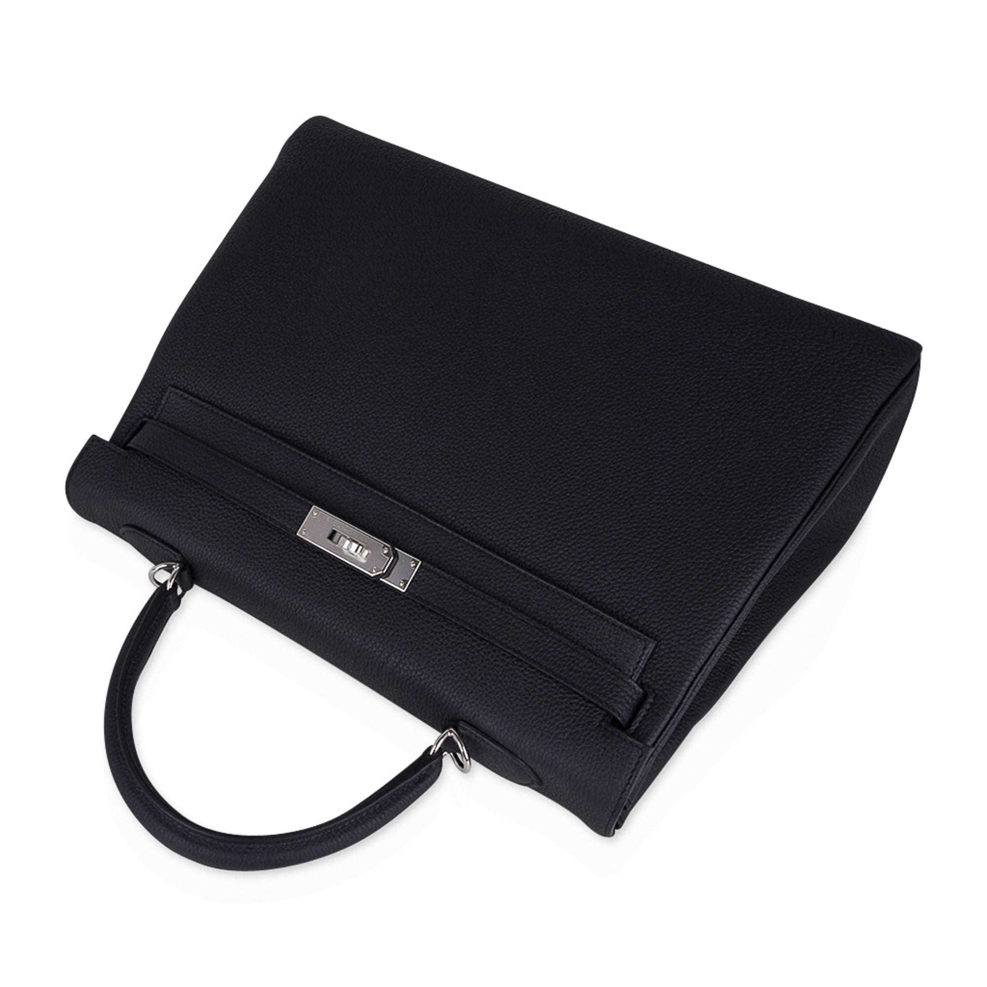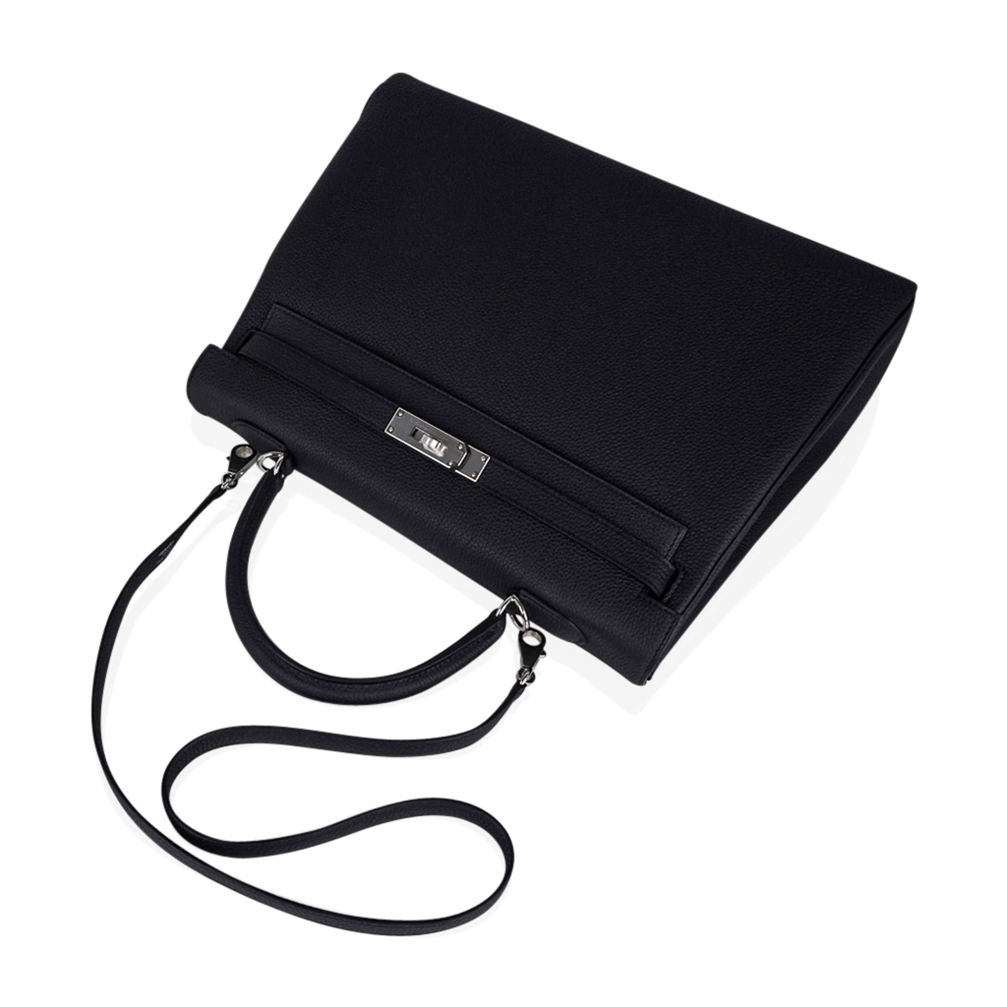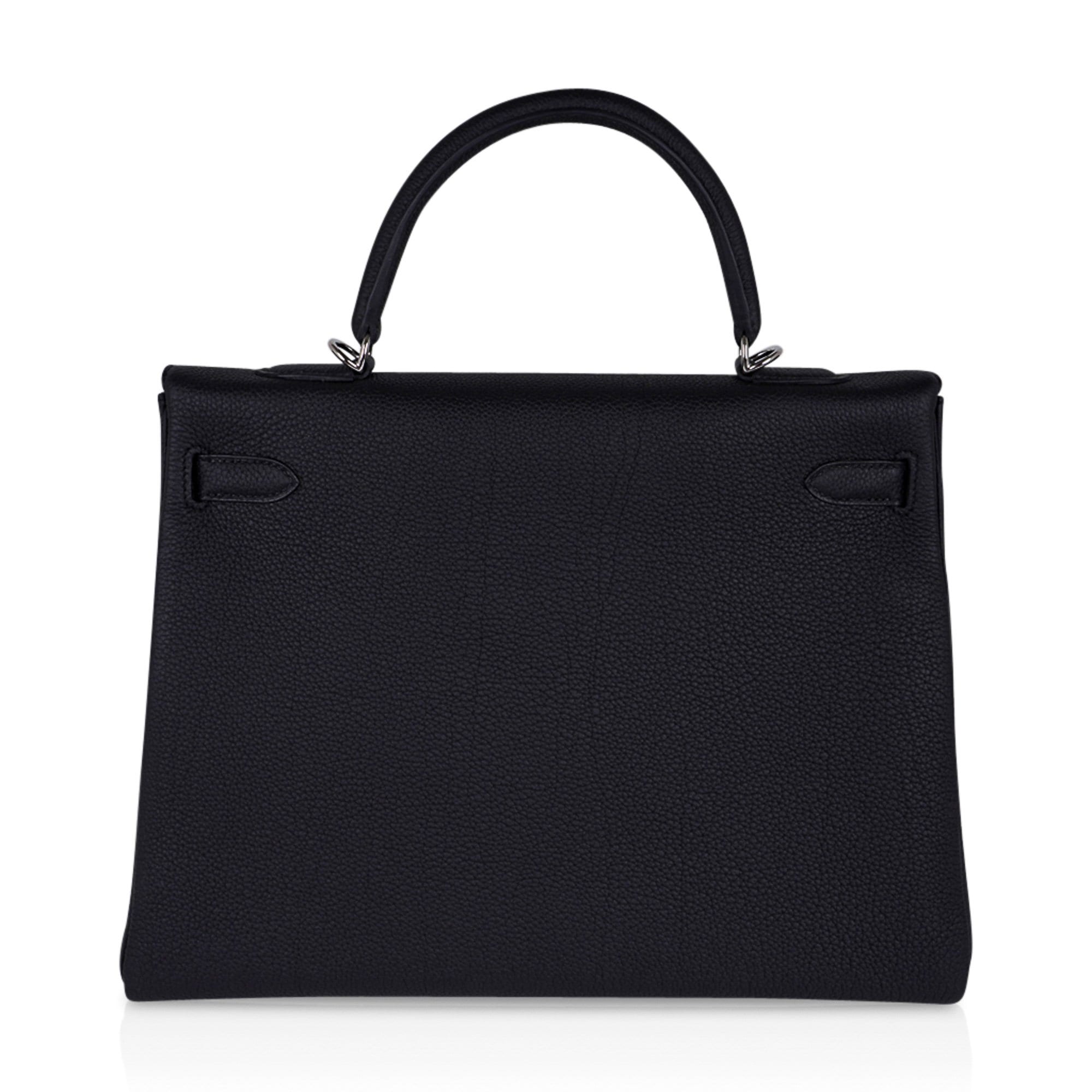 Guaranteed authentic Hermes Kelly 35 Retourne bag featured in classic Black.
