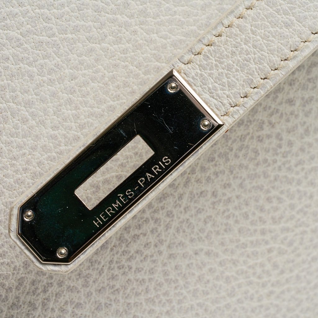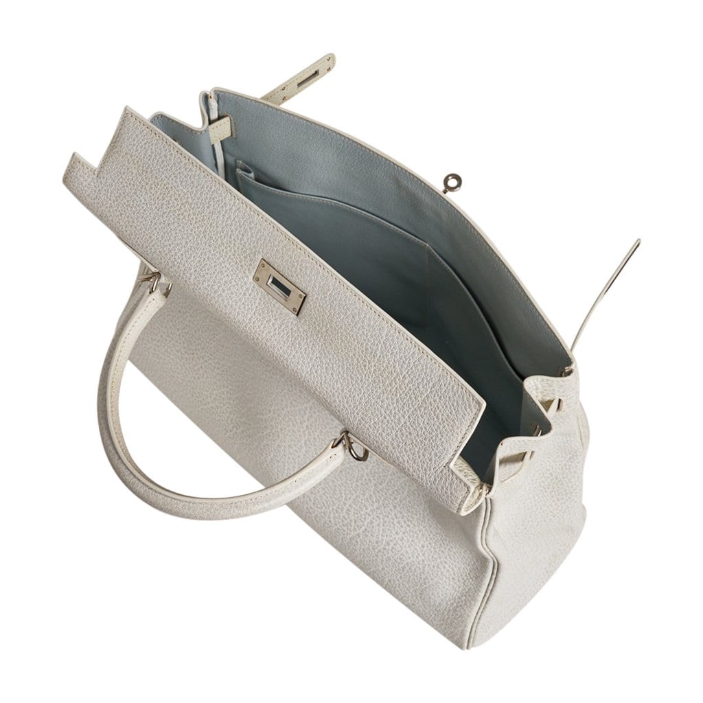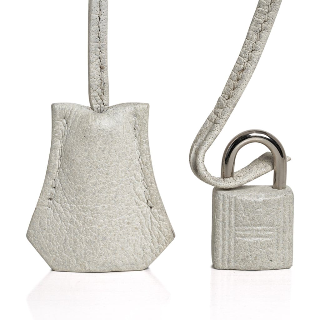Guaranteed authentic Hermes Kelly Retourne 35 rare Gris Perle and White Dalmation featured in Buffalo Skipper leather.
