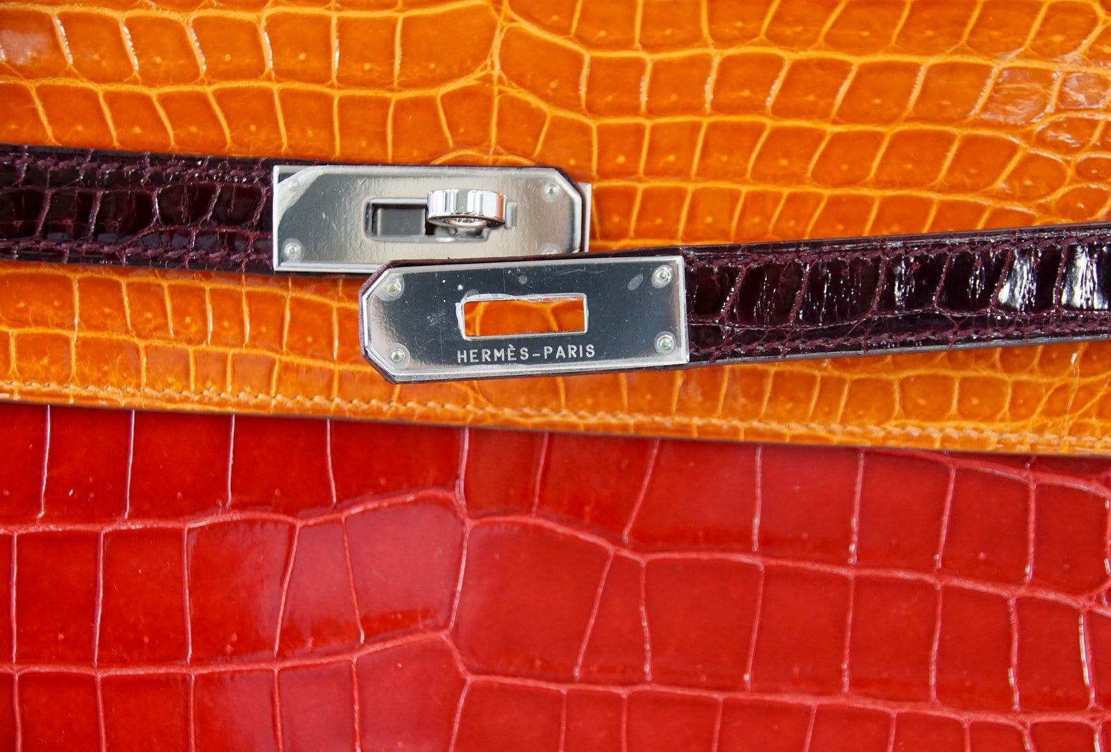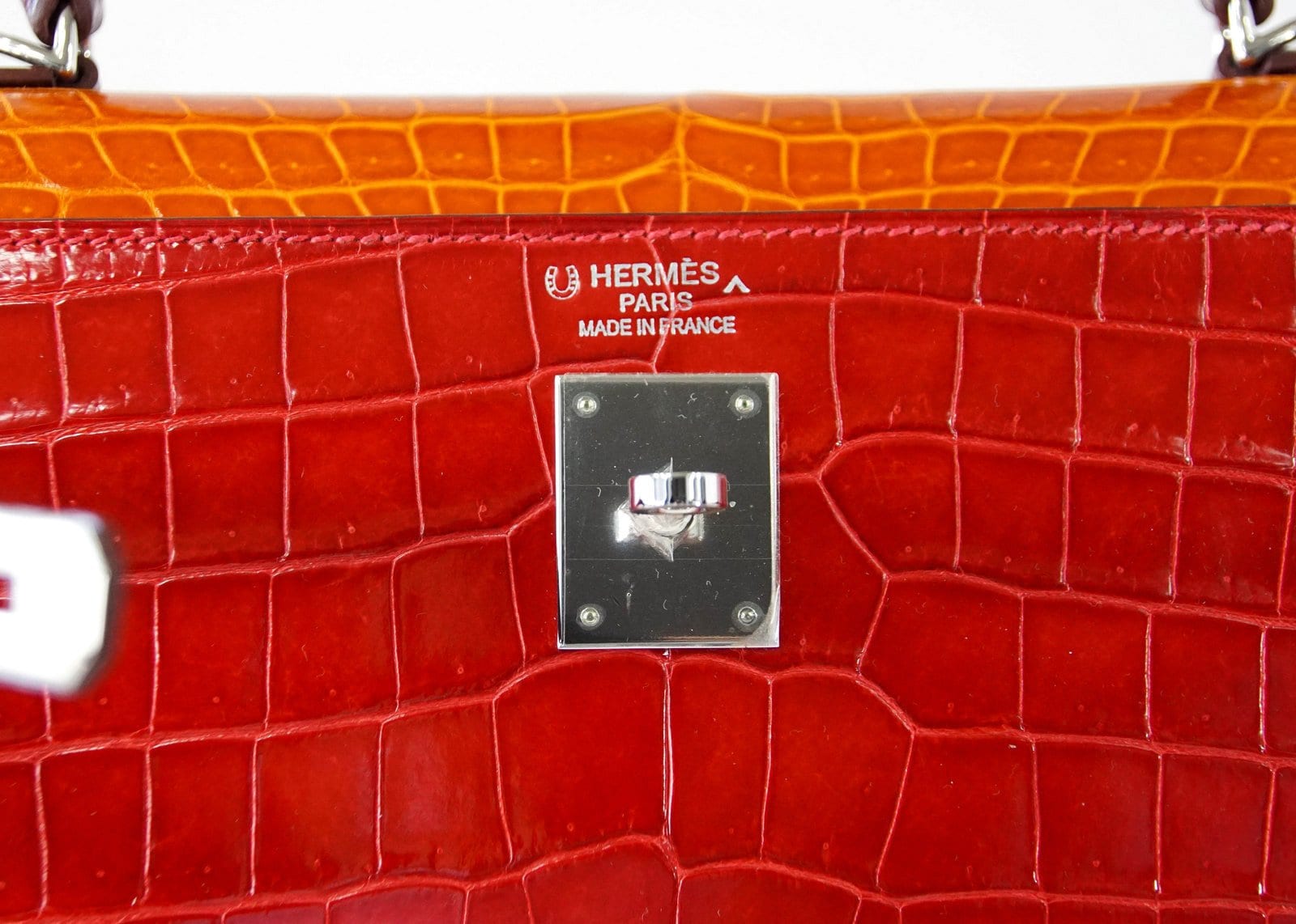 Guaranteed authentic remarkable and extremely Hermes Kelly 35 Sellier rare HSS Tri-color Porosus Crocodile limited edition bag.