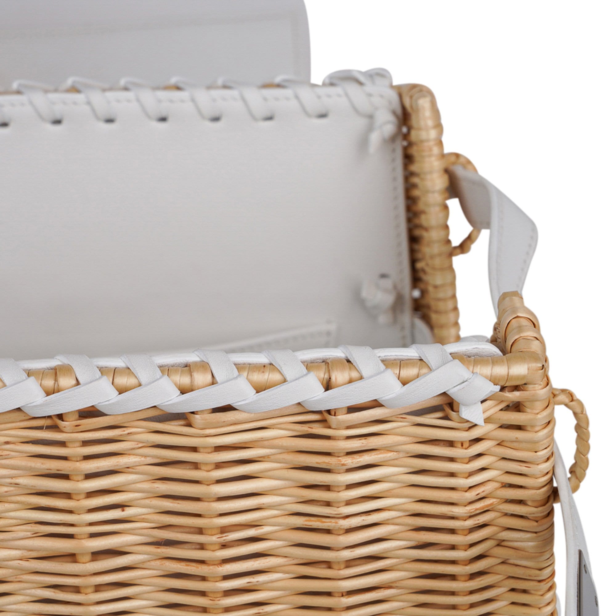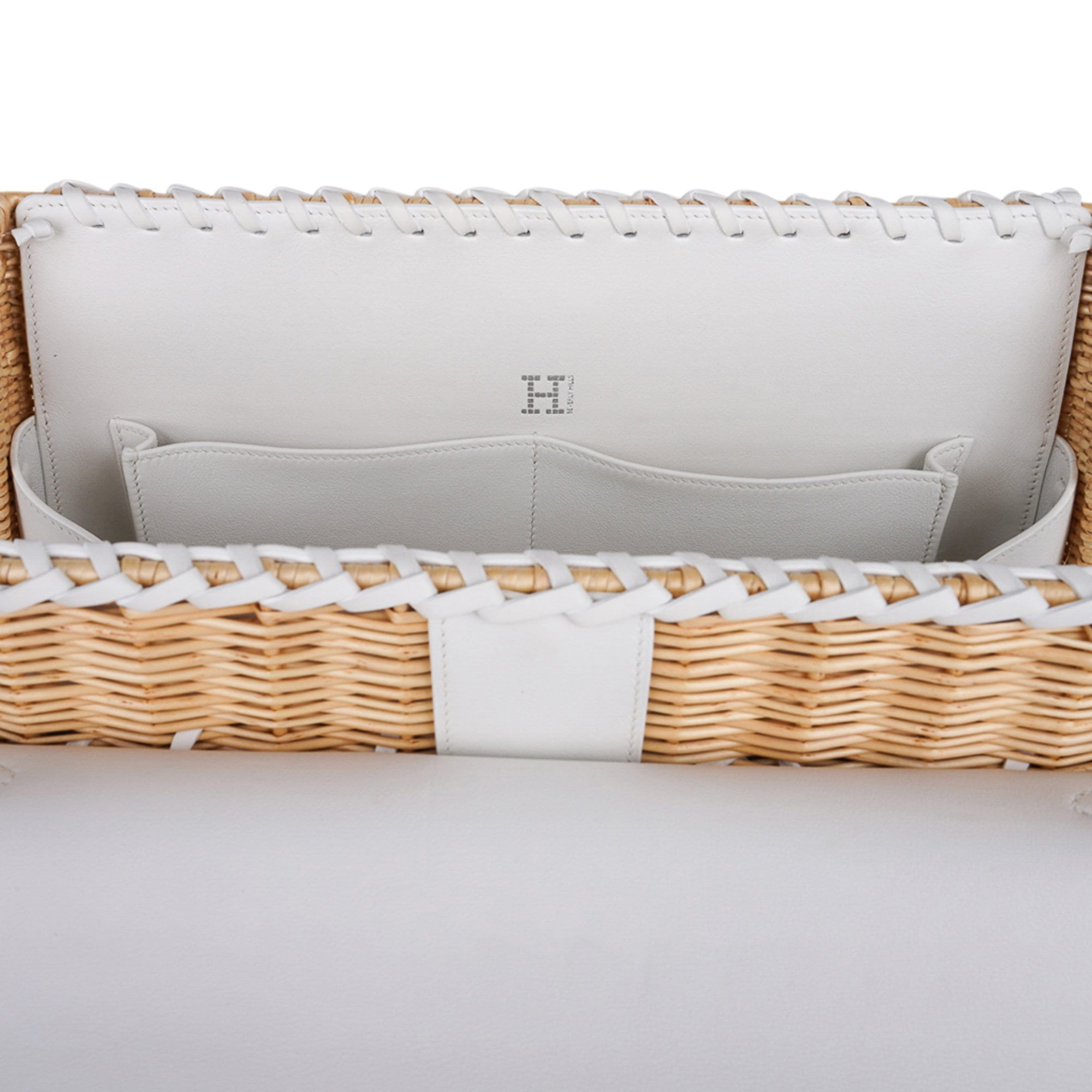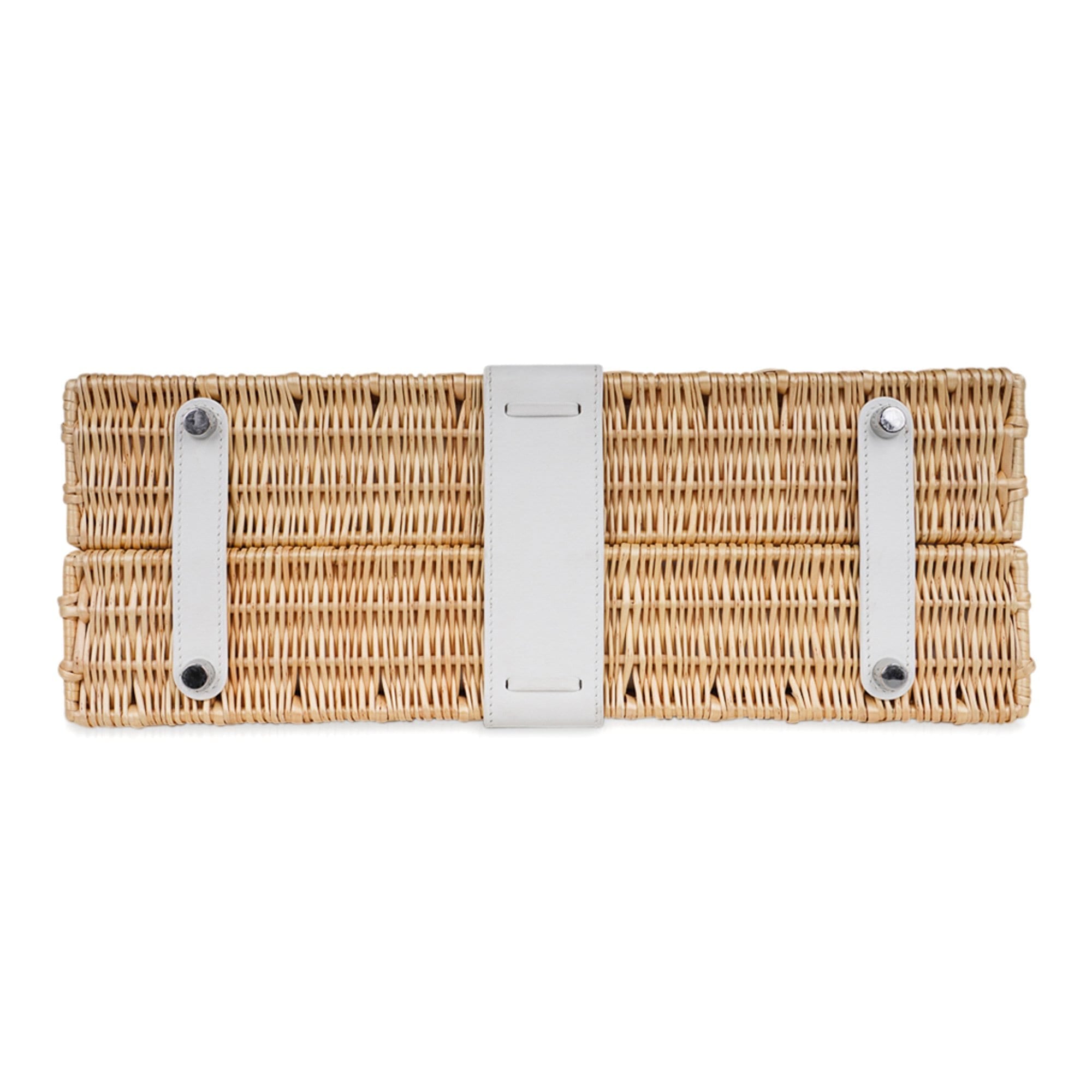 Guaranteed authentic Limited Edition Hermes Kelly Picnic bag featured in Osier Wicker and White Swift leather.